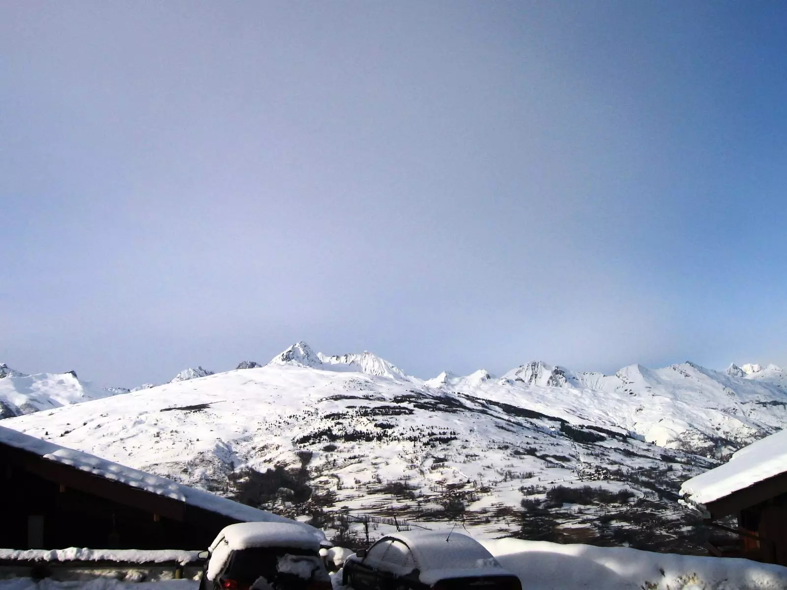 Le balcon avec vue sur le Mont Blanc est exposé Nord. Le casier à skis est dans la résidence.