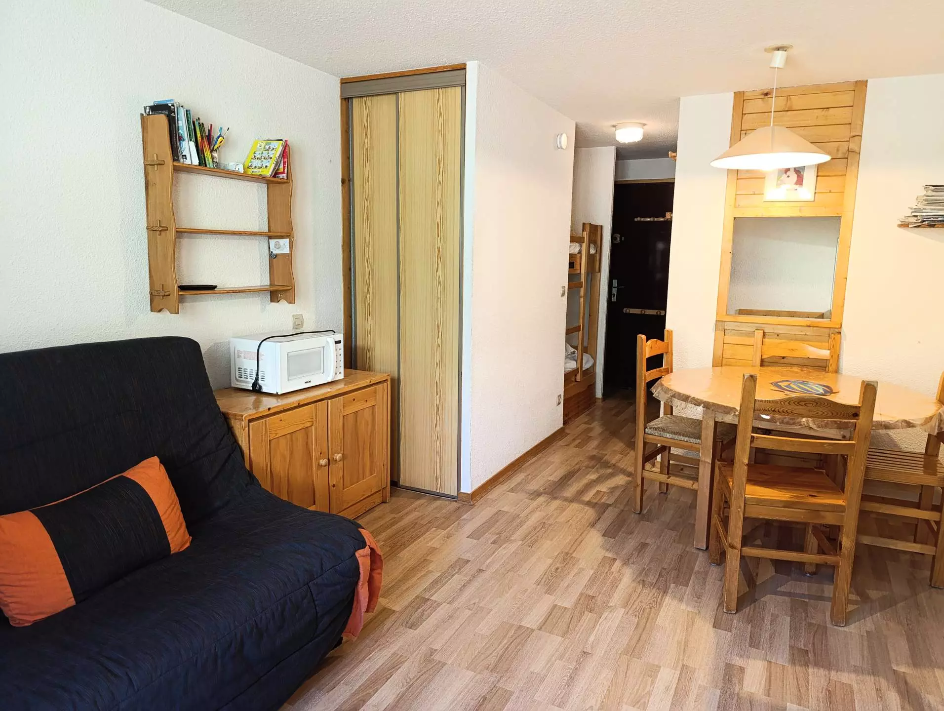 Appartement de 27 m² situé au 2ème étage avec ascenseur dans une résidence proche des pistes et des commerces. Situé au cœur de de Vallandry, vous n’aurez pas à utiliser votre véhicule pour vous rendre au cinéma, au restaurant ou dans les commerces. Loué pour 4/5 personnes, cet appartement est composé, d’une entrée avec deux lits superposés, d’un salon avec convertible et coin cuisine, d'une chambre avec banquette et lit gigogne, d’une salle de bains avec baignoire et wc séparé.