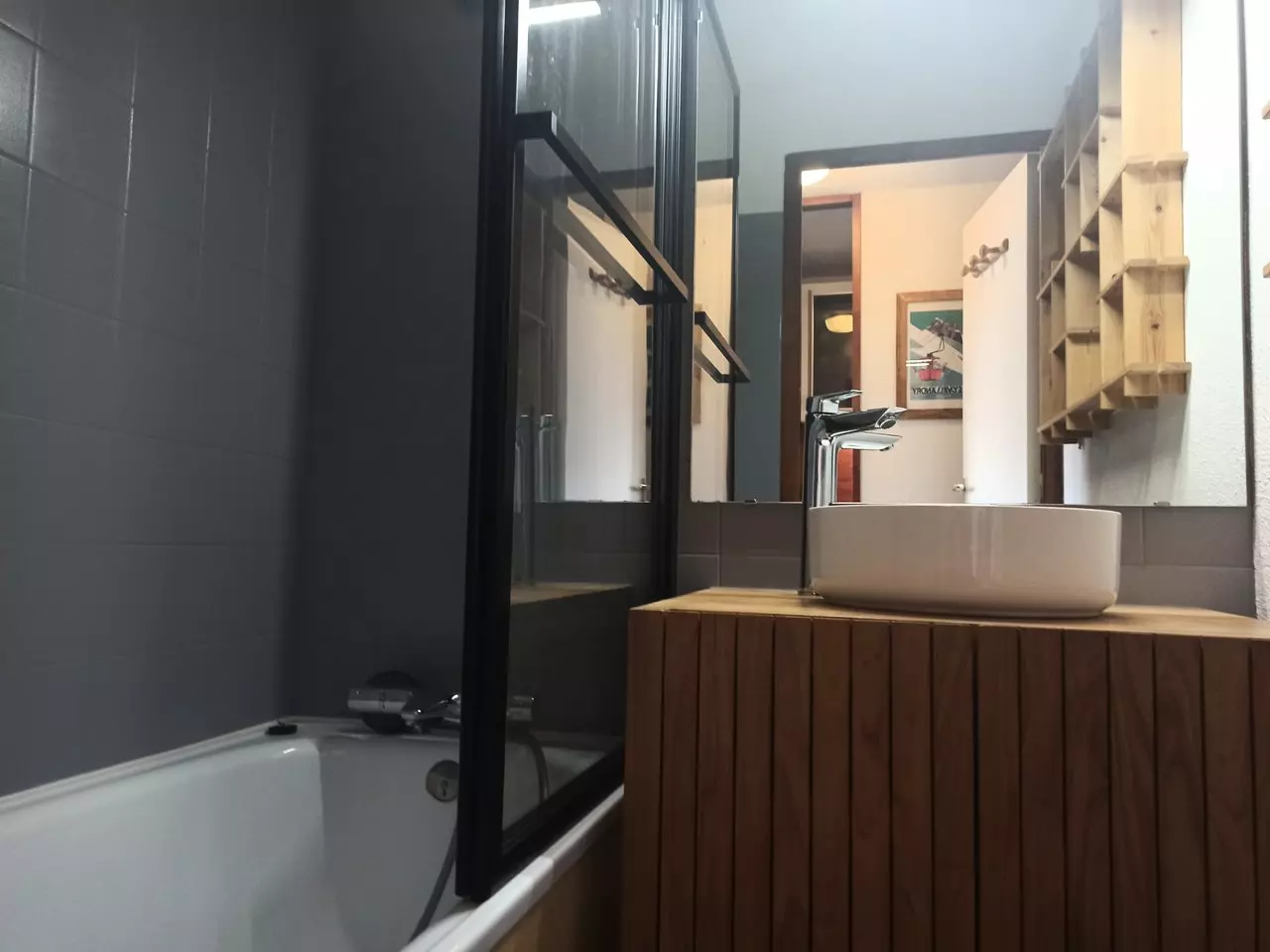 Loué pour 4 personnes, cet appartement est composé d'un coin cuisine et séjour avec 1 canapé gigogne, d’une cabine équipée d’un canapé convertible, d'une salle de bains avec baignoire et toilettes séparées.