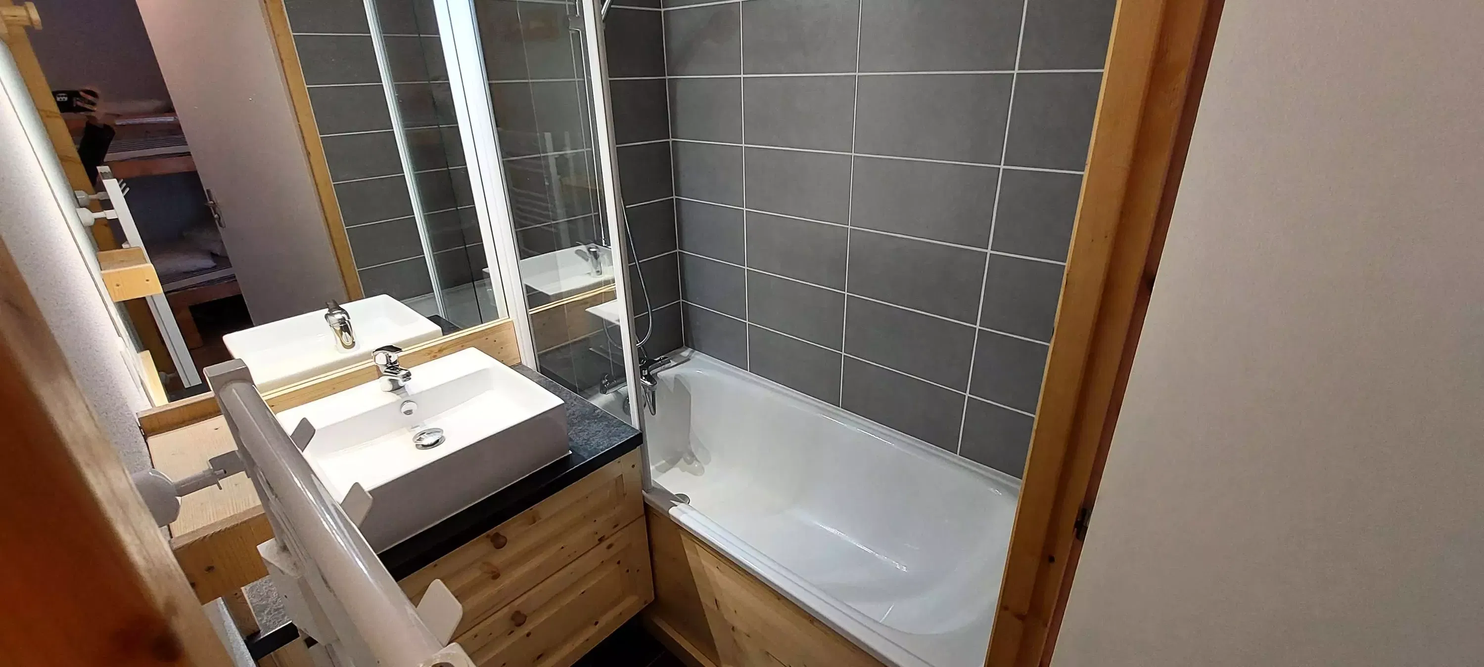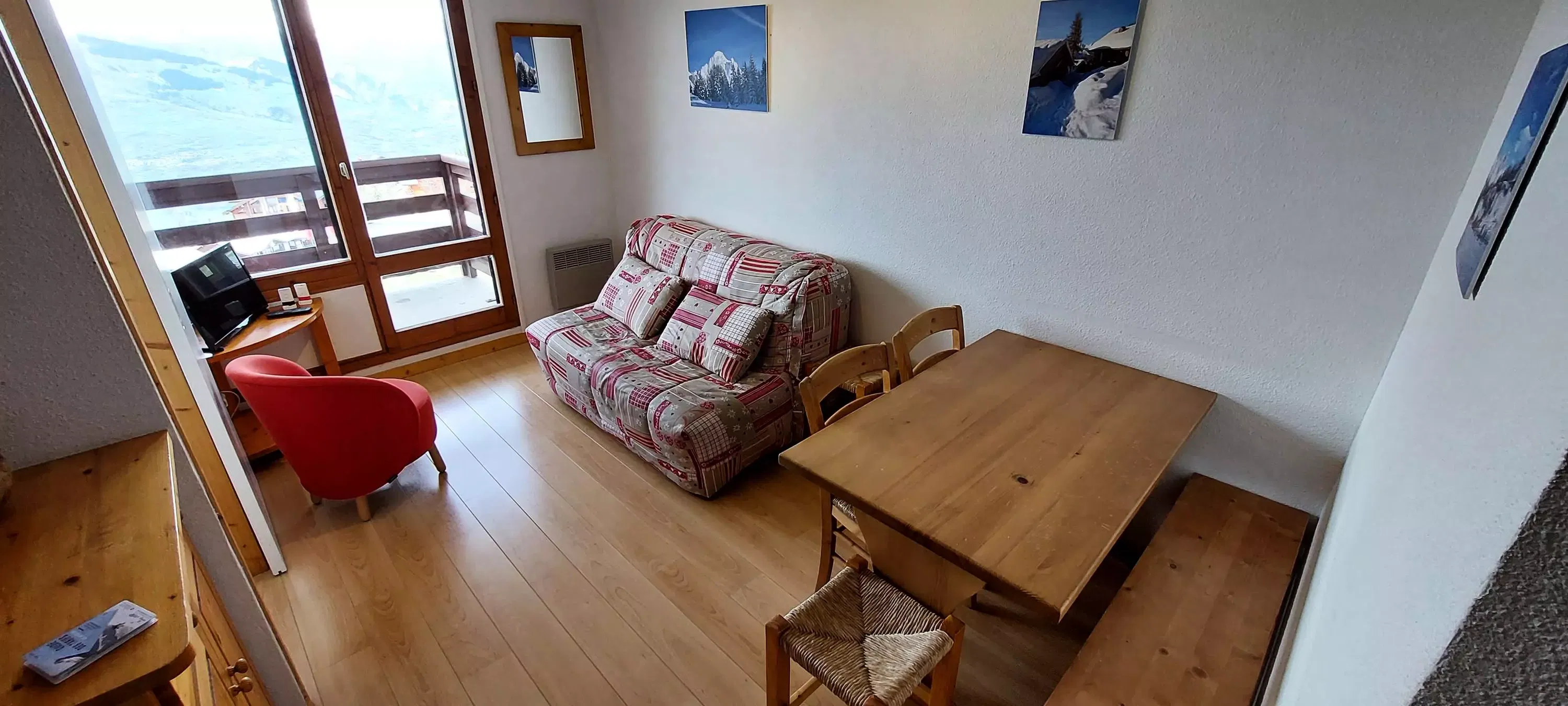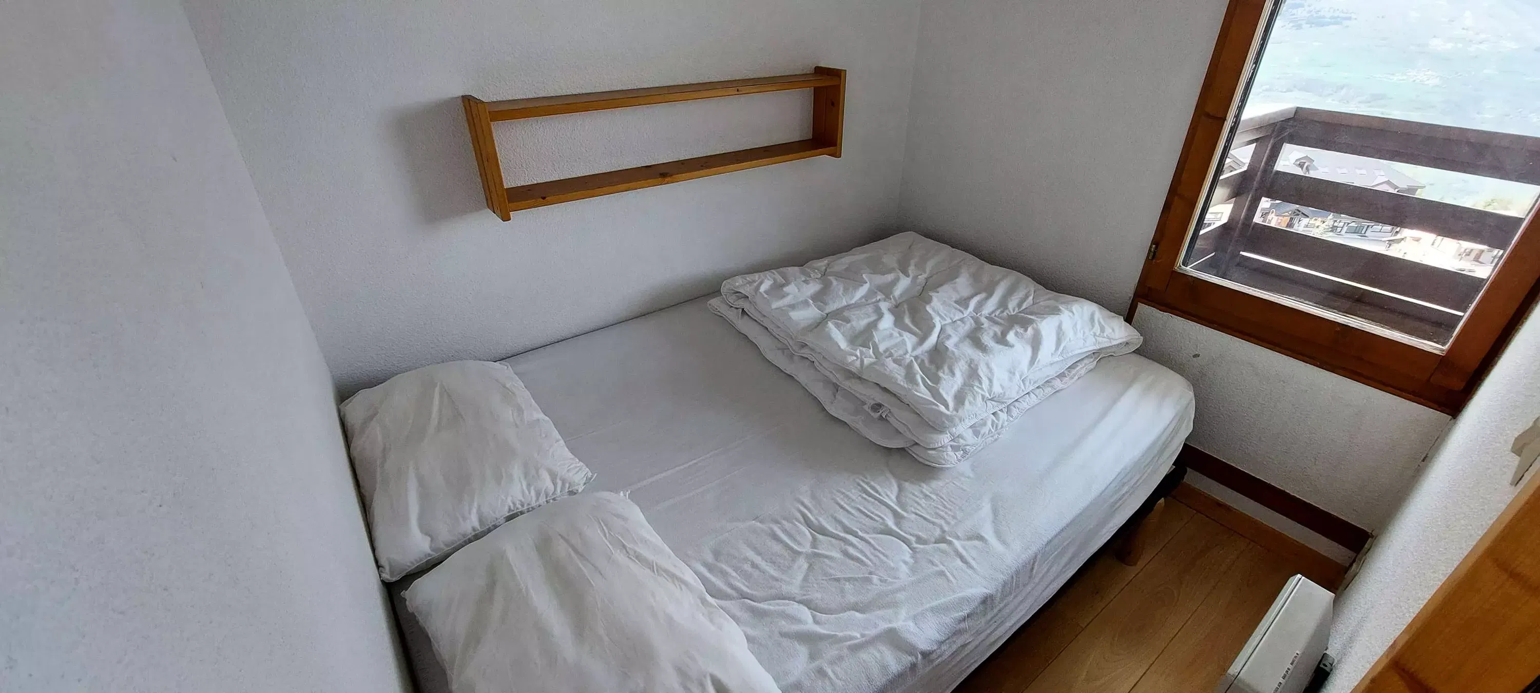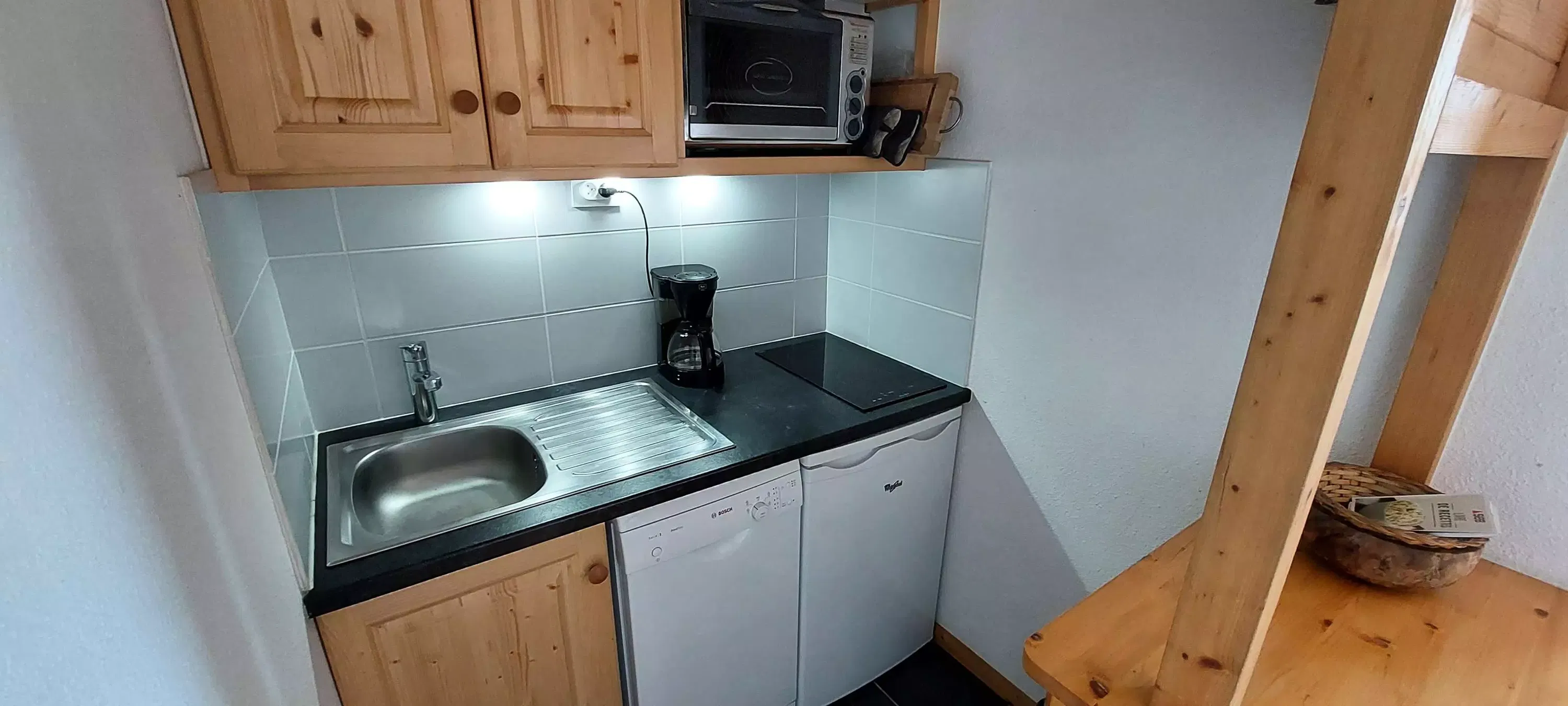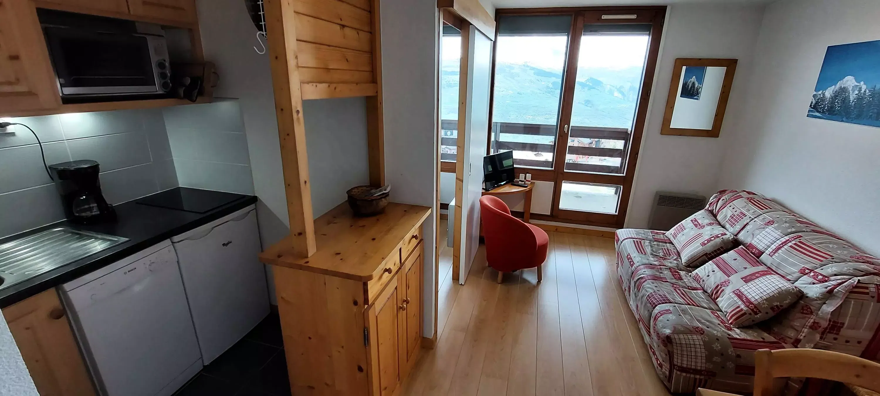 Situé dans une résidence avec ascenseur offrant un accès direct aux pistes, cet appartement de 25m² environ est composé d'un séjour avec cuisine ouverte sur le séjour donnant sur un balcon offrant une très belle vue sur les pistes et la vallée, une salle de bain rénovée avec baignoire et WC séparé, une chambre avec lit double et un coin nuit dans l'entrée, bien séparé du séjour, avec des lits superposés.