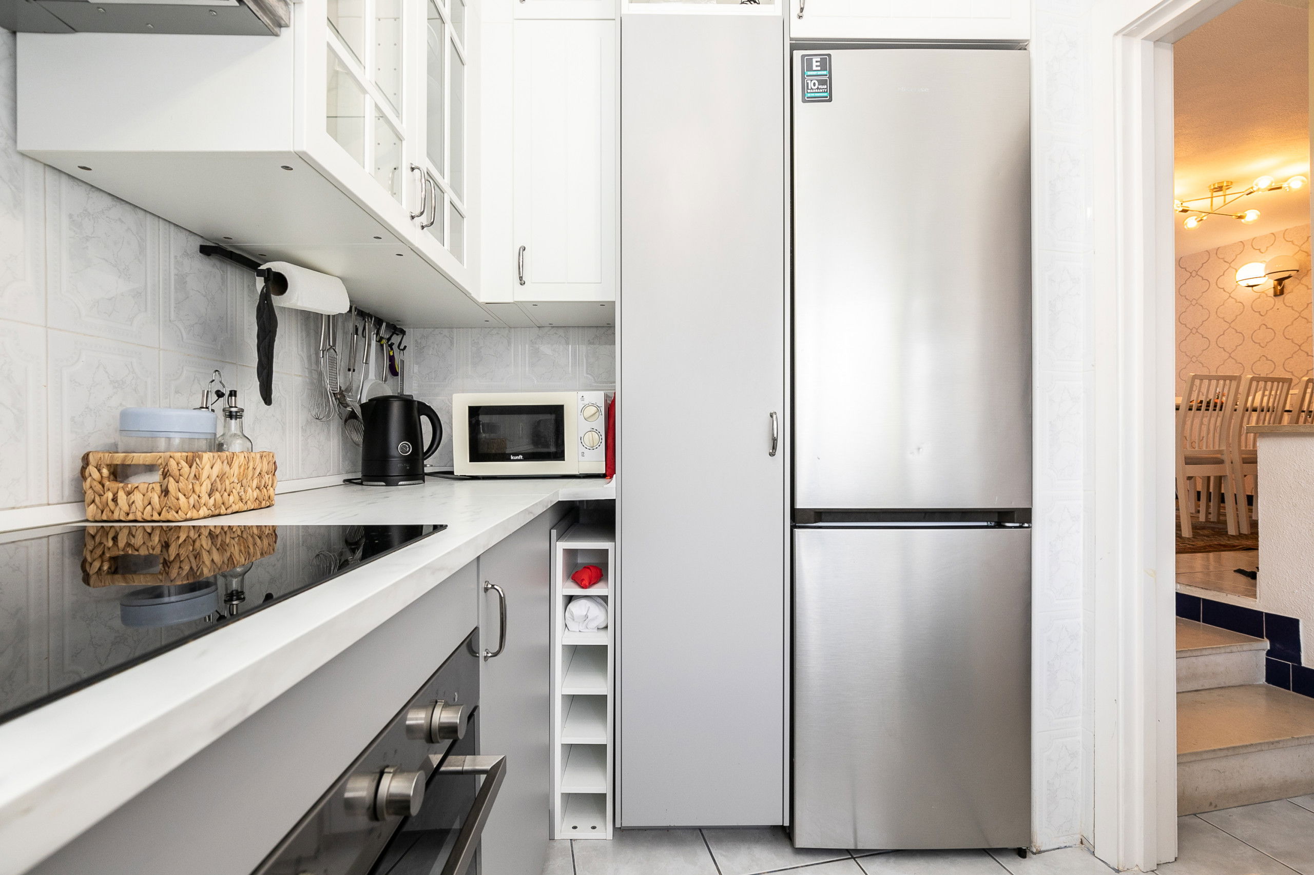 La cuisine indépendante, à vitrocéramique, est équipée avec réfrigérateur, micro-ondes, four, congélateur, lave-vaisselle, vaisselle/couverts, ustensiles/cuisine, cafetière, grille pain, bouilloire et presse-agrumes.
