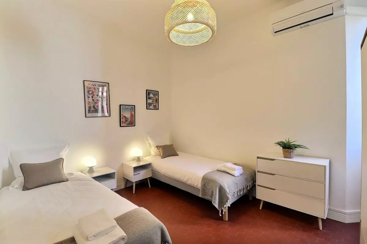 Dans la chambre parentale, le lit king size vous promet des nuits paisibles, tandis que la seconde chambre s’adapte à vos envies : deux lits simples pour les enfants ou un lit double pour un couple, toujours avec le confort de la climatisation.