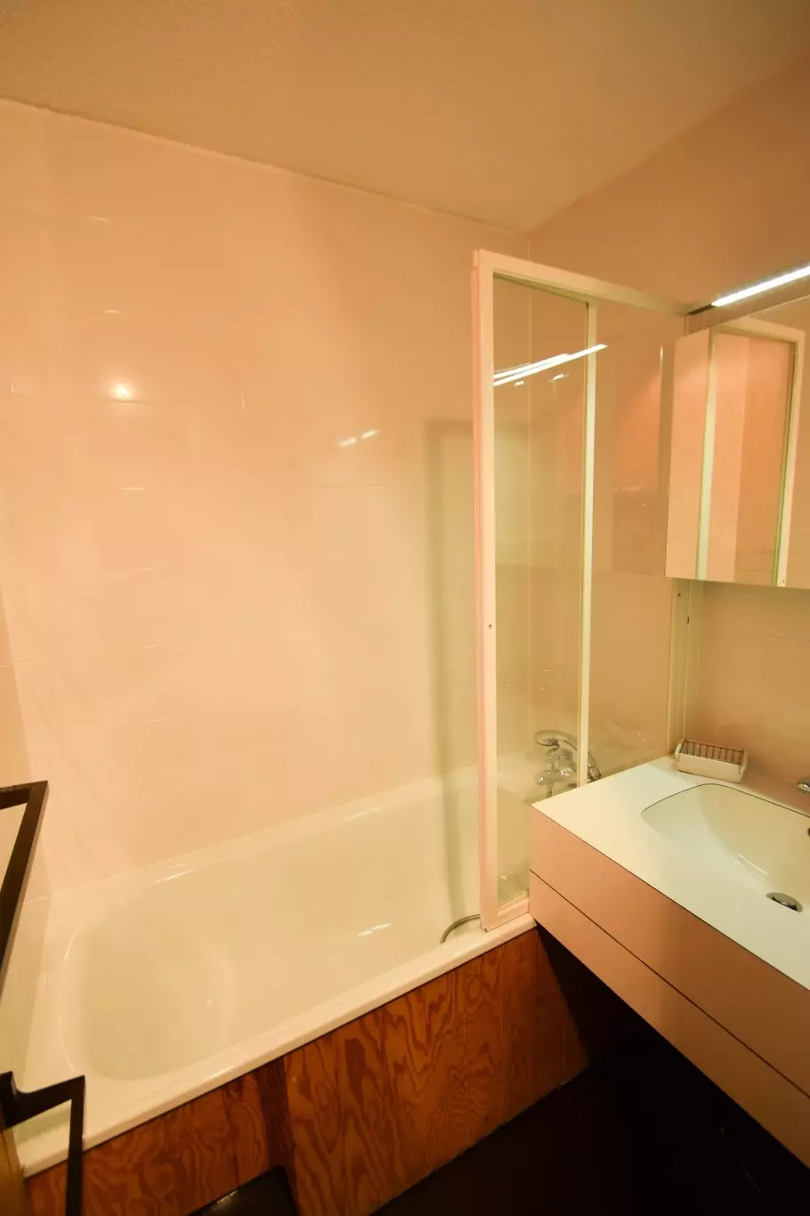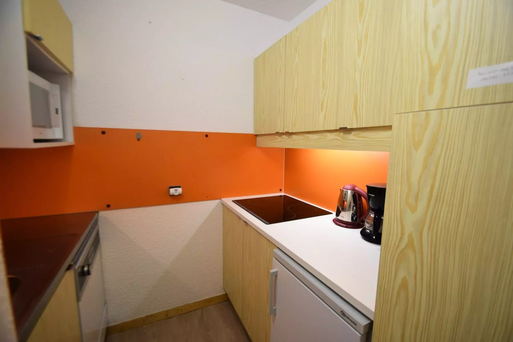 Appt 2 pièces 5 pers, env 35 m2, exposition Sud/Ouest, de plain-pied avec petite terrasse (déneigement non garanti), accès direct et vue sur les pistes, RDC - Entrée 2 - Cuisine: 4 plaques vitrocéramiques, four multi-ondes, réfrigérateur, Lave-vaisselle - Séjour : coin repas, 1 banquette-lit 1 pers (80cm)- Télévision - Chambre : 2 x 2 lits superposés (80cm) - SDB : baignoire, WC séparés. Les sols: plastique - Literie : couettes 1p - En option avec supplément : ménage de fin de séjour, draps, serviettes, forfaits ski . Appartement non fumeur, animaux non admis. En option et en supplément: Ménage de fin de séjour, draps, serviettes, forfaits ski. Casier à skis n°21 au RDC. Appartement clair avec très belle vue sur les pistes et accès direct.