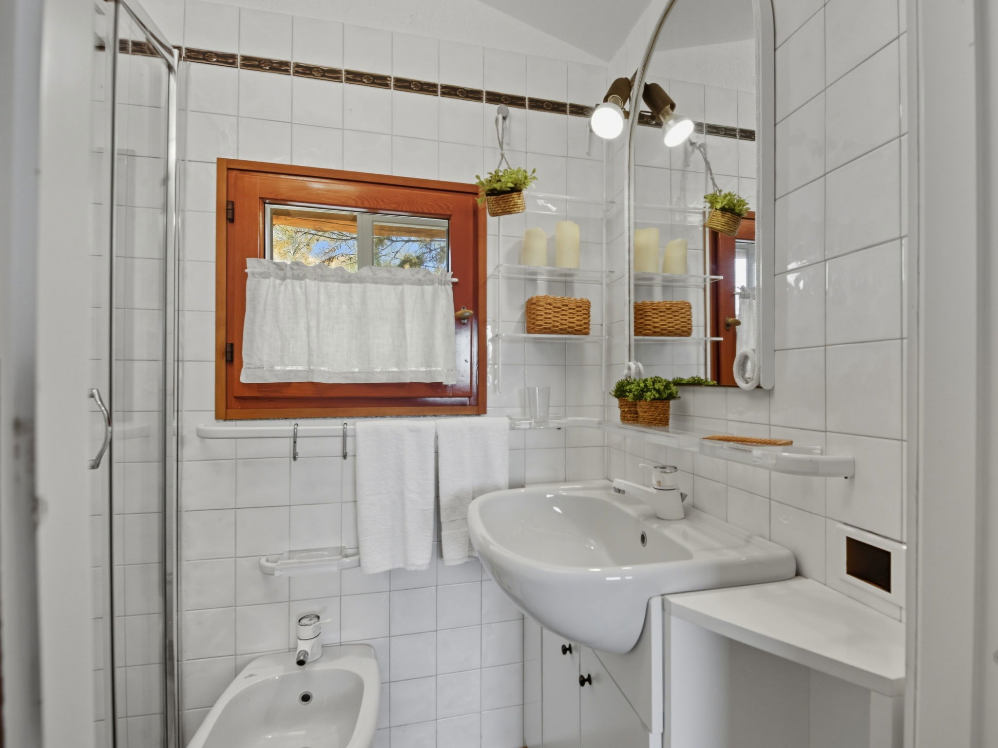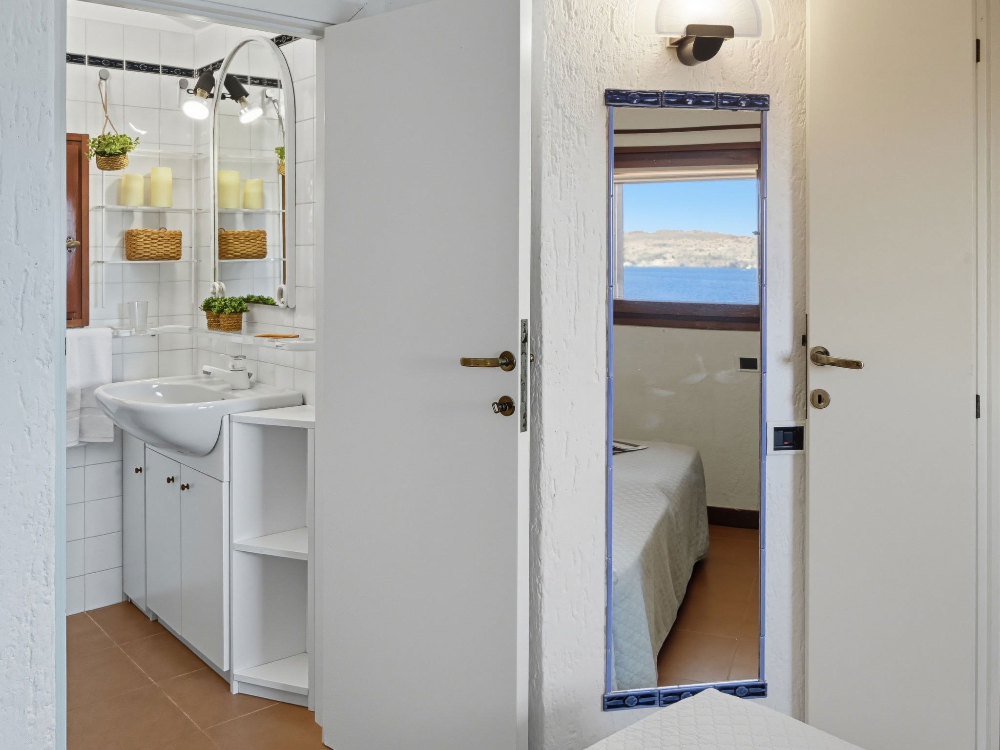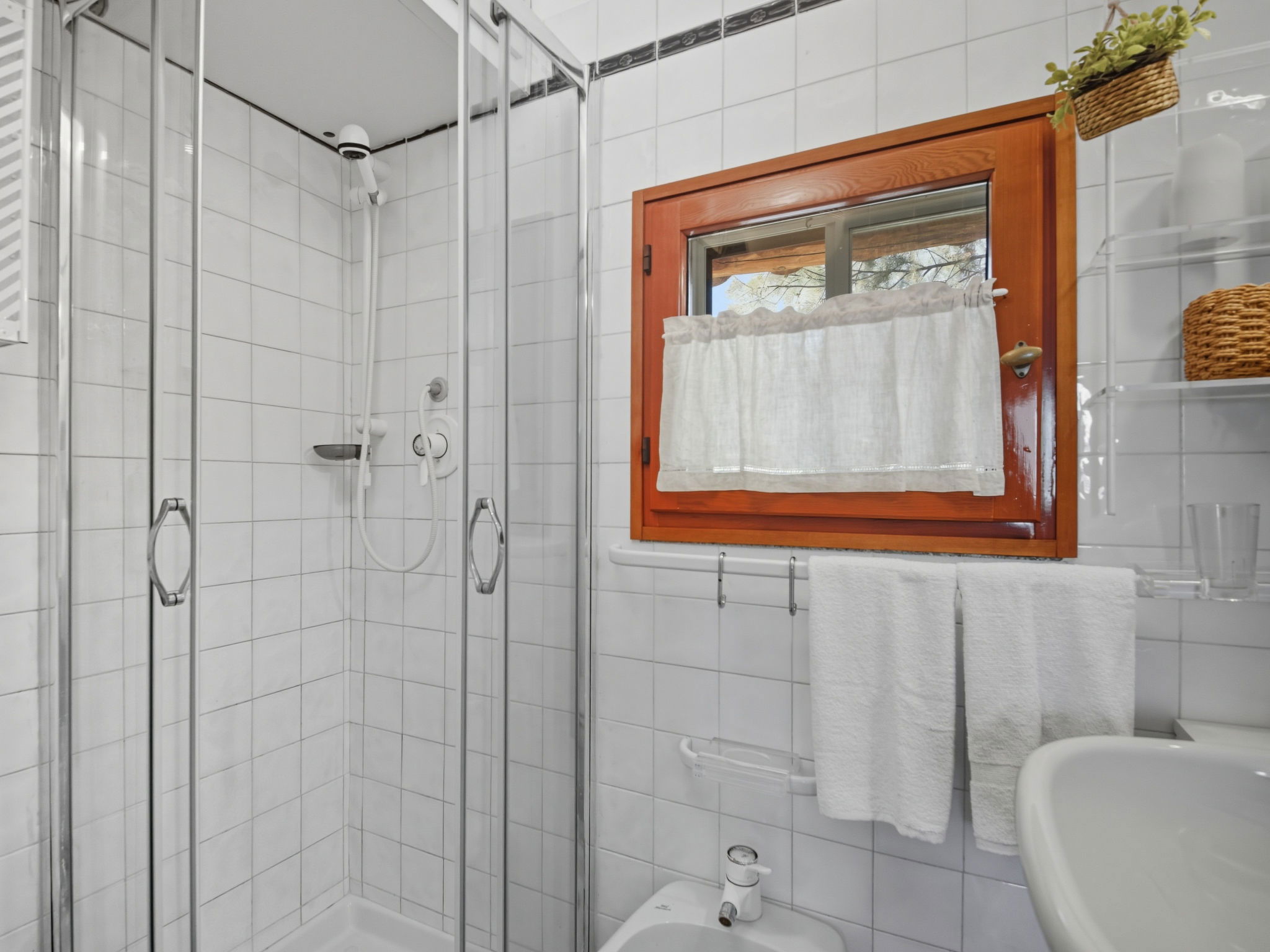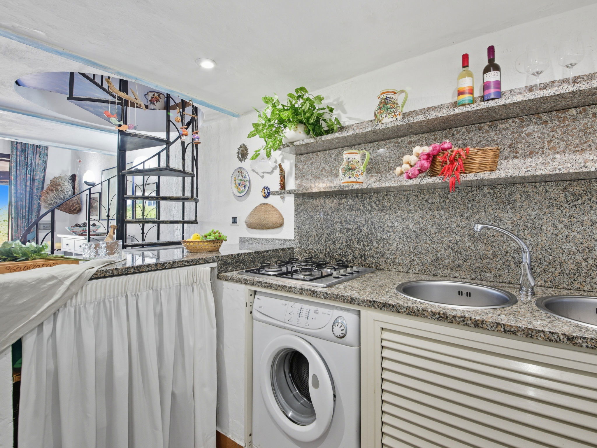"Petunia", maison 3 pièces 55 m2 sur 2 niveaux. Aménagement agréable et rustique: séjour/salle à manger avec 2 divans-lits et TV (satellite) (écran plat). Sortie sur la terrasse. Cuisine ouverte (4 plaques de cuisson, four, lave-vaisselle, grille-pain, bouilloire électrique). Douche/bidet/WC. Air-conditionné, chauffage à air chaud. À l'étage supérieur: 2 chambres doubles. Douche/bidet/WC. Grande terrasse couverte. Meubles de terrasse, place pour s'asseoir. Vue sur la mer. A disposition: lave-linge, fer à repasser, moustiquaire, sèche-cheveux. Internet (Connexion WIFI, gratuit). Place de parking No 2 (cloturée). Maximum 1 animal/ chien autorisé.