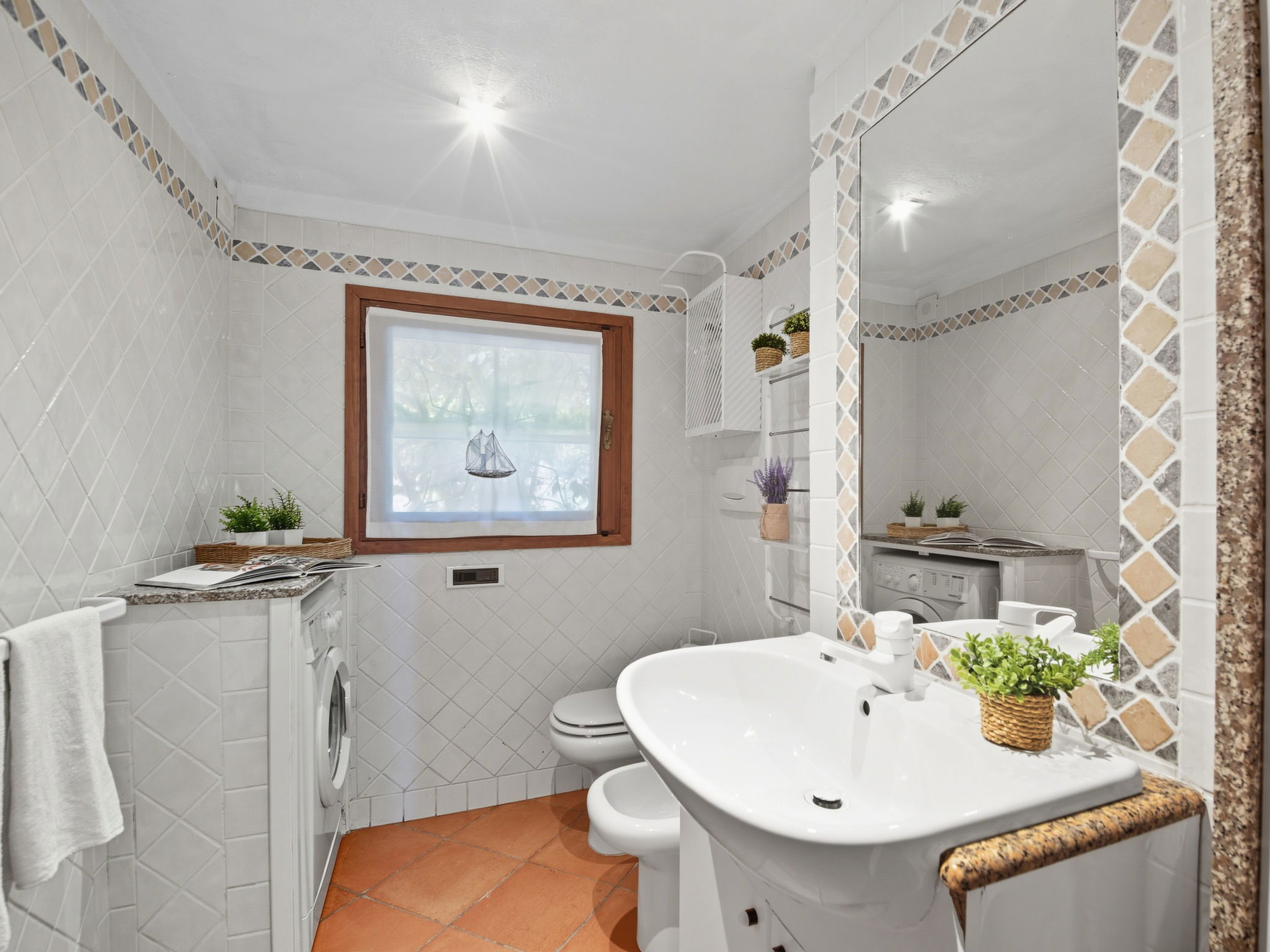 Villaggio Piras: Résidence "Sporting House". À 3 km du centre de La Maddalena, situation tranquille, ensoleillée dans un quartier résidentiel, à 50 m de la mer, à 100 m de la plage. En commun: parc, grand jardin entretenu, plantes et fleurs, piscine cloturée (25 x 10 m, profondeur 130 - 250 cm, disponibilité saisonnière: 15.Jun. - 15.Sep.). Douche extérieure, tennis (1 x dur), terrain de pétanque, meubles de jardin, place de parking sur le terrain. Supermarché 2.5 km, restaurant 2 km, bar 2 km, arrêt de bus 5 km, plage de sable "Spalmatore" 4 km. Port plaisance 3 km. Attractions à proximité: Palau 6 km, Olbia 45 km, Porto Cervo 37 km, Santa Teresa 31 km. Veuillez noter: voiture recommandée.