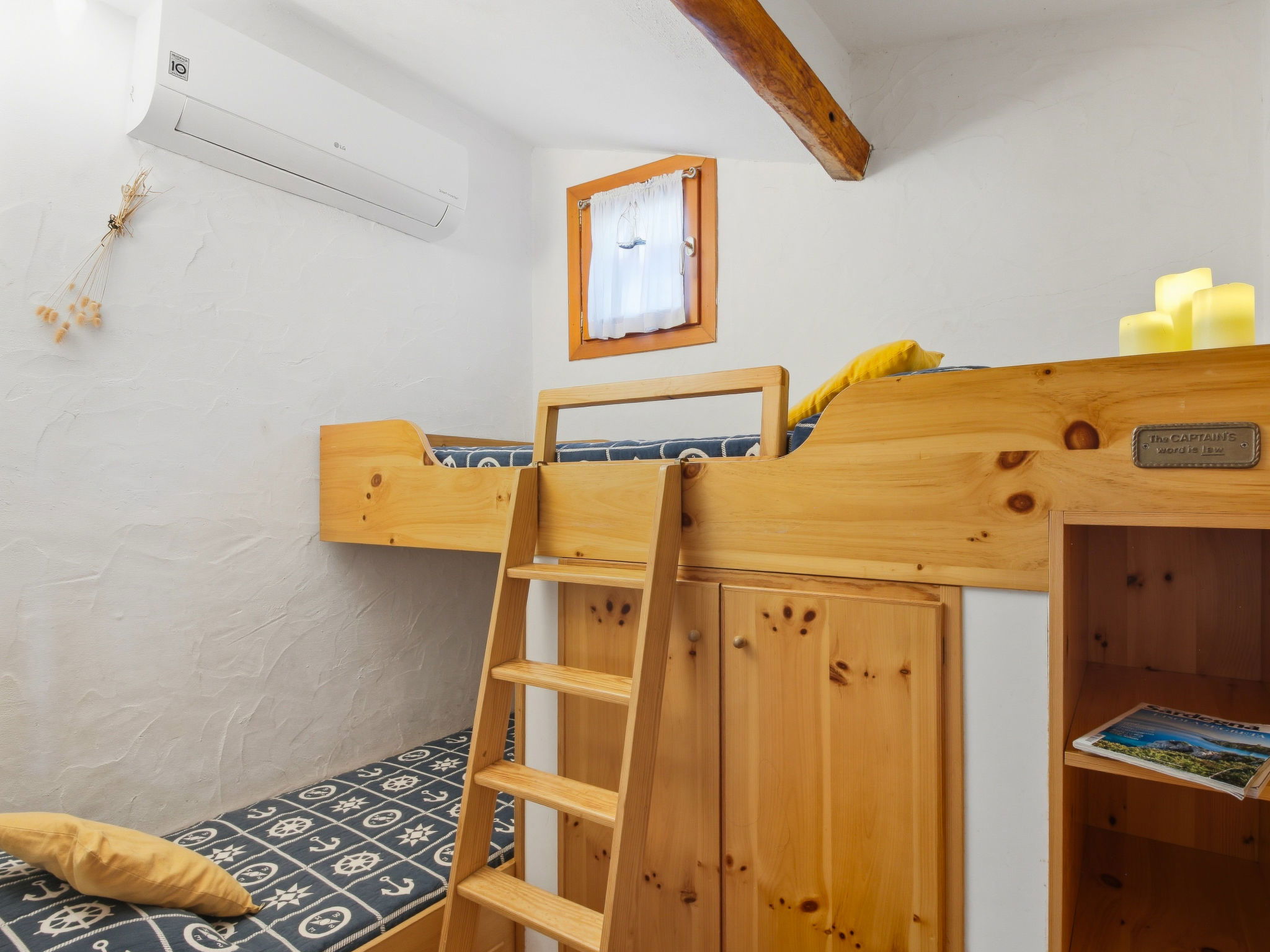 "Ortensia", maison 4 pièces 60 m2. Aménagement rustique et plaisant: séjour/salle à manger avec TV (satellite) (écran plat), chauffe eau. Sortie sur la terrasse. 1 chambre avec 2 lits. Cuisine ouverte (4 plaques de cuisson, four, lave-vaisselle, micro-ondes). Douche/bidet/WC. Air-conditionné, chauffage à air chaud. À l'étage supérieur: 1 chambre double. 1 chambre avec 1 x 2 lits superposés. Douche/bidet/WC. Grande terrasse couverte. Meubles de terrasse, place pour s'asseoir. Très belle, sur la mer et la piscine. A disposition: lave-linge, fer à repasser, moustiquaire, sèche-cheveux. Internet (Connexion WIFI, gratuit). Place de parking No 22 (cloturée). Maximum 1 animal/ chien autorisé.