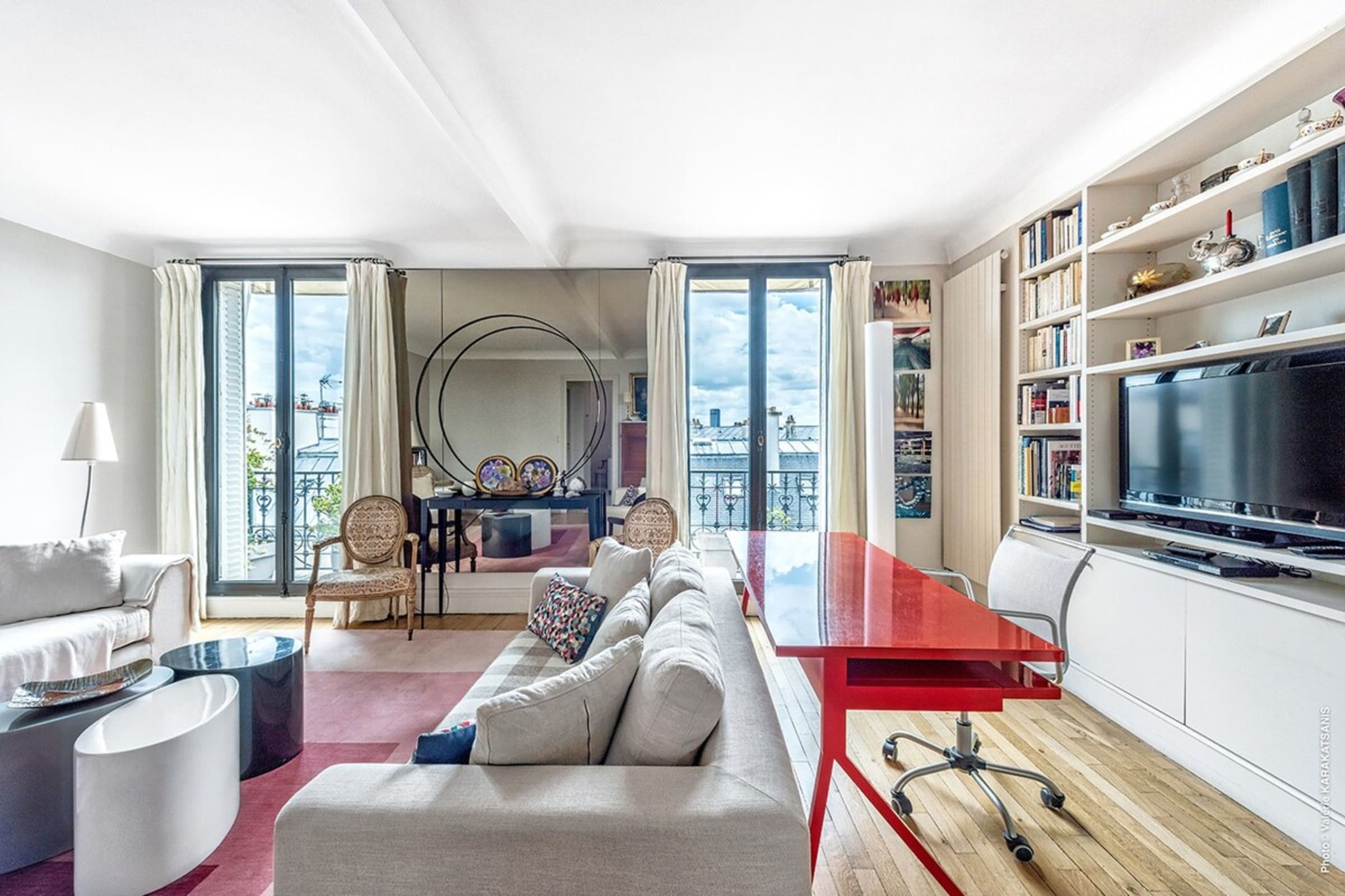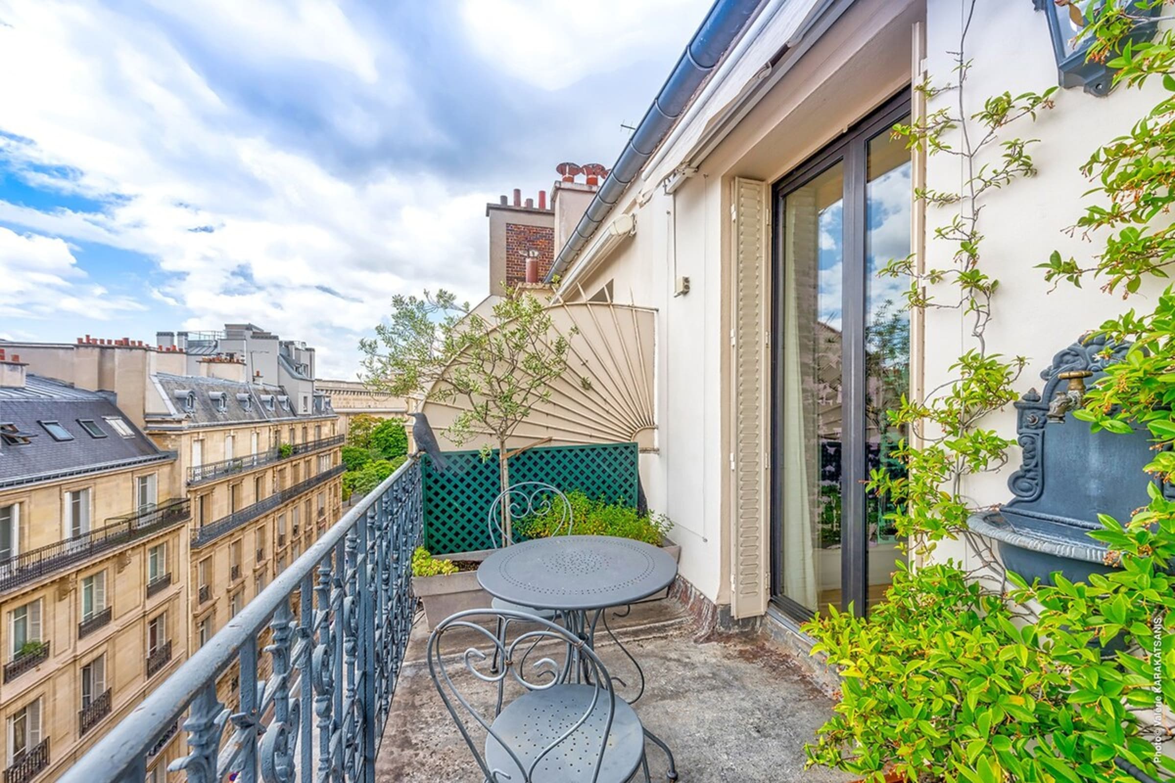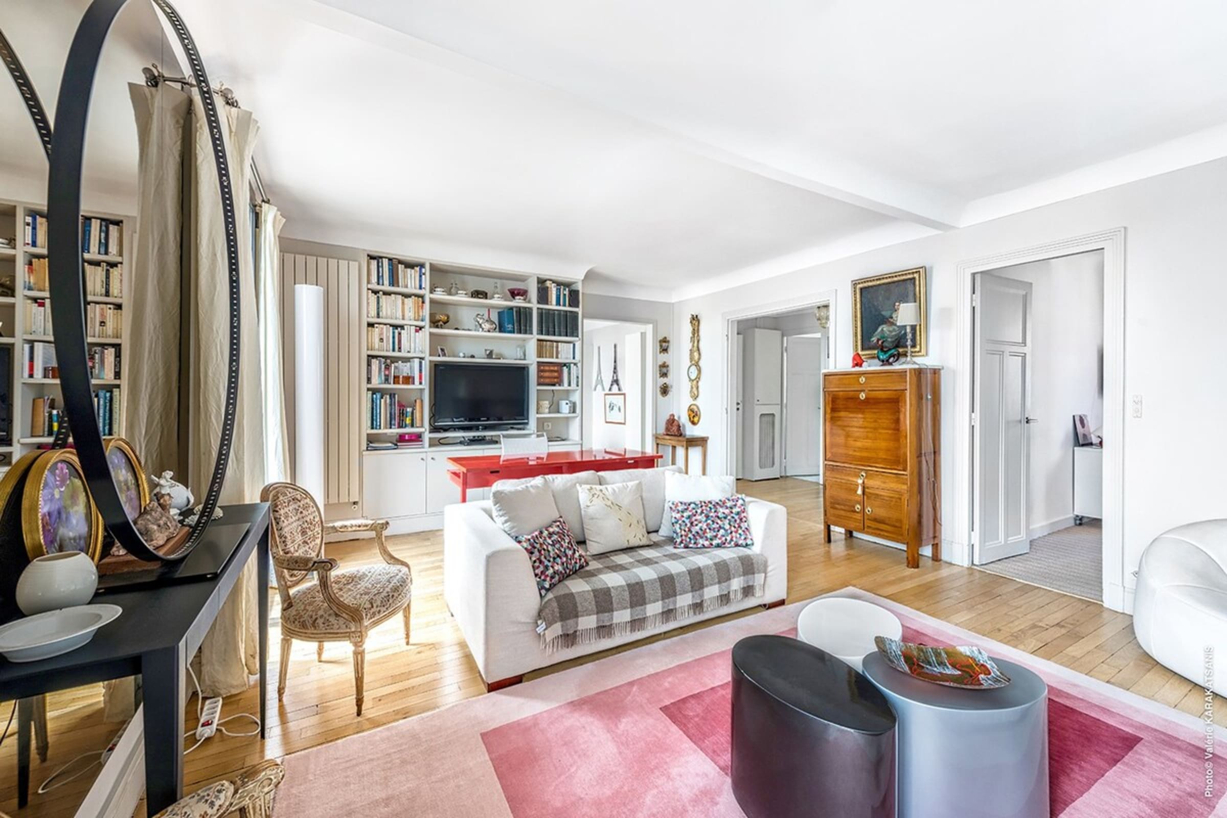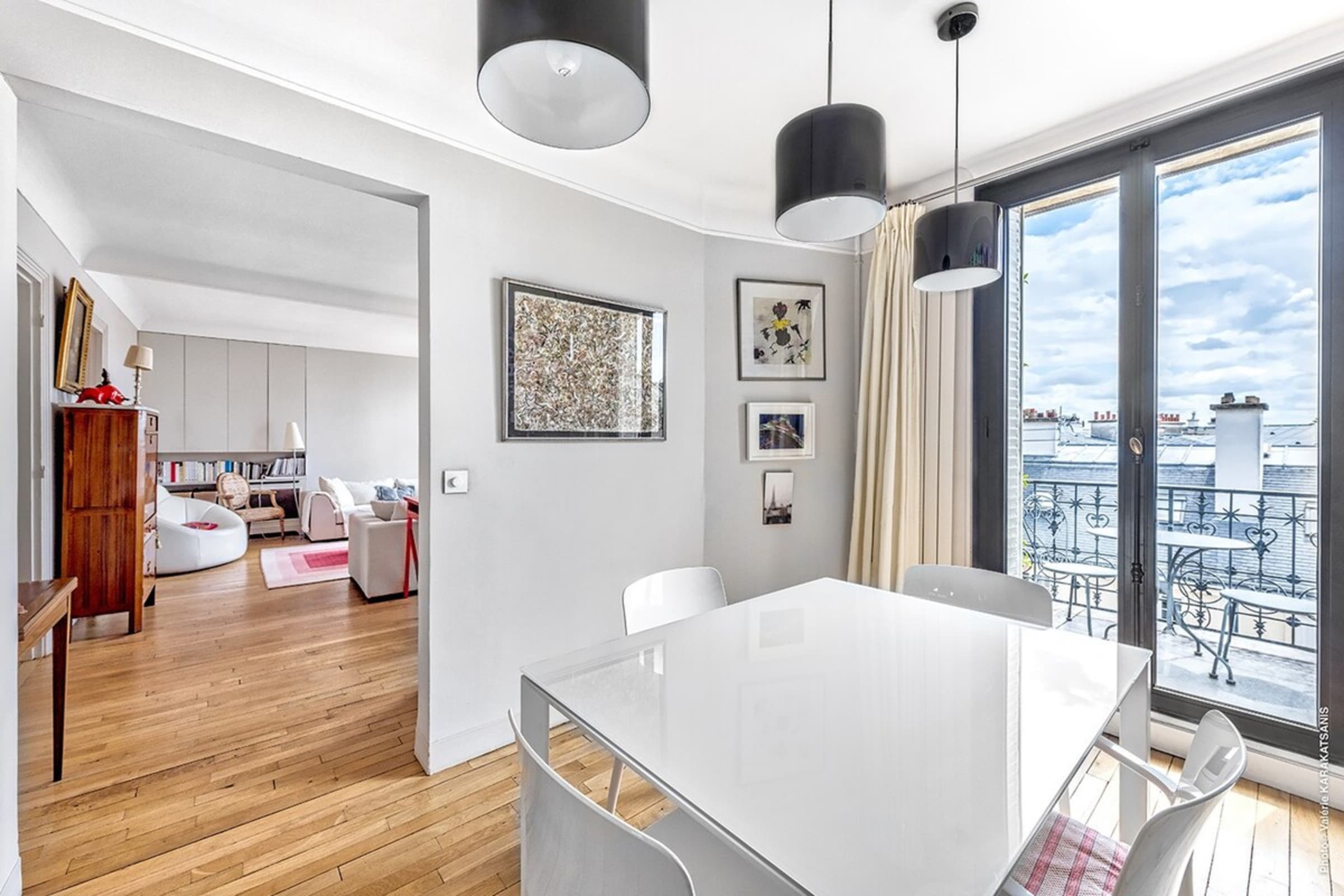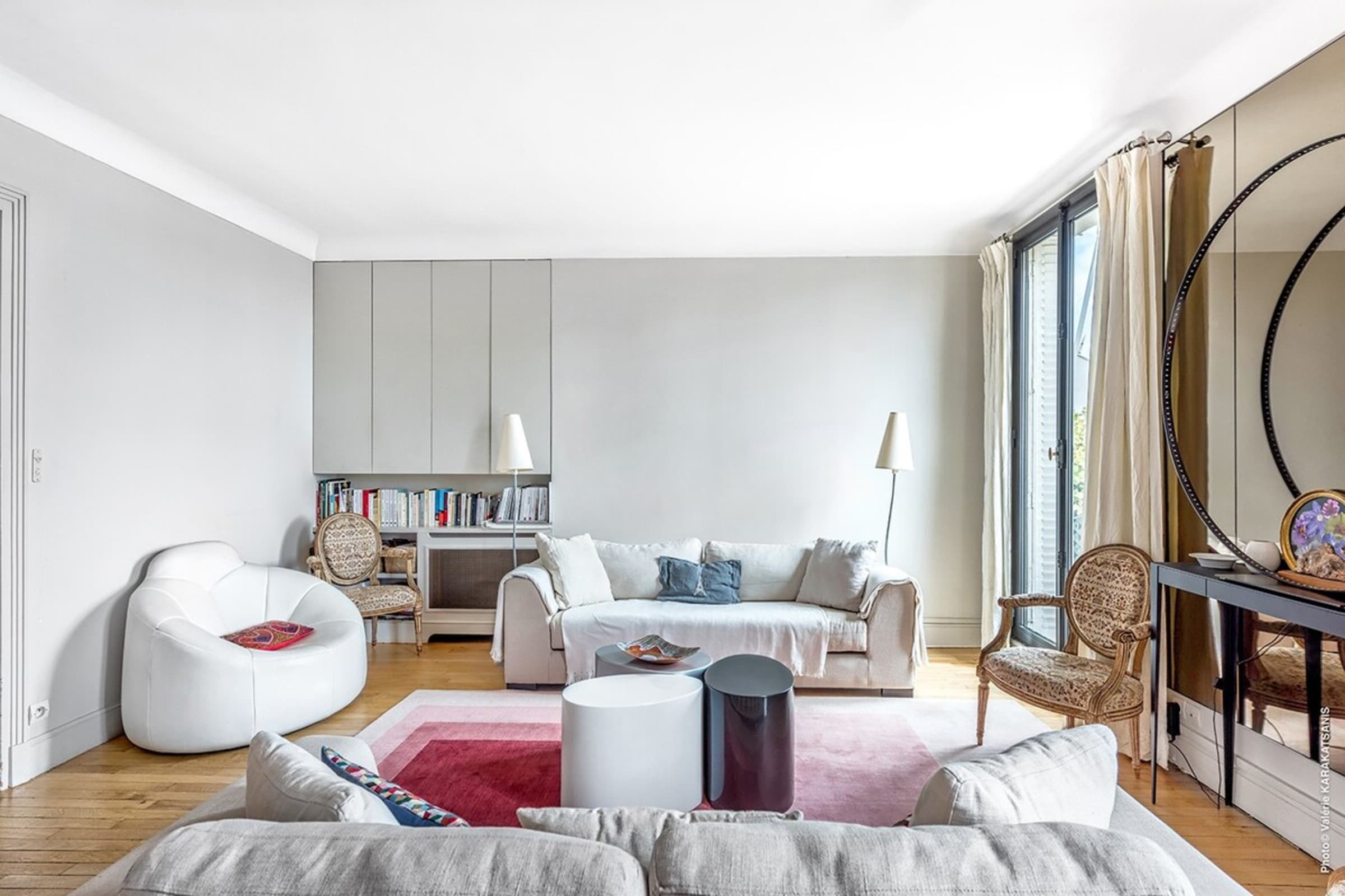 Décoré avec goût dans un style typiquement français, le salon allie élégance et confort, créant une ambiance chaleureuse idéale pour des soirées douillettes à la maison. La salle à manger généreusement dimensionnée, adjacente, est parfaite pour recevoir des amis ou savourer un dîner romantique à deux. La table donne sur la terrasse pittoresque, offrant un cadre magnifique avec la Tour Eiffel en toile de fond.