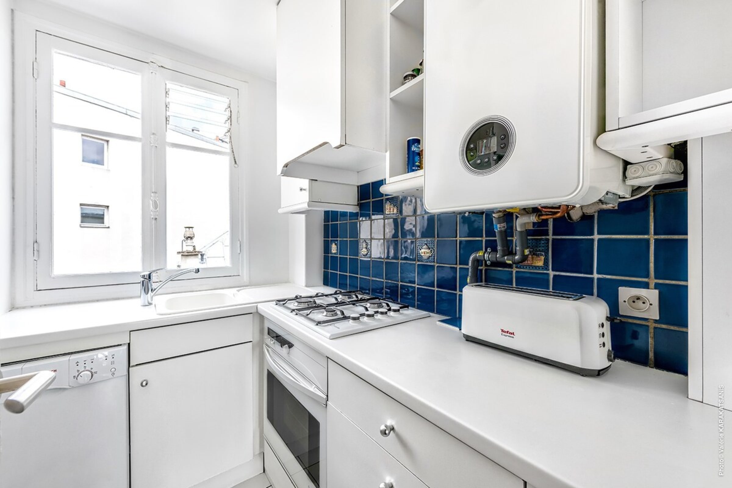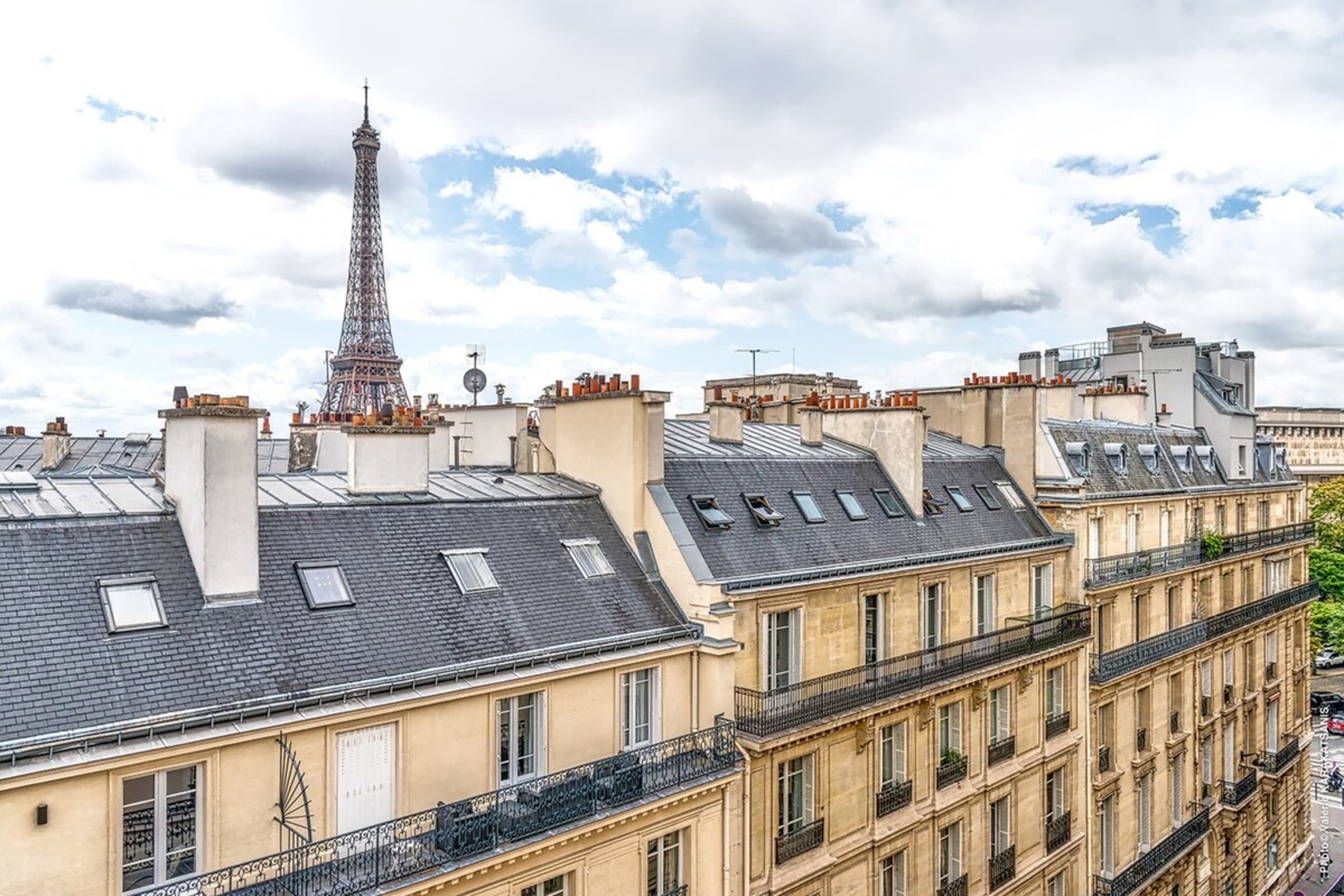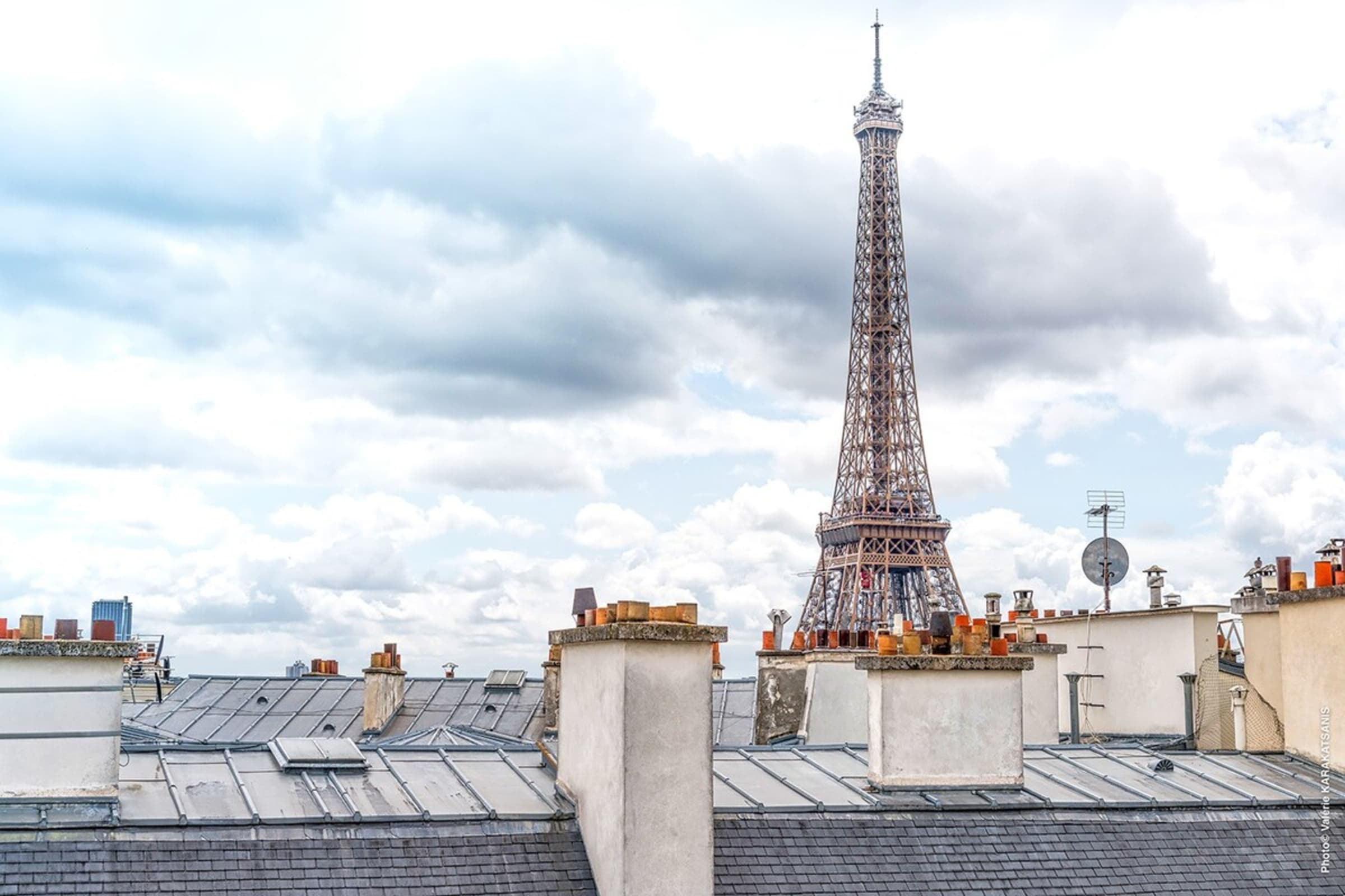 Bienvenue dans notre charmant appartement d'une chambre niché au cœur de Paris. L'espace de vie spacieux est baigné de lumière naturelle, offrant une vue imprenable sur l'emblématique Tour Eiffel au loin.