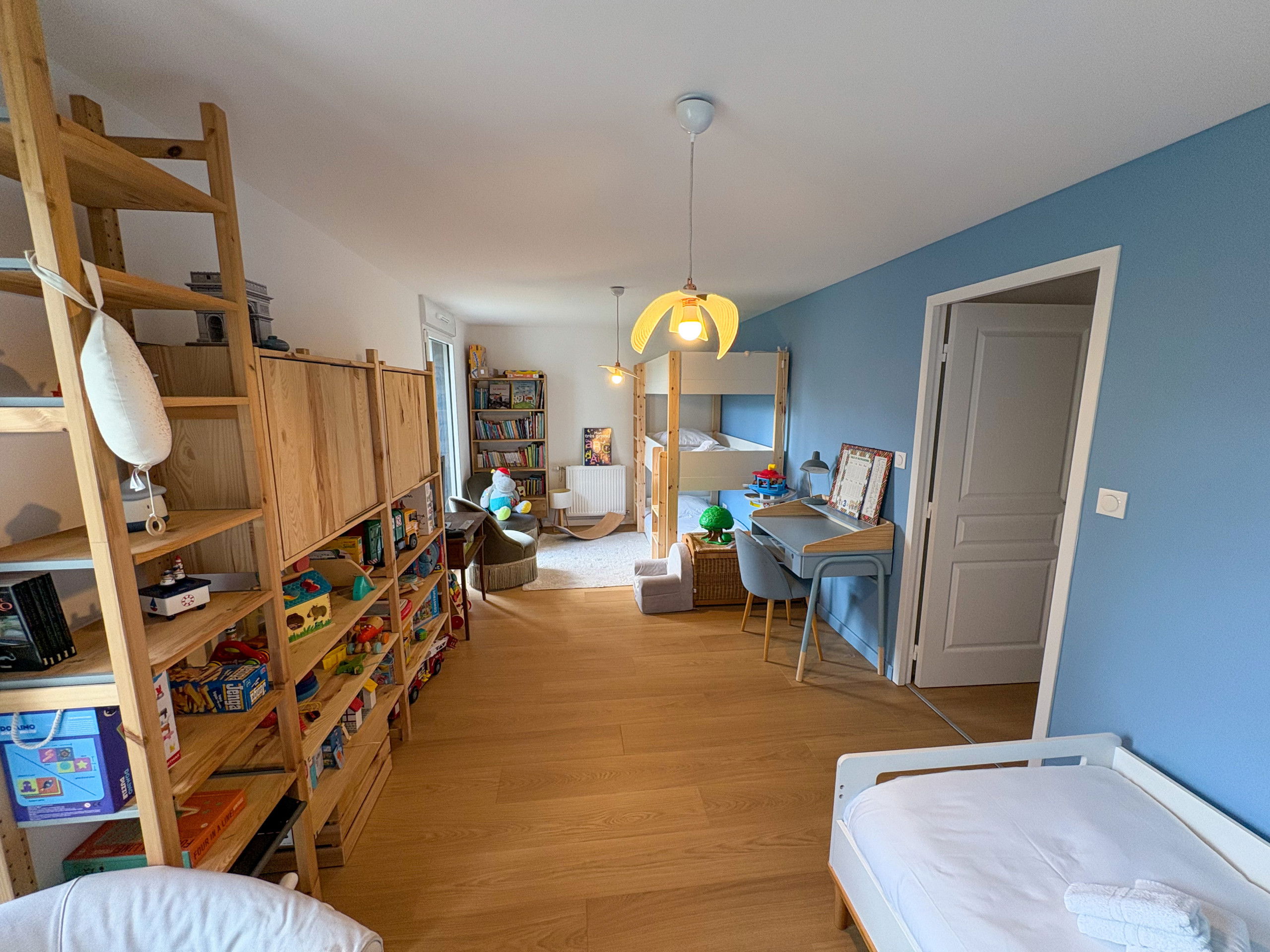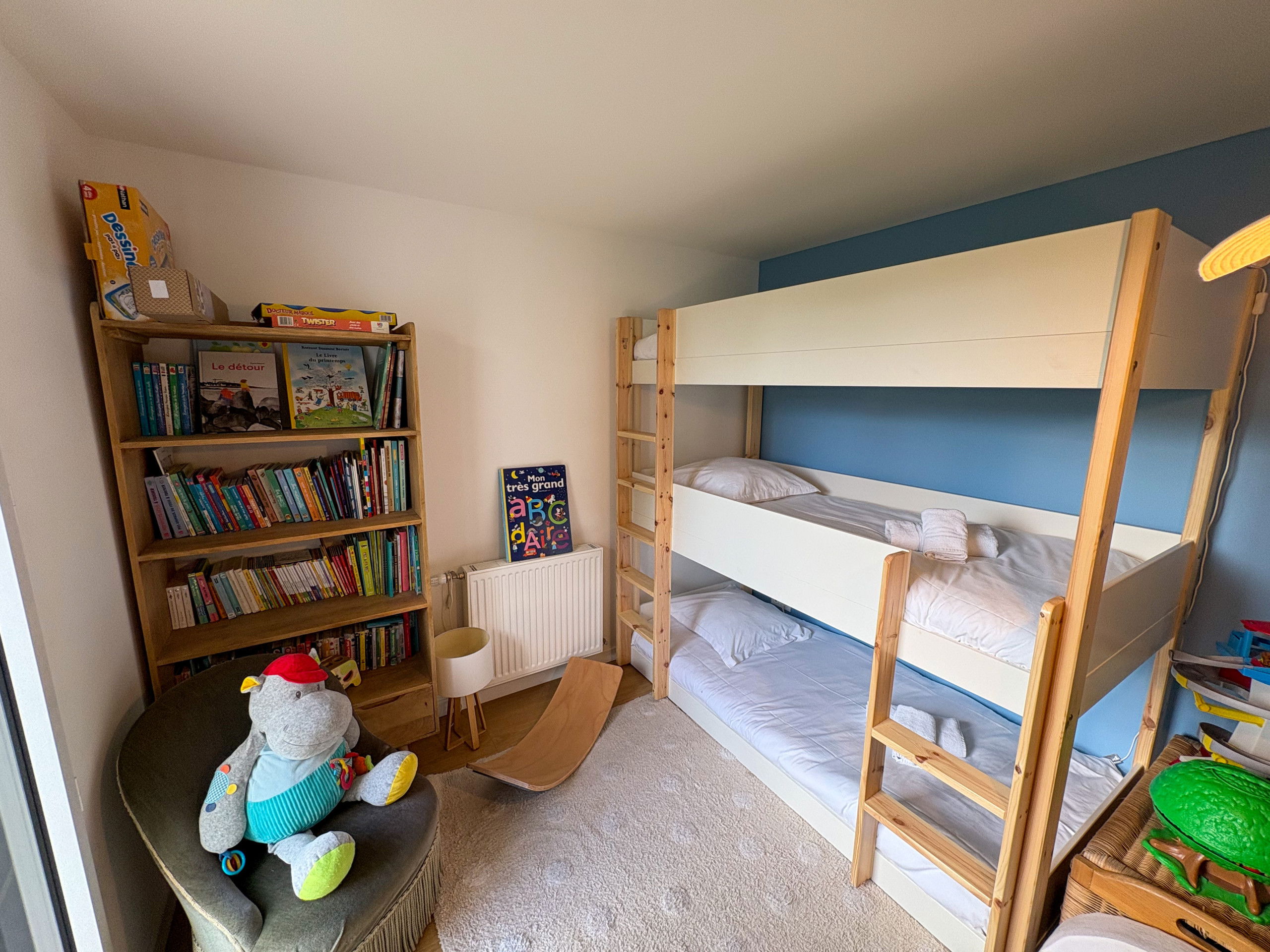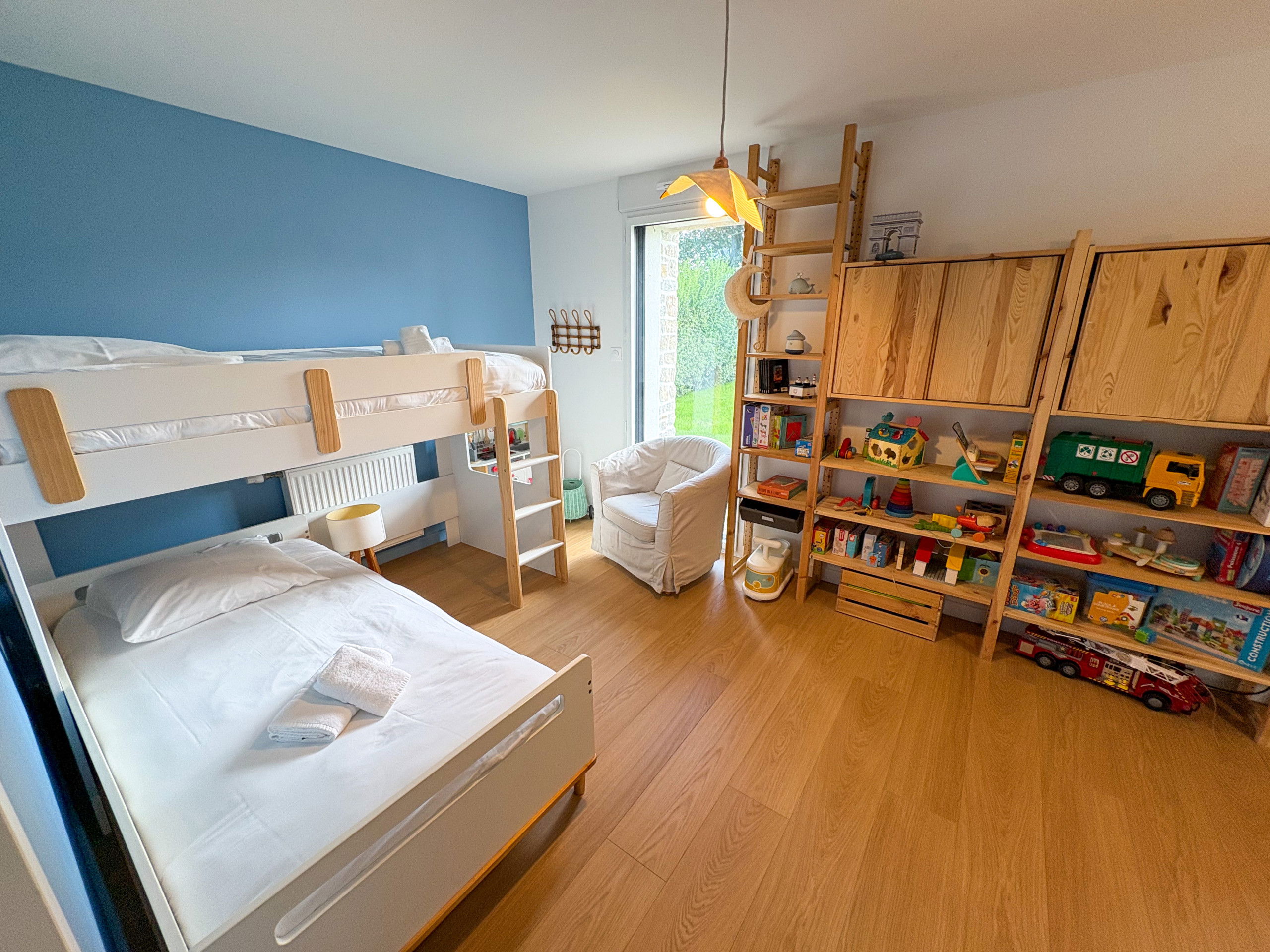 Deux autres chambres complètent ce niveau, dont une grande chambre spécialement pensée pour les enfants. Celle-ci est équipée de deux lits superposés (90x190cm) : l’un avec deux couchages, l’autre avec trois couchages superposés, pour un total de cinq lits simples, ainsi que de nombreux jouets et jeux pour ravir les plus jeunes. La troisième chambre dispose, quant à elle, d’un lit double (160x200), idéal pour un couple ou deux personnes supplémentaires.