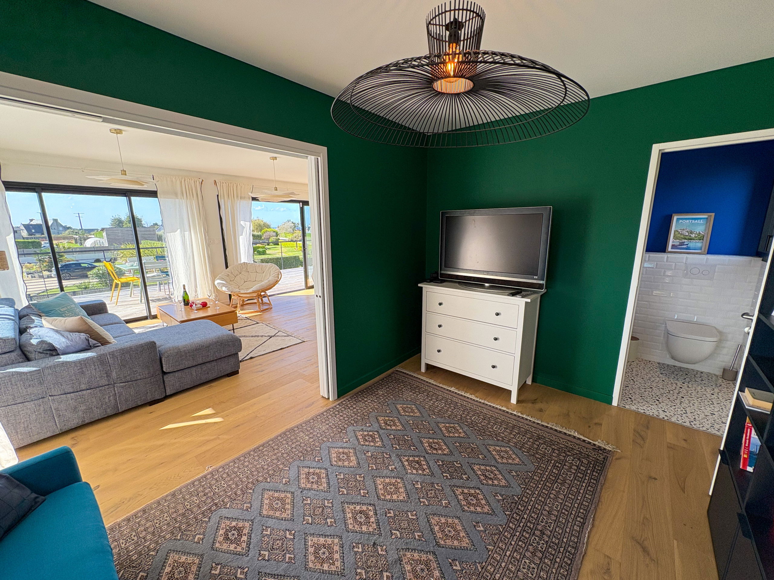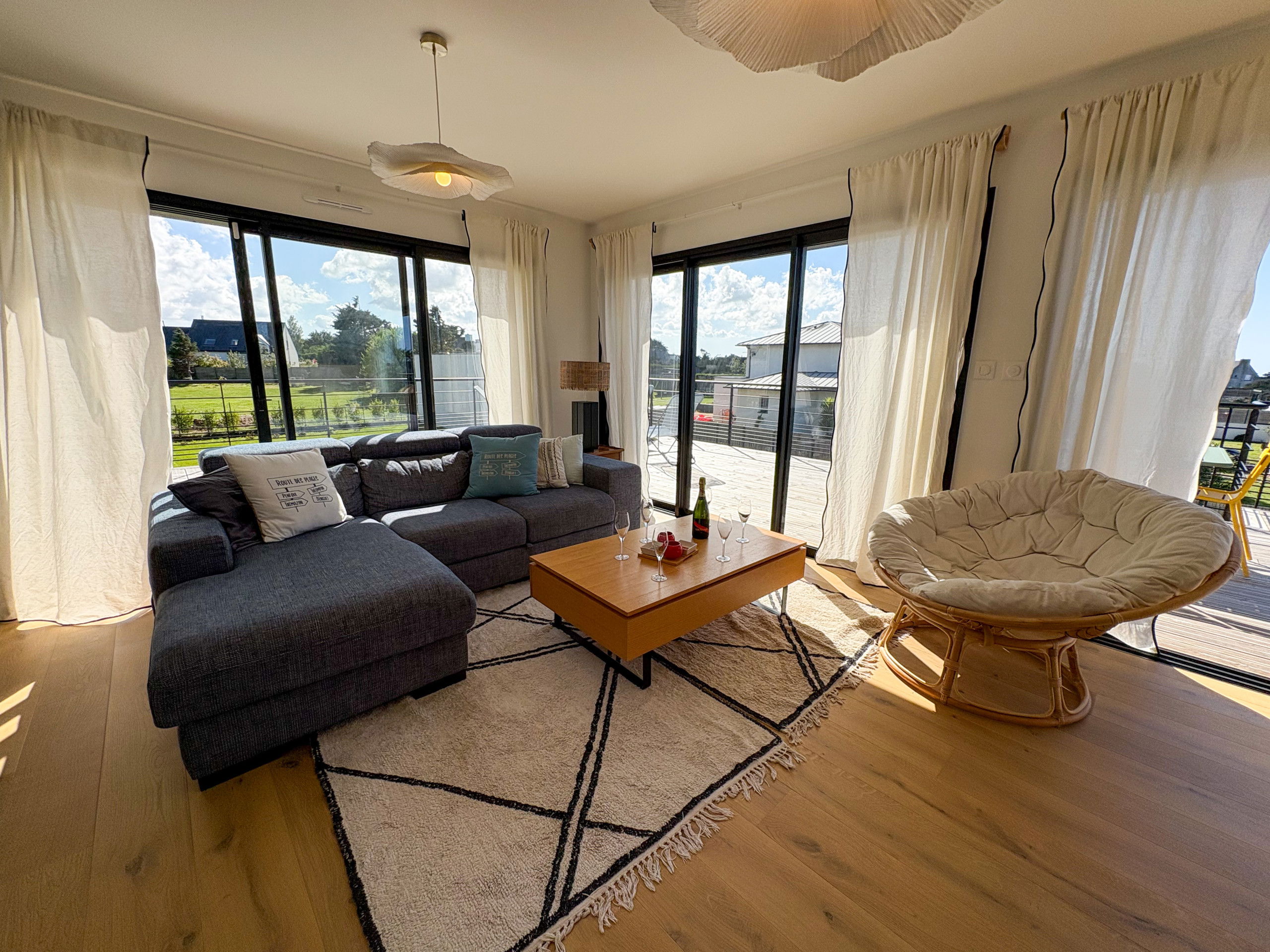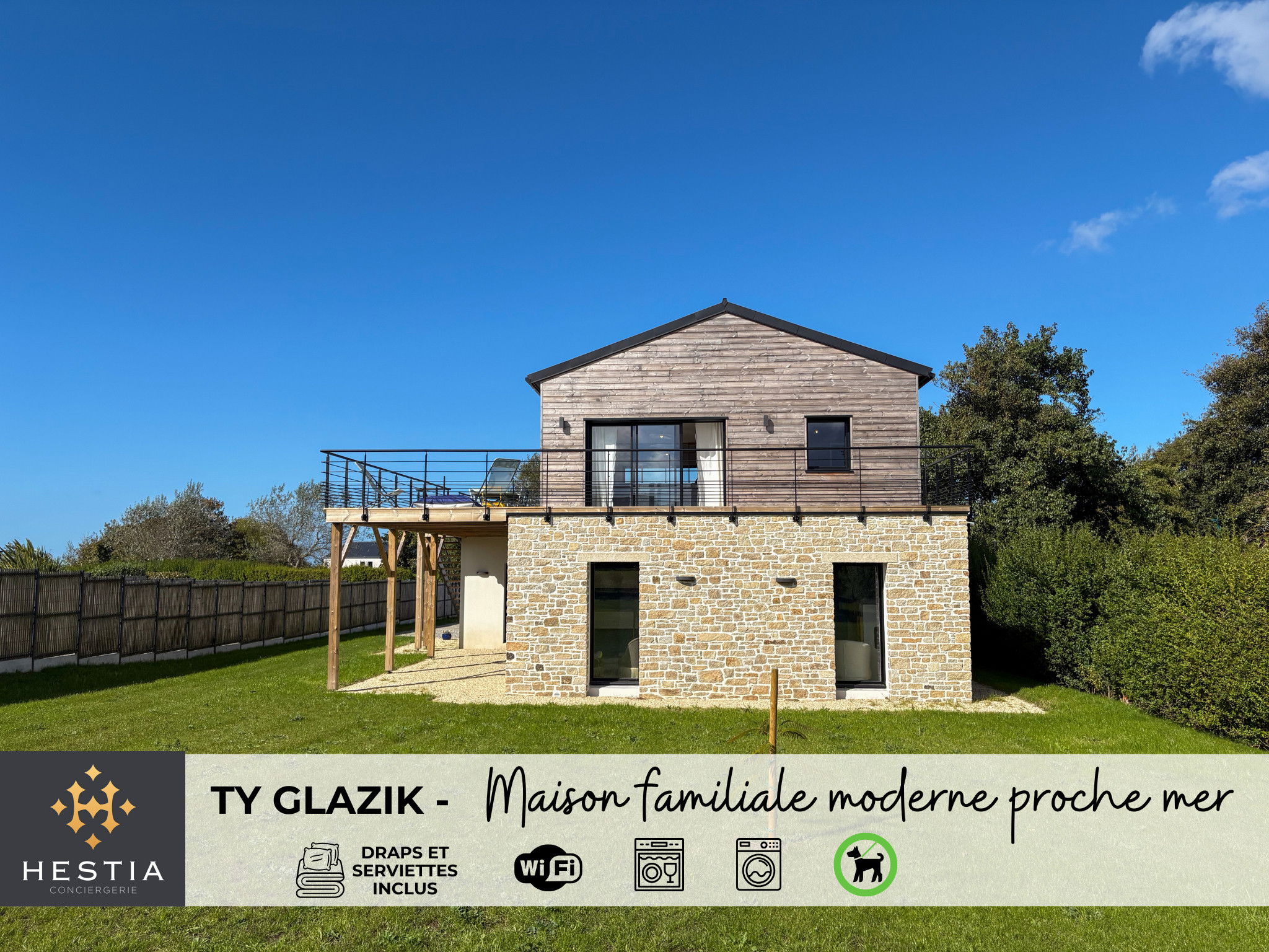 Bienvenue à TY Glazik, une belle maison contemporaine située dans la charmante commune de Saint-Pabu. Nichée dans un quartier paisible, cette maison spacieuse offre tout le confort nécessaire pour accueillir jusqu’à 9 personnes, dans un cadre idéal pour des vacances en famille ou entre amis.