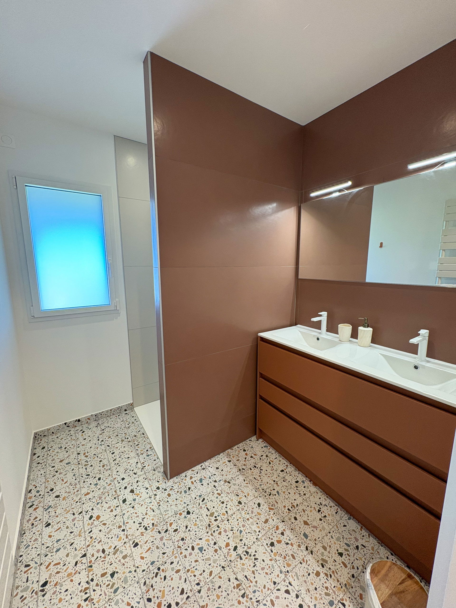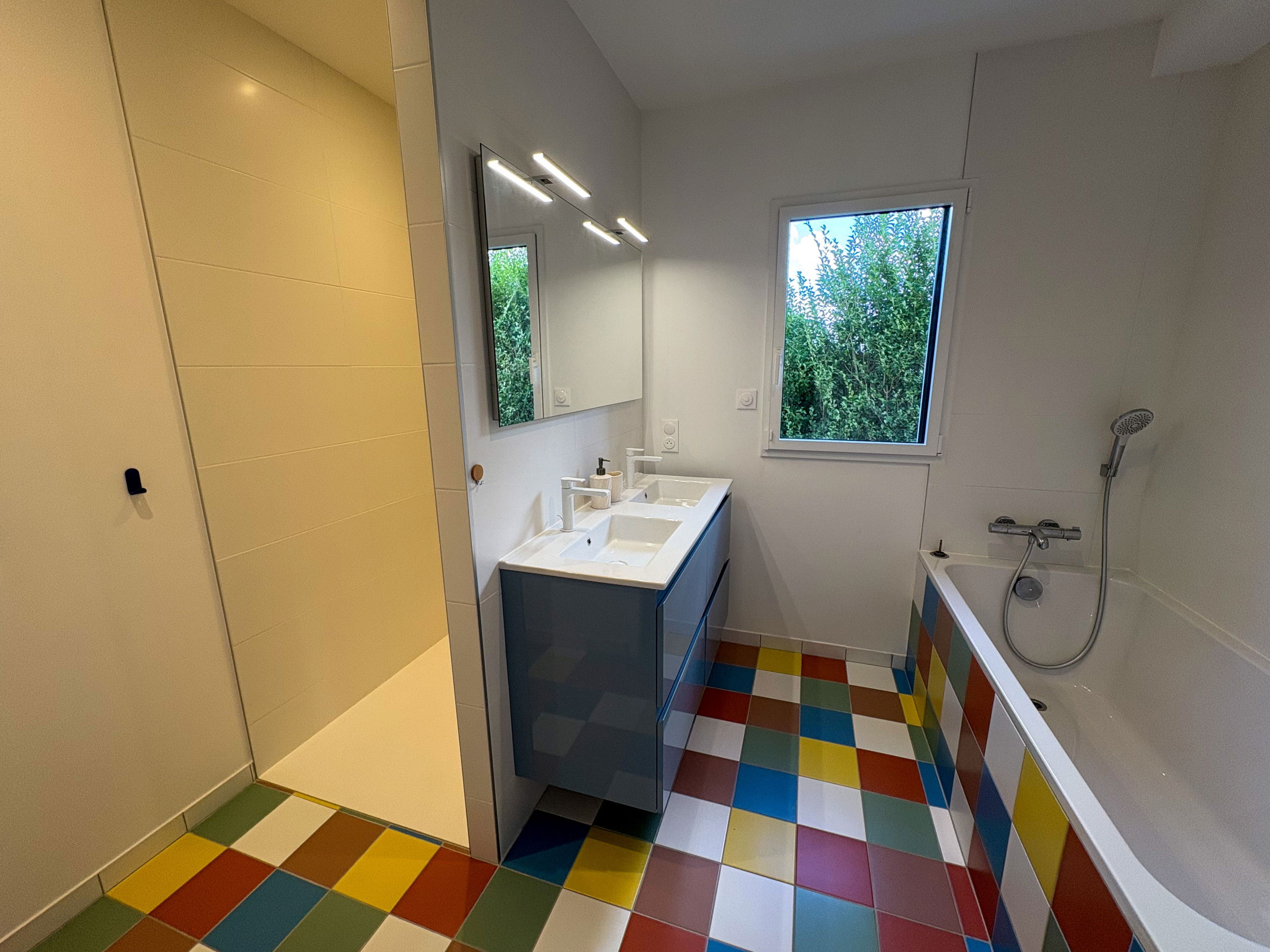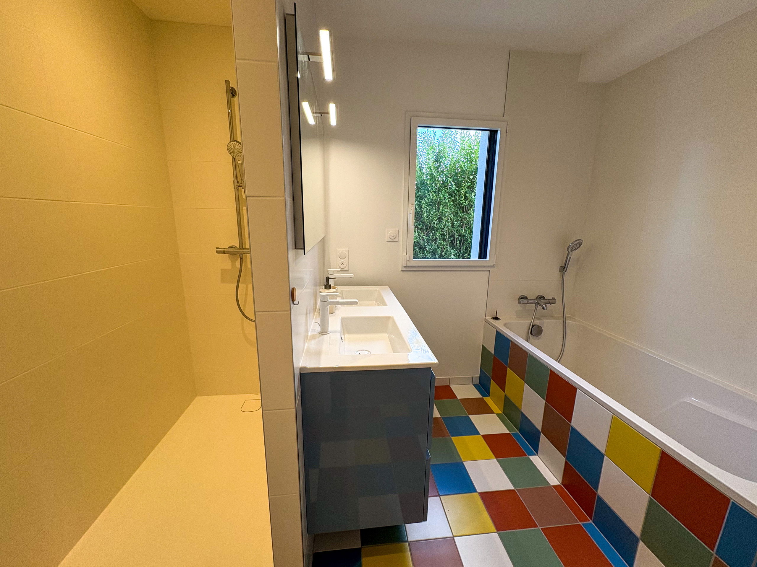 Ces deux chambres partagent une salle de bain avec baignoire, ainsi qu’un WC indépendant