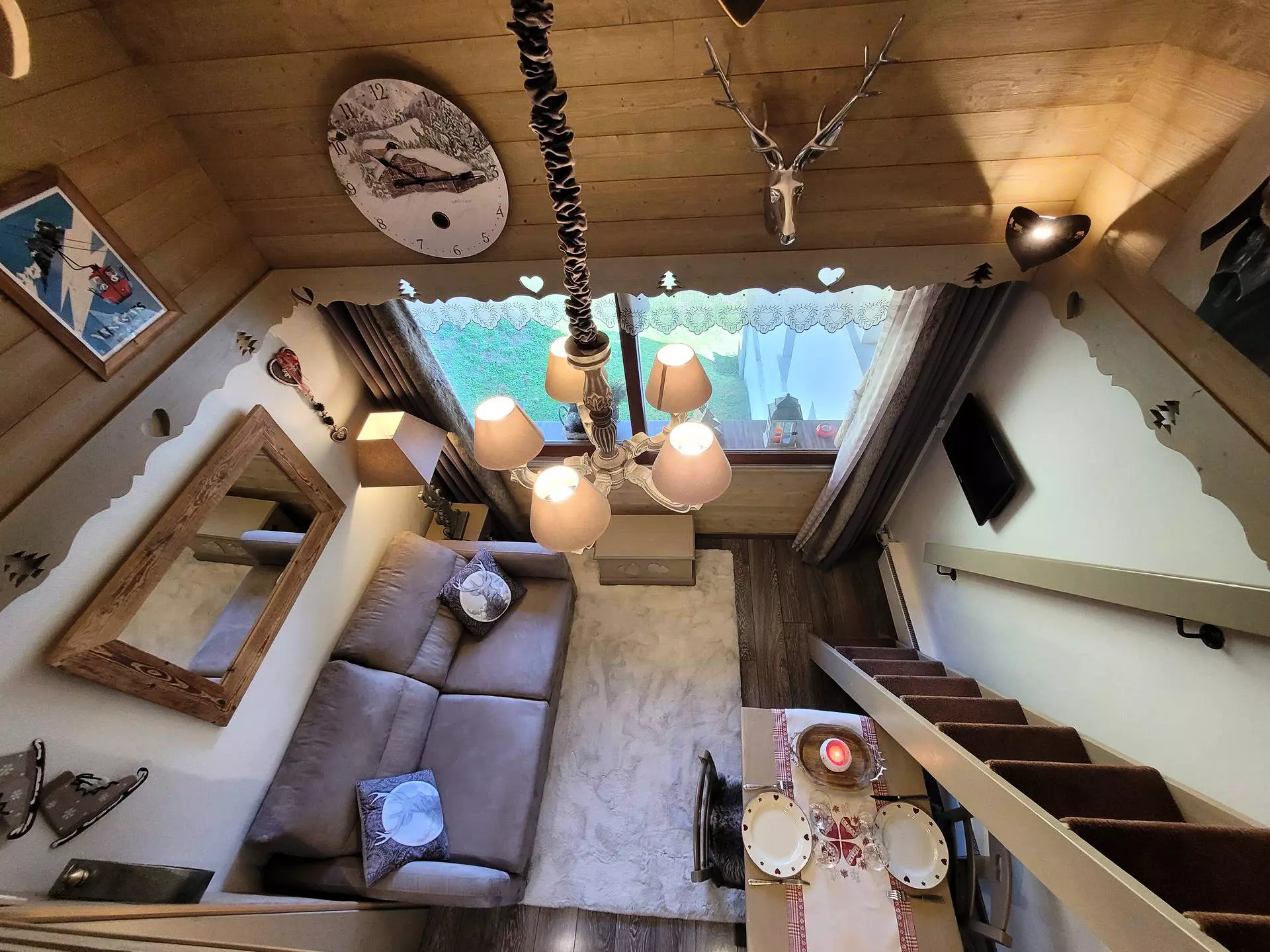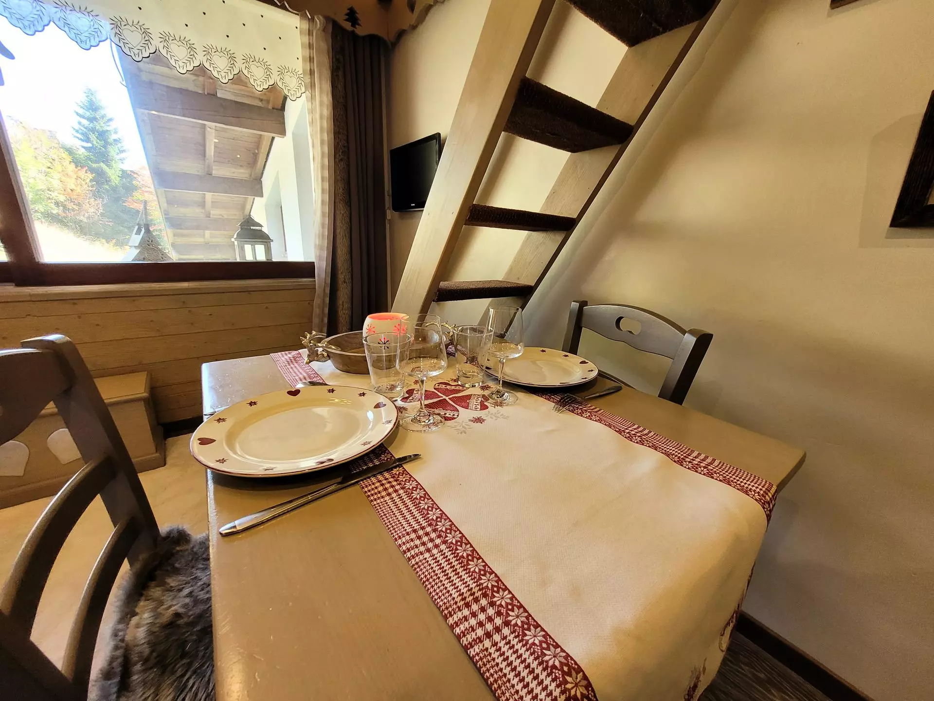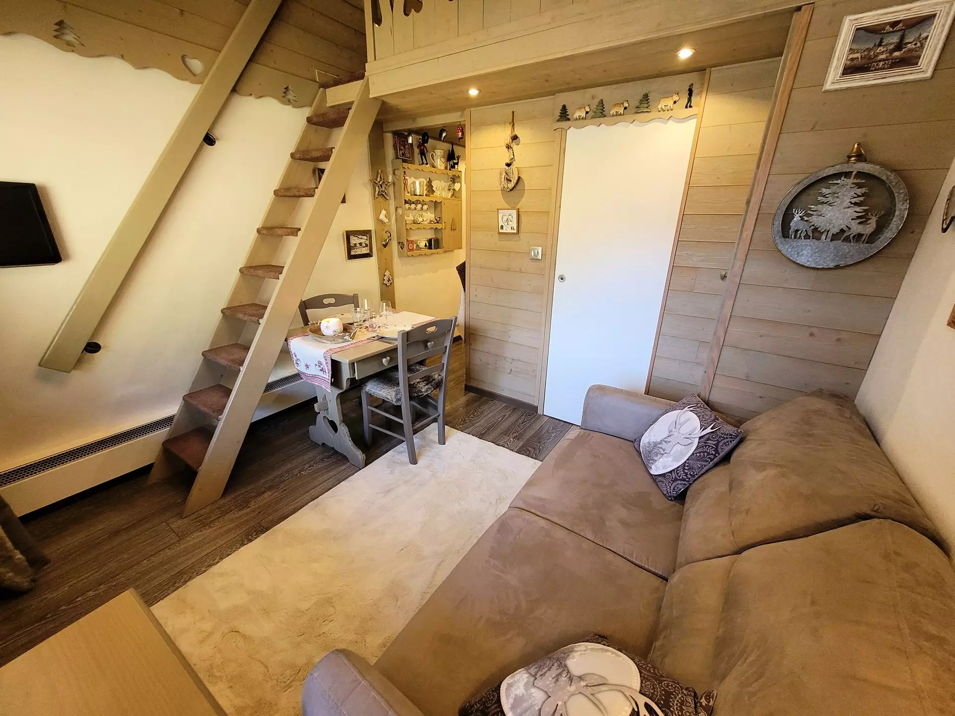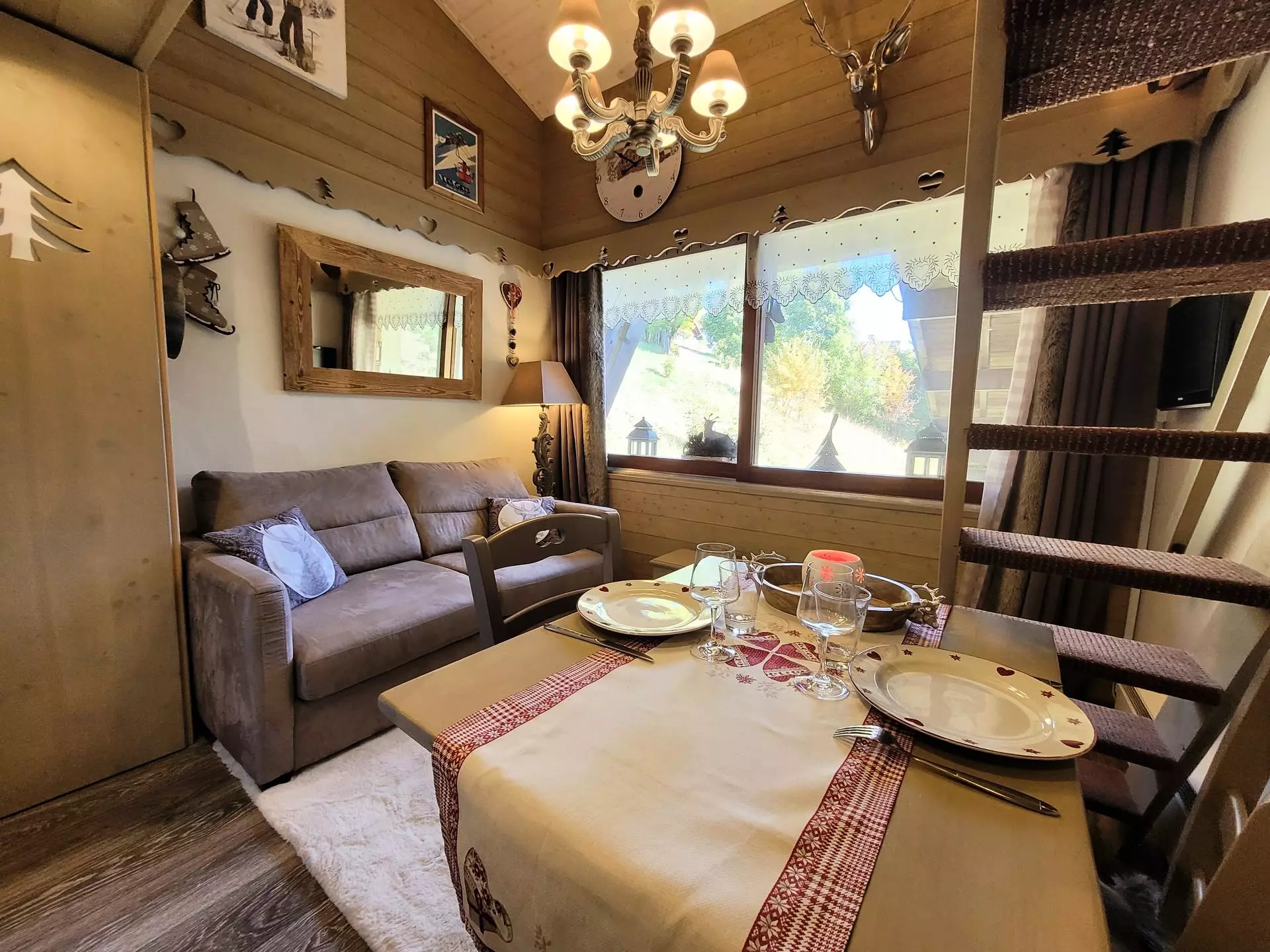 - Un espace salon séjour, équipé d'une table à manger et d'un canapé convertible