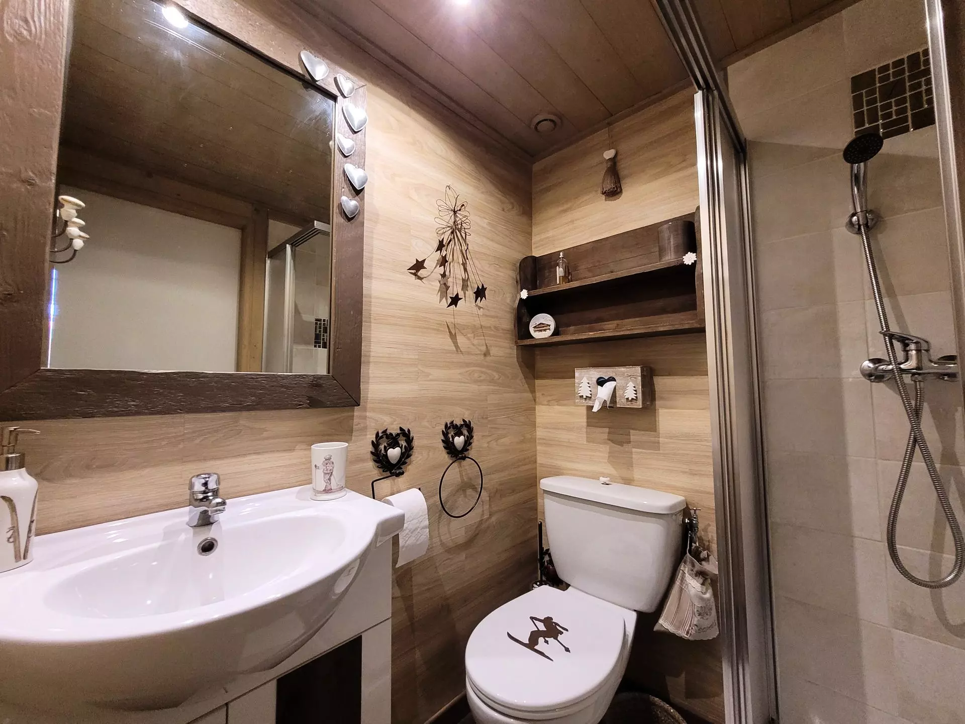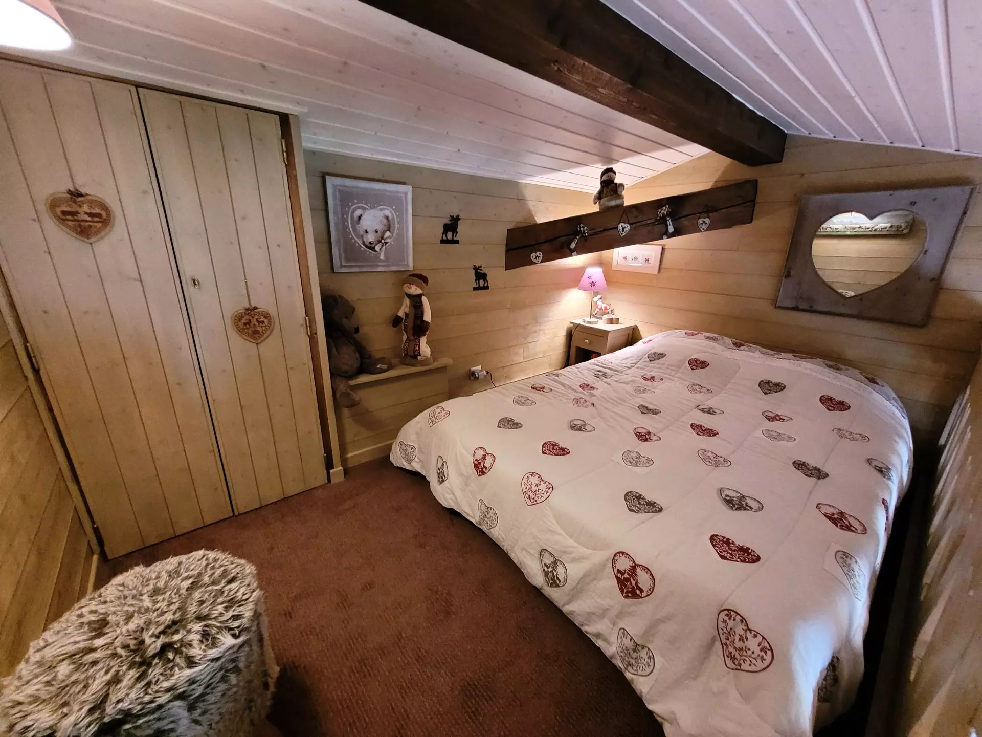 - Une mezzanine équipée d'un lit double de 140cm x 190cm, placard