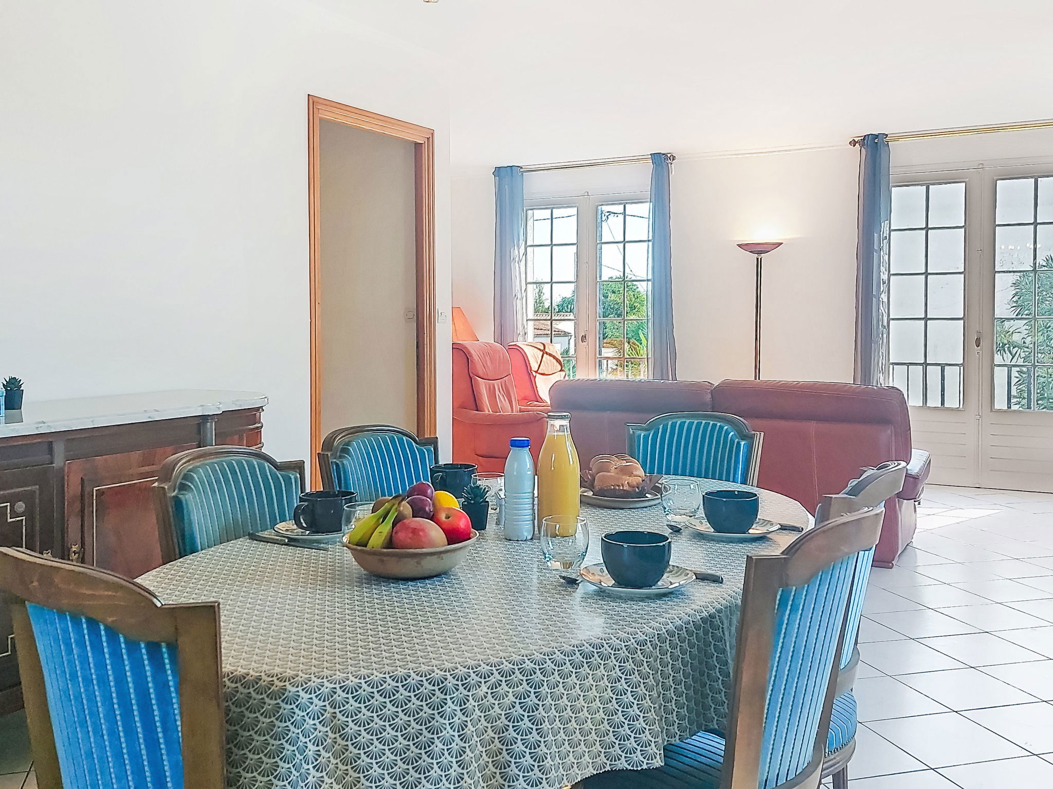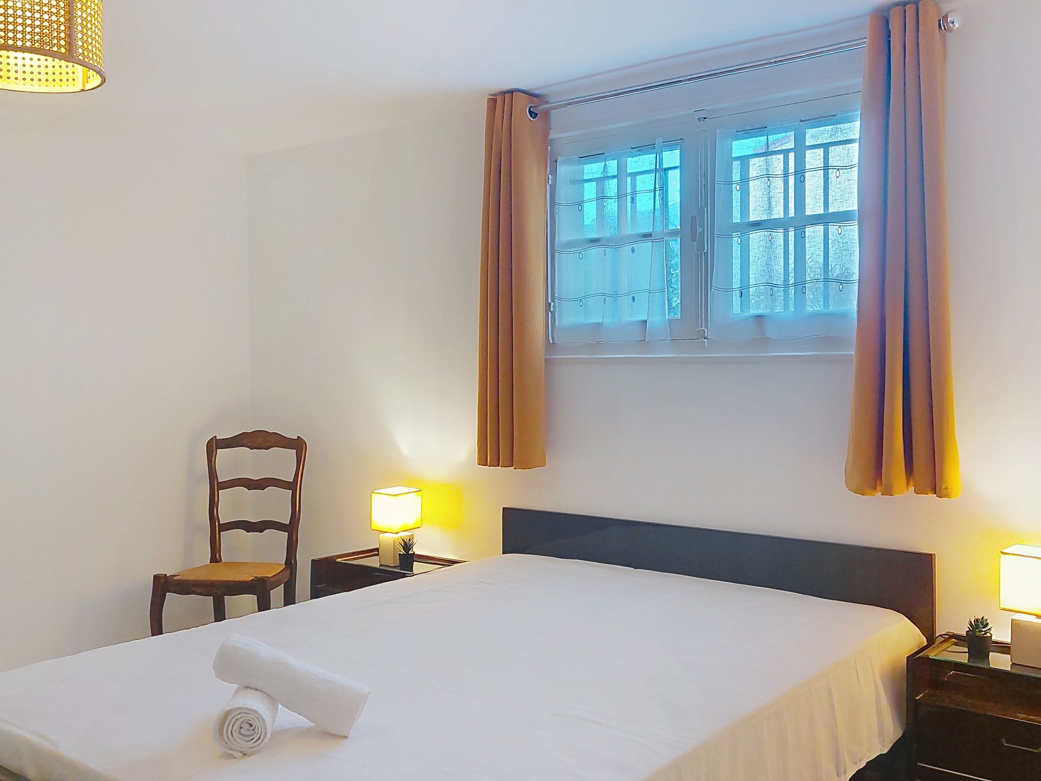 "L'Allée", maison 4 pièces 100 m2, sous-sol de plain-pied. Aménagement simple et fonctionnel: séjour/salle à manger avec TV (écran plat). Sortie sur le jardin, sur la terrasse. 1 chambre avec 2 lits (80 cm, longueur 190 cm). 1 chambre avec 1 grand-lit (140 cm, longueur 190 cm). Cuisine (four, lave-vaisselle, 4 plaques vitrocéramiques, grille-pain, bouilloire électrique, micro-ondes, cafetière électrique). Salle de bains, WC séparé. À l'étage inférieur: 1 chambre avec 1 grand-lit (140 cm, longueur 190 cm), salle de bains et WC séparés. Salle de jeux. Chauffage électrique. Grande terrasse, grand jardin. Meubles de terrasse, barbecue. A disposition: lave-linge, fer à repasser, sèche-cheveux. Internet (Connexion WIFI, en sus). Place de parking (cloturée), garage sur le terrain. Veuillez noter: maison non-fumeur. Détecteur de fumée. Annonce d'un particulier (art 155, IV du CGI). 173850004235F