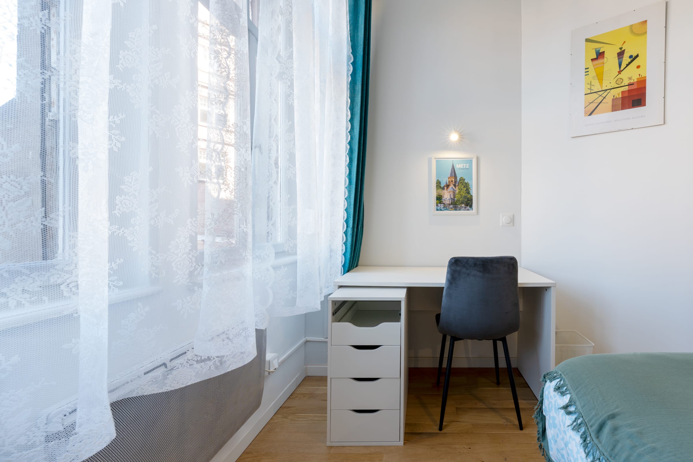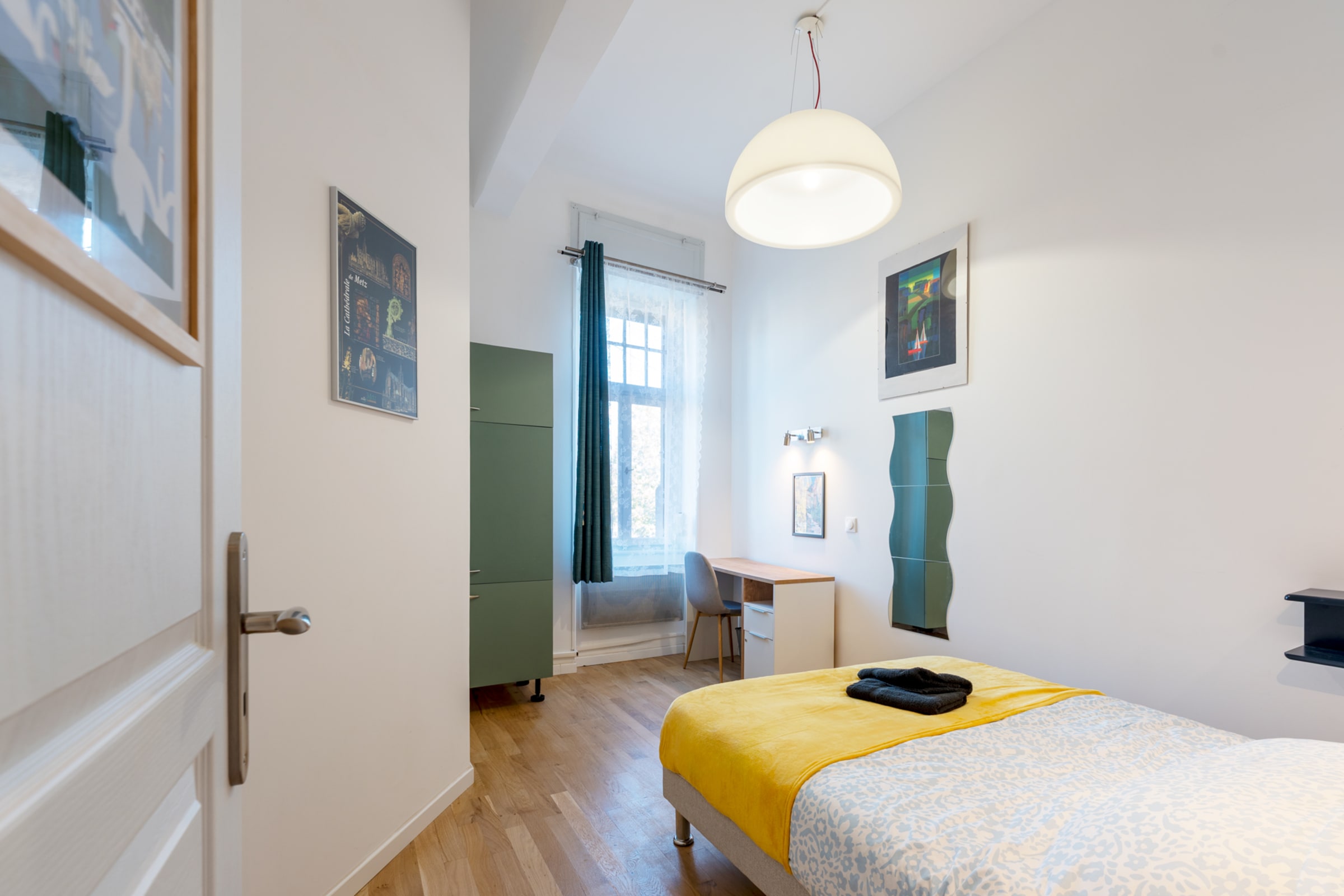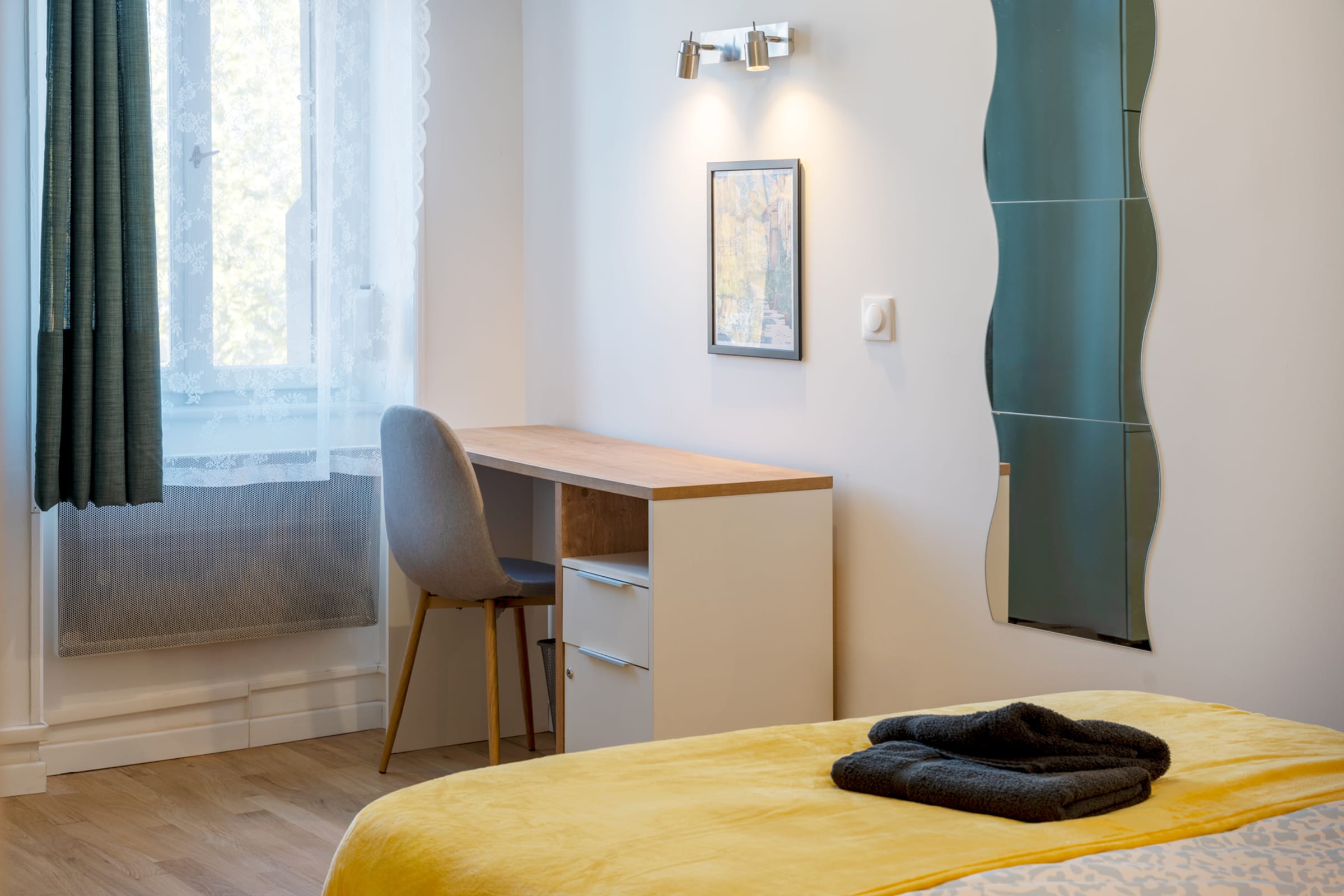 🔇 Les chambres sont équipées de fenêtres donnant sur la rue : bien que situées en retrait et au 1er étage, cela reste un logement citadin de plein centre-ville