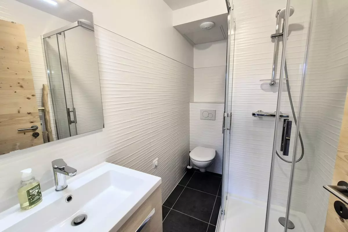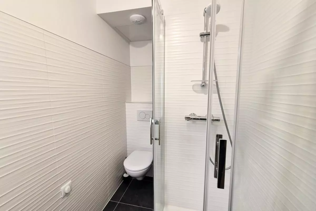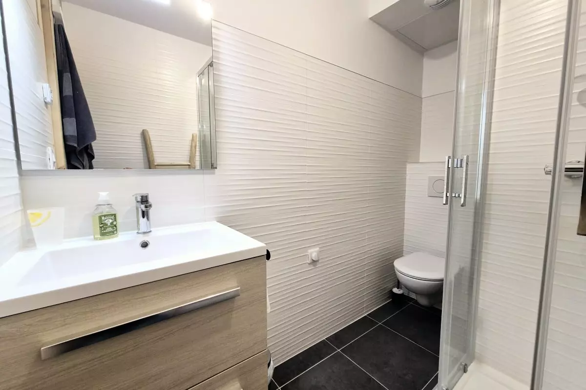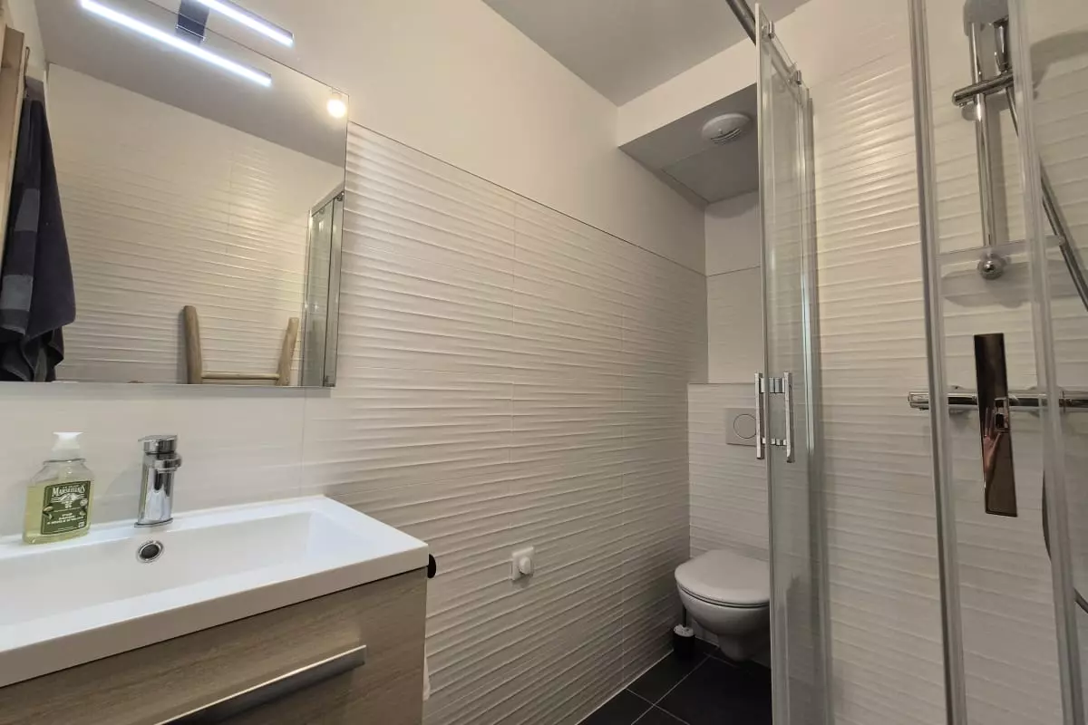 - Salle d’eau avec sèche-cheveux à disposition et étendage