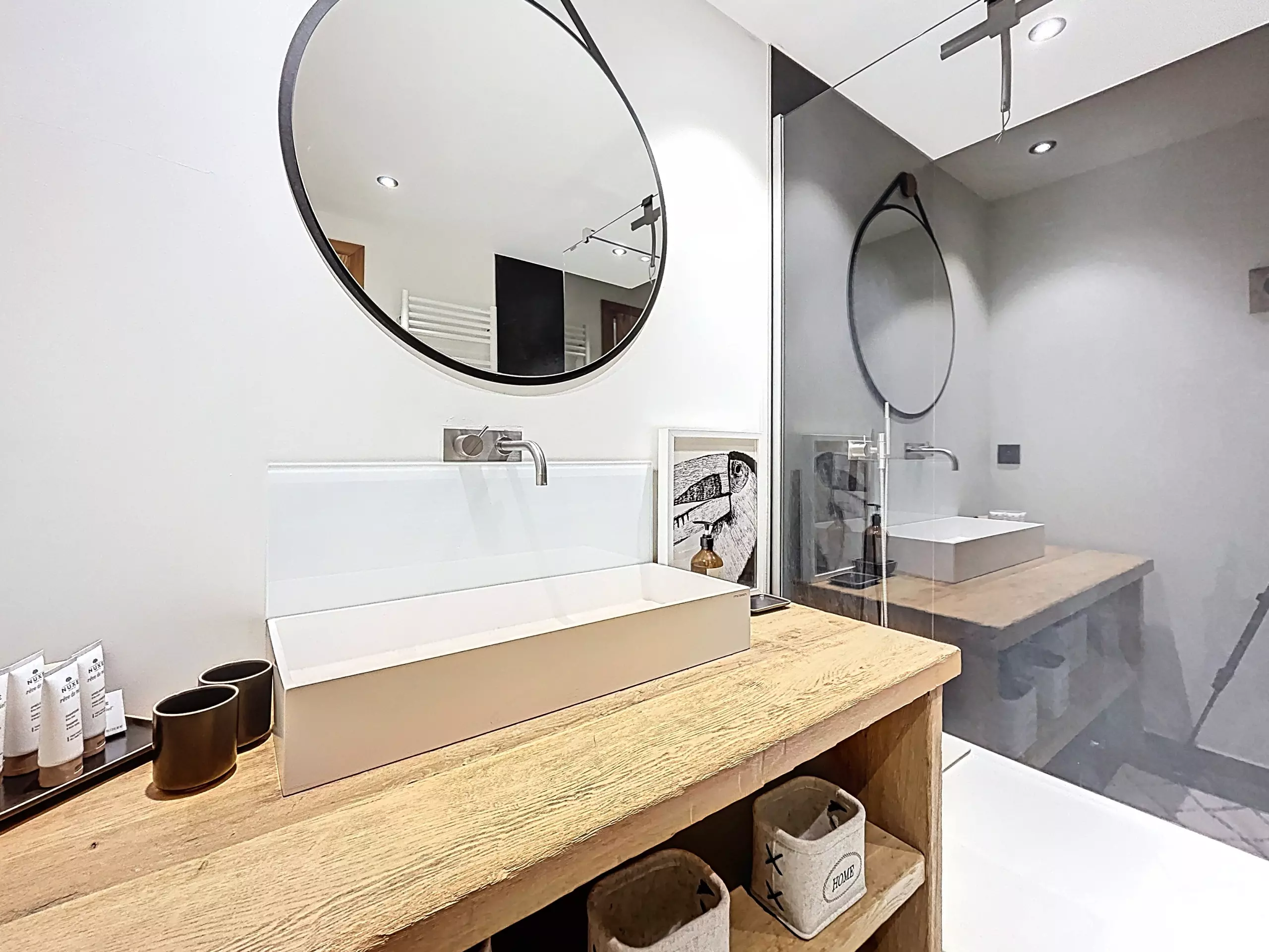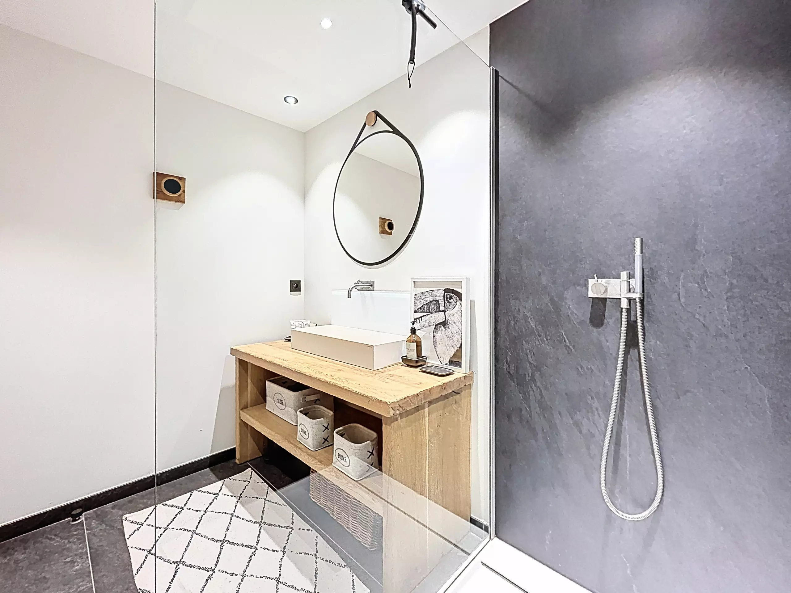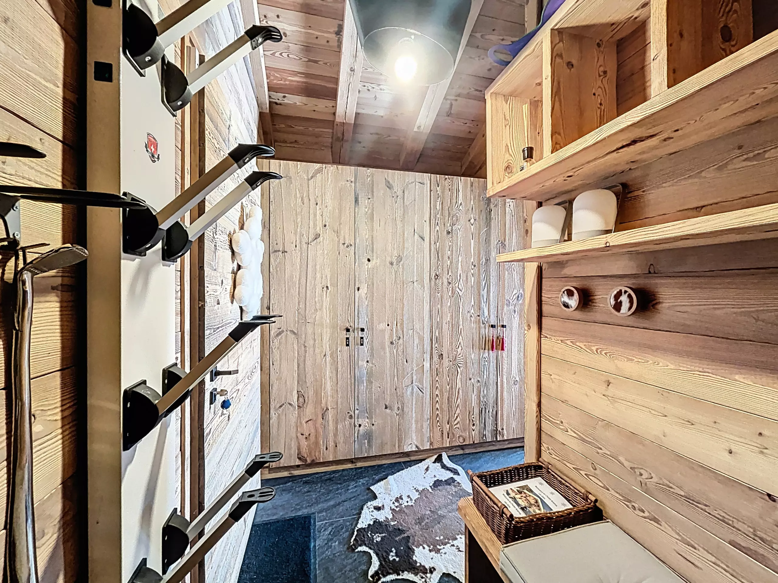 Les équipements haut de gamme incluent une salle TV cocooning, une salle à skis avec chauffe-chaussures, une buanderie équipée (lave-linge et sèche-linge) et une connexion internet haut débit.