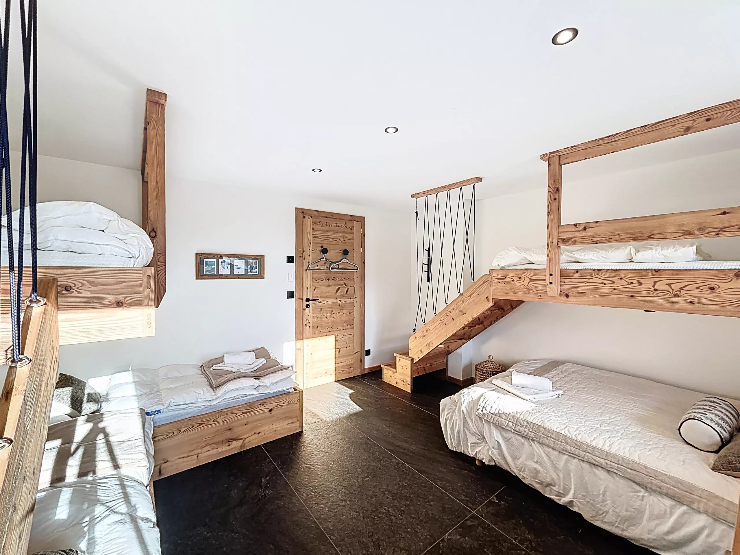Pouvant accueillir jusqu’à 10 personnes, le chalet dispose de 4 chambres dont 3 chambres doubles (avec lits modulables en lits simples) et un dortoir sur mesure doté de lits superposés avec liseuses et prises individuelles, ainsi qu’un lit simple supplémentaire. Les 2 salles d’eau, la salle de bain, et les 3 WC indépendants répartis sur les trois niveaux assurent un confort optimal pour les séjours en famille ou entre amis.