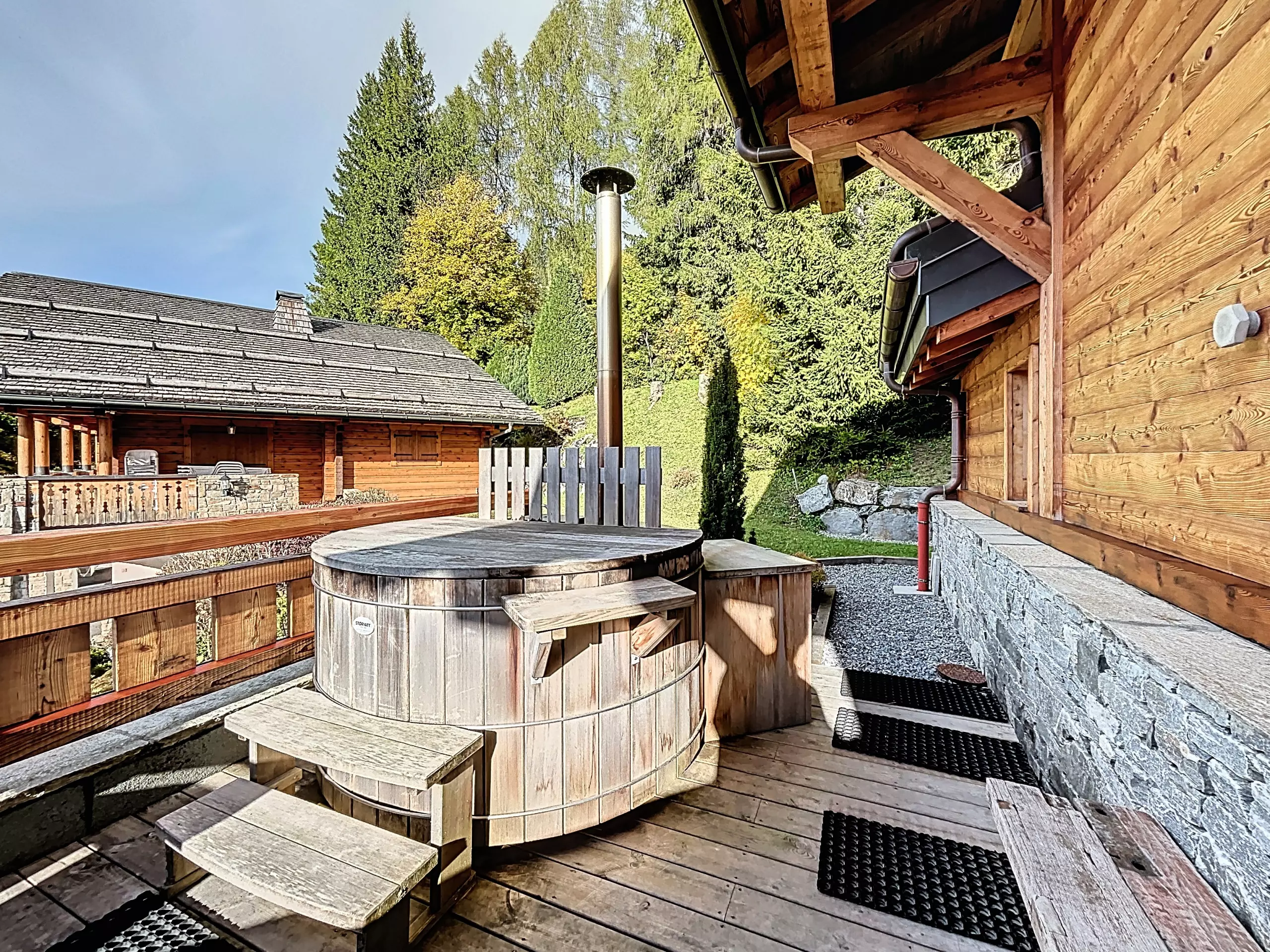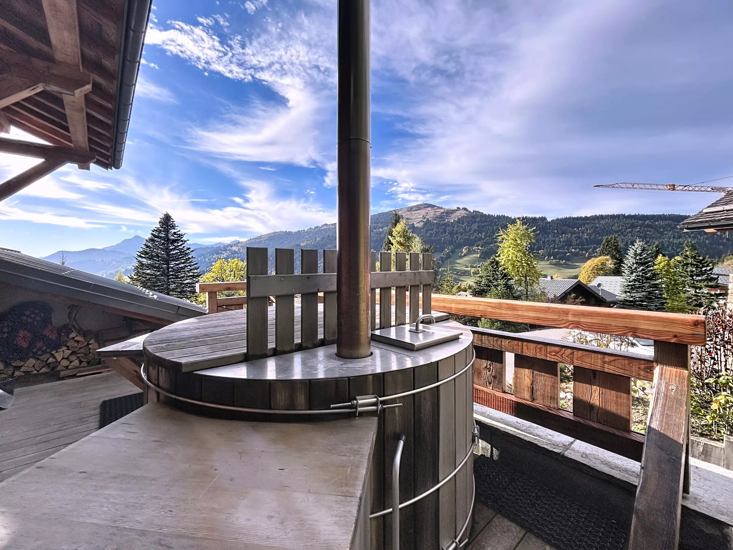 À l’extérieur, la terrasse ensoleillée est un véritable havre de détente : profitez d’un bain nordique avec vue imprenable sur les montagnes, ou d’un coin apéritif baigné par le soleil couchant.