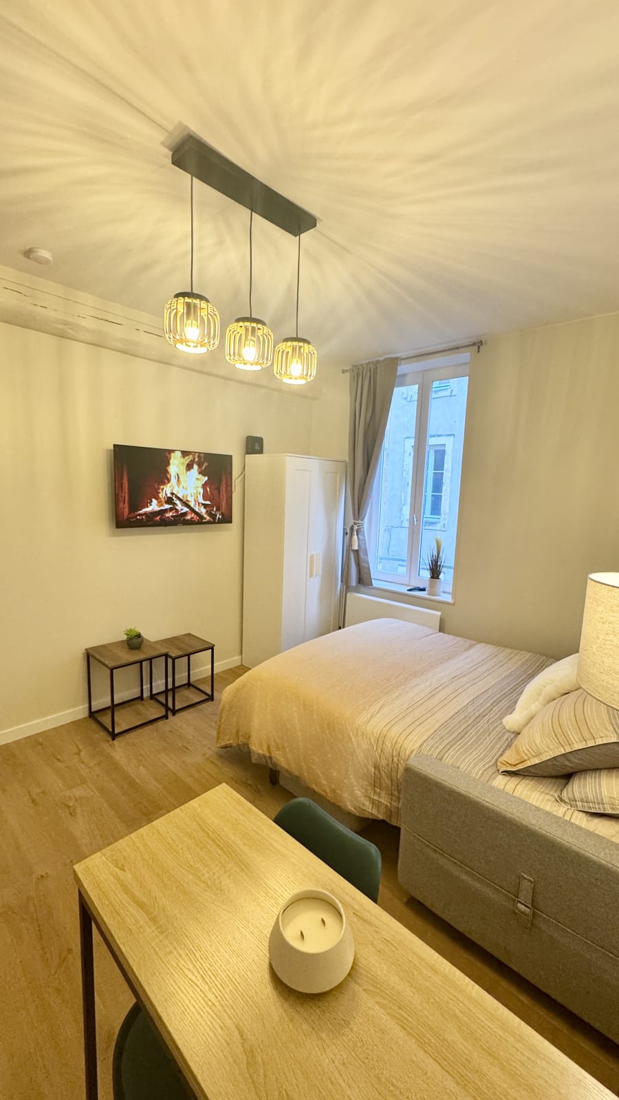 Ce studio a été entièrement repensé pour vous offrir une expérience de séjour fluide et agréable. Il dispose d’une cuisine entièrement équipée, d’un canapé-lit avec un véritable matelas confortable, d’une salle de bain moderne avec douche, d’un espace repas fonctionnel et d’un Wi-Fi haut débit. Un cocon chaleureux et bien aménagé, parfait pour un court ou moyen séjour à Metz.