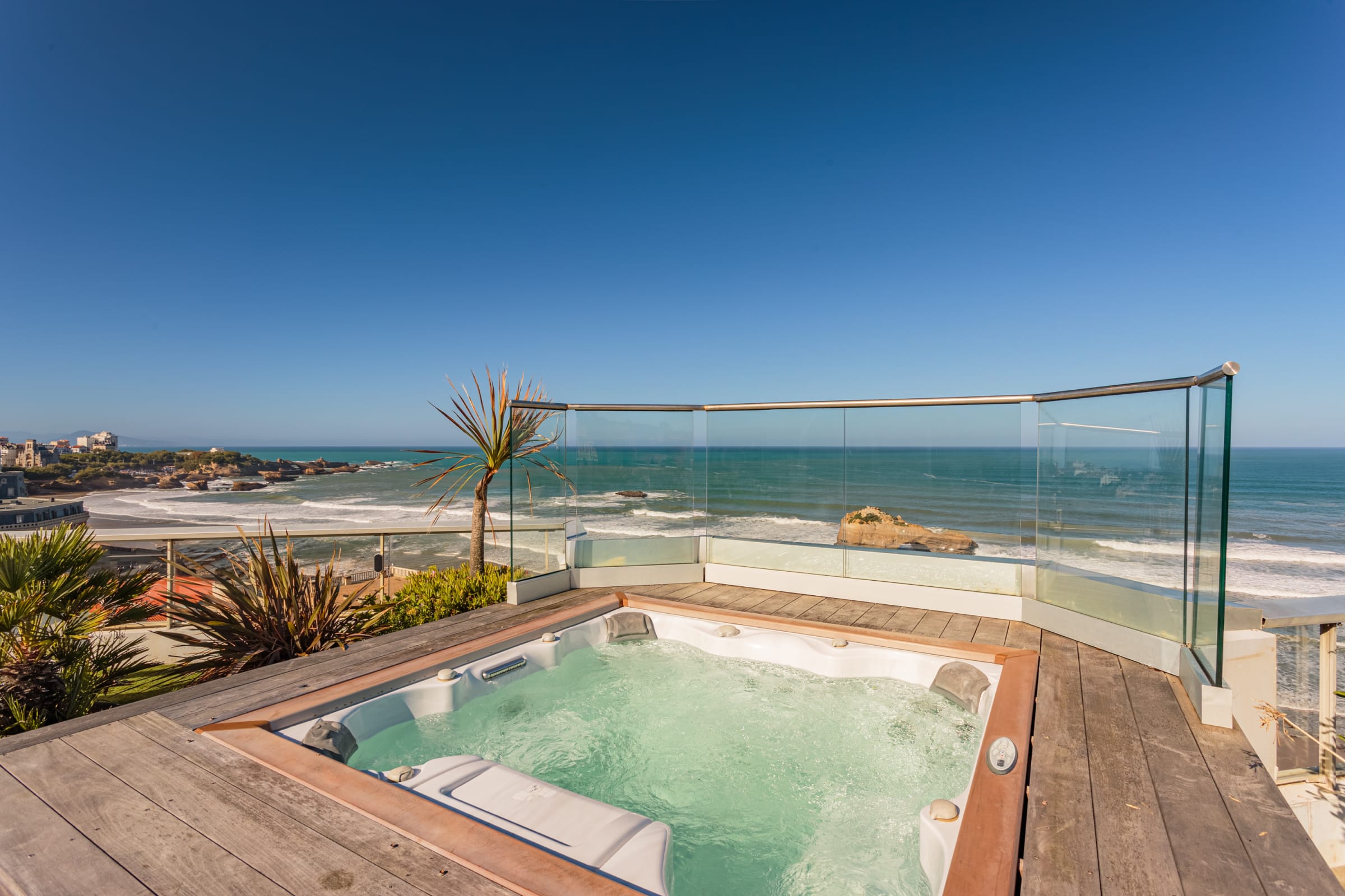 - une magnifique terrasse de 230 m² aménagée avec jacuzzi, offrant une vue panoramique époustouflante,