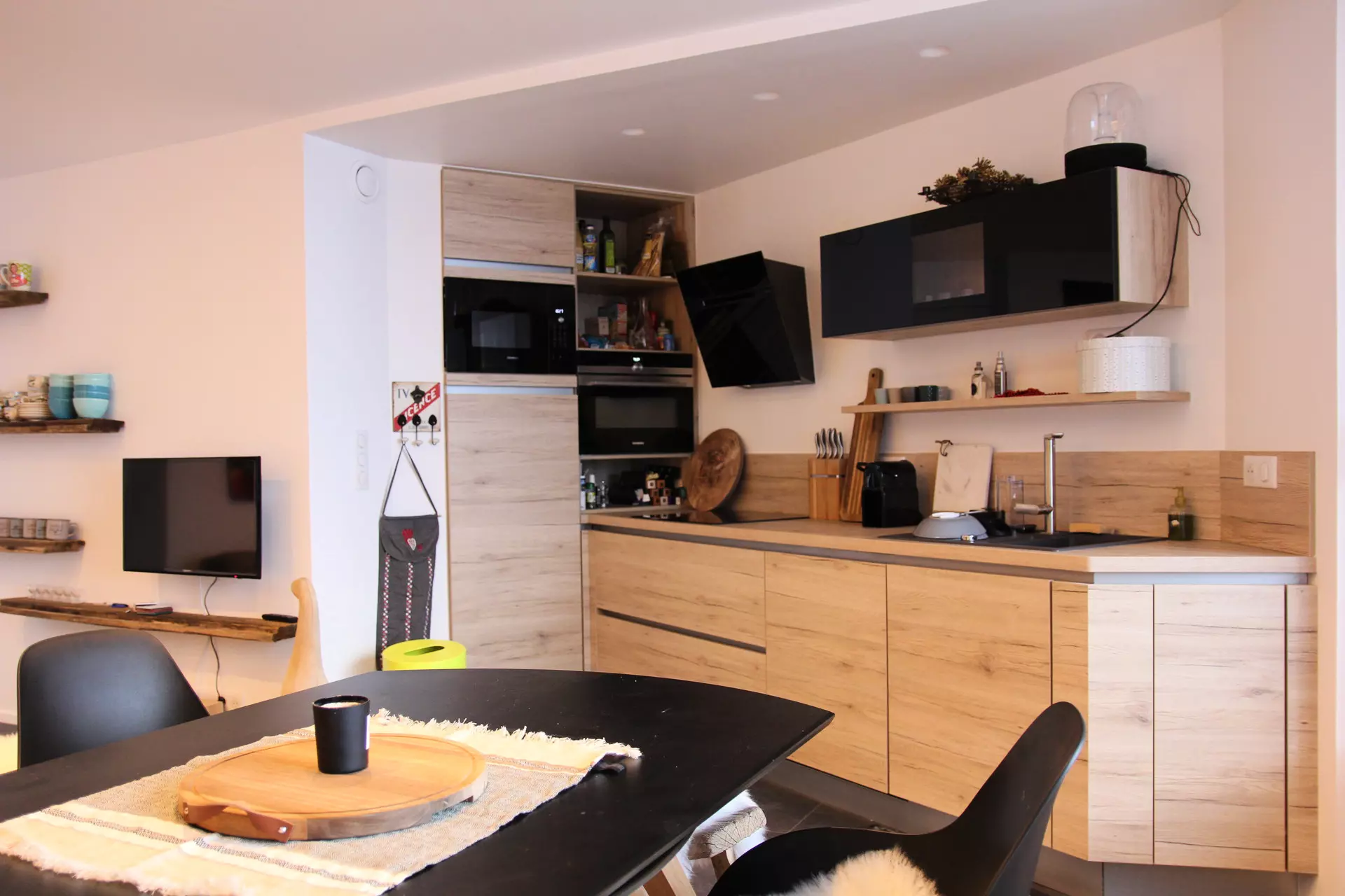Cet appartement de 55M2, entièrement rénové avec des matériaux de qualité, est au 4ème étage a un balcon orienté sud ouest avec une belle vue sur les montagnes et le village.