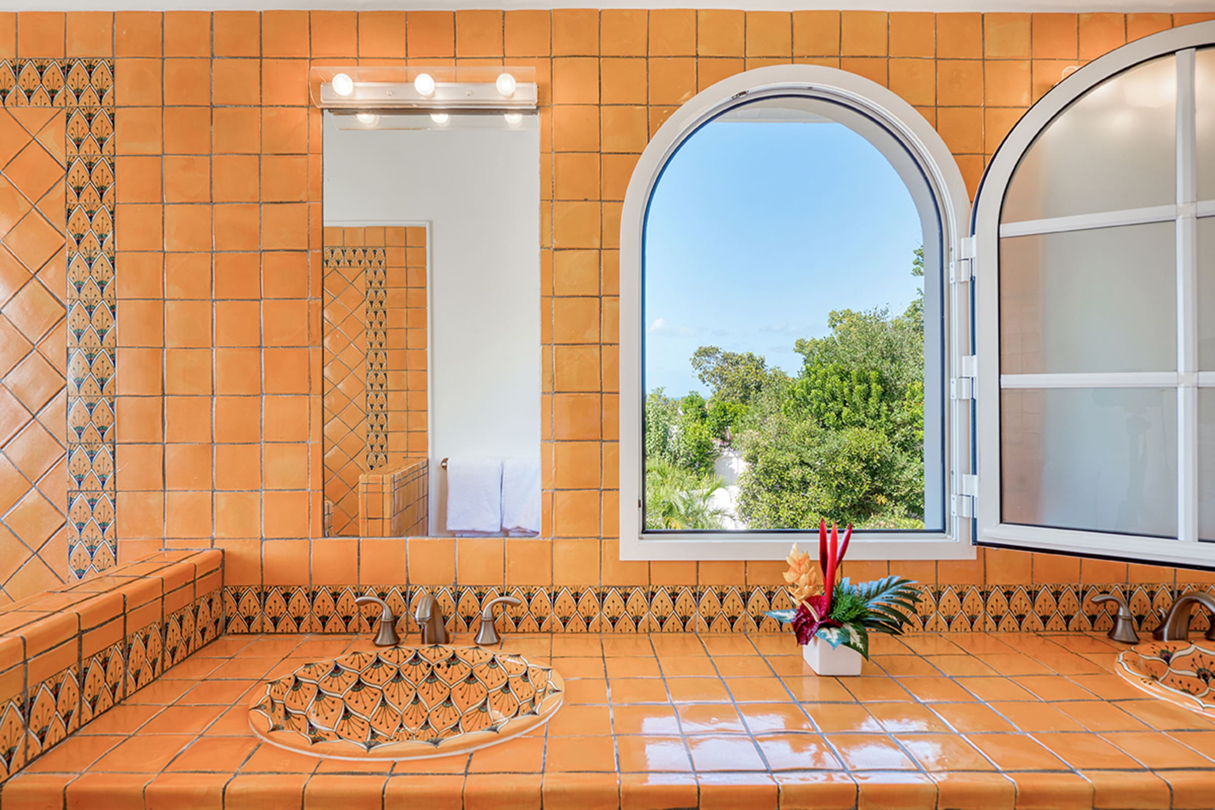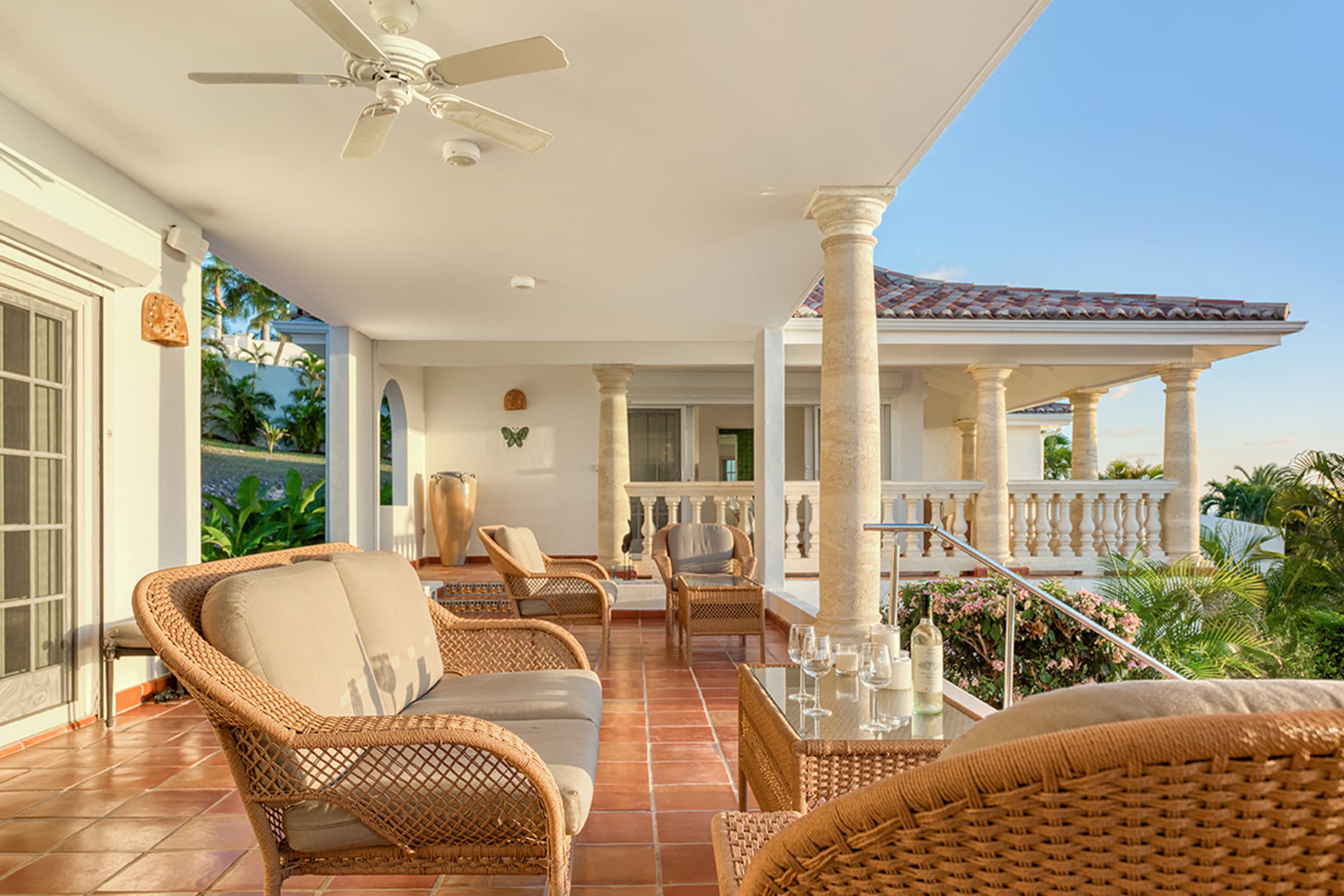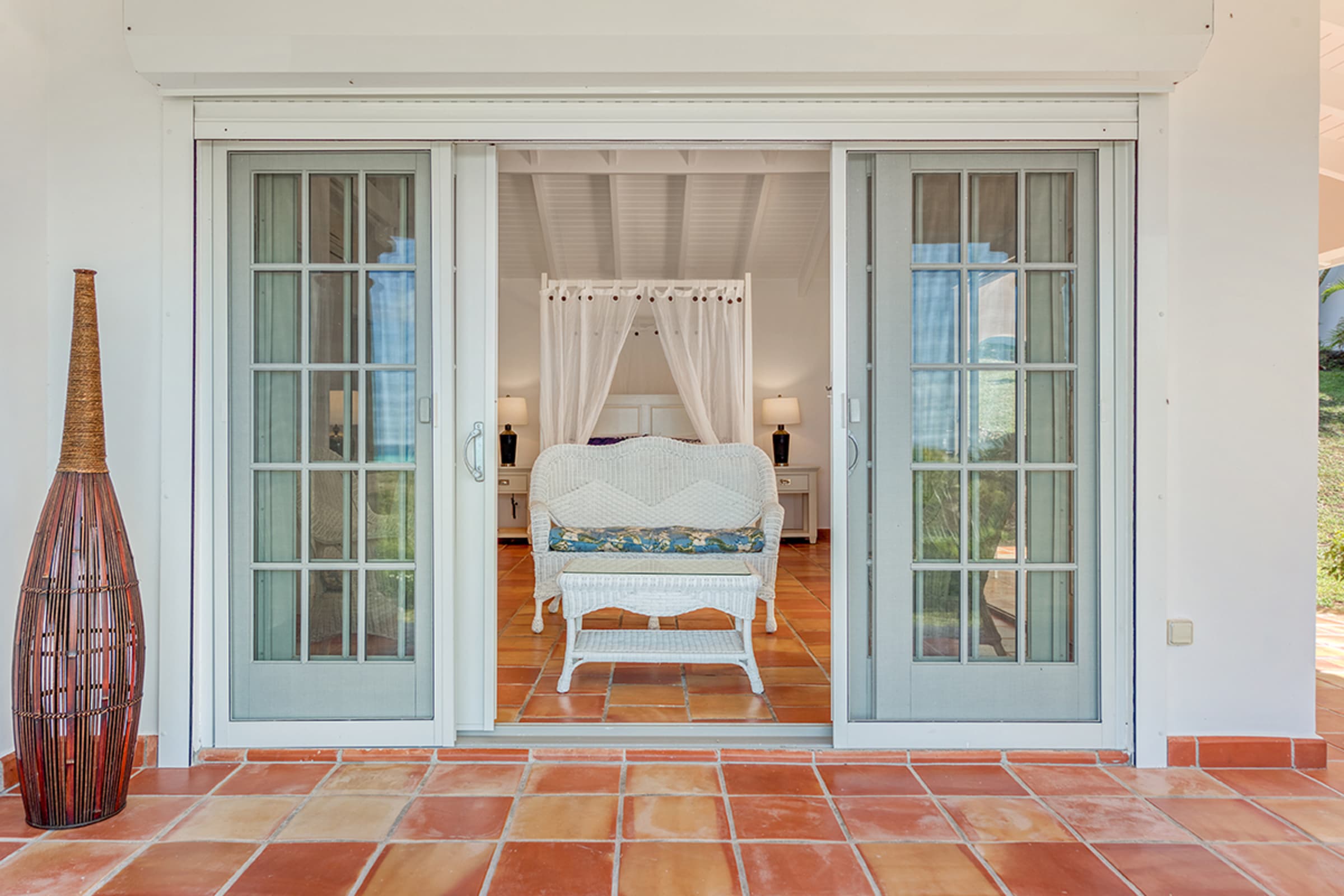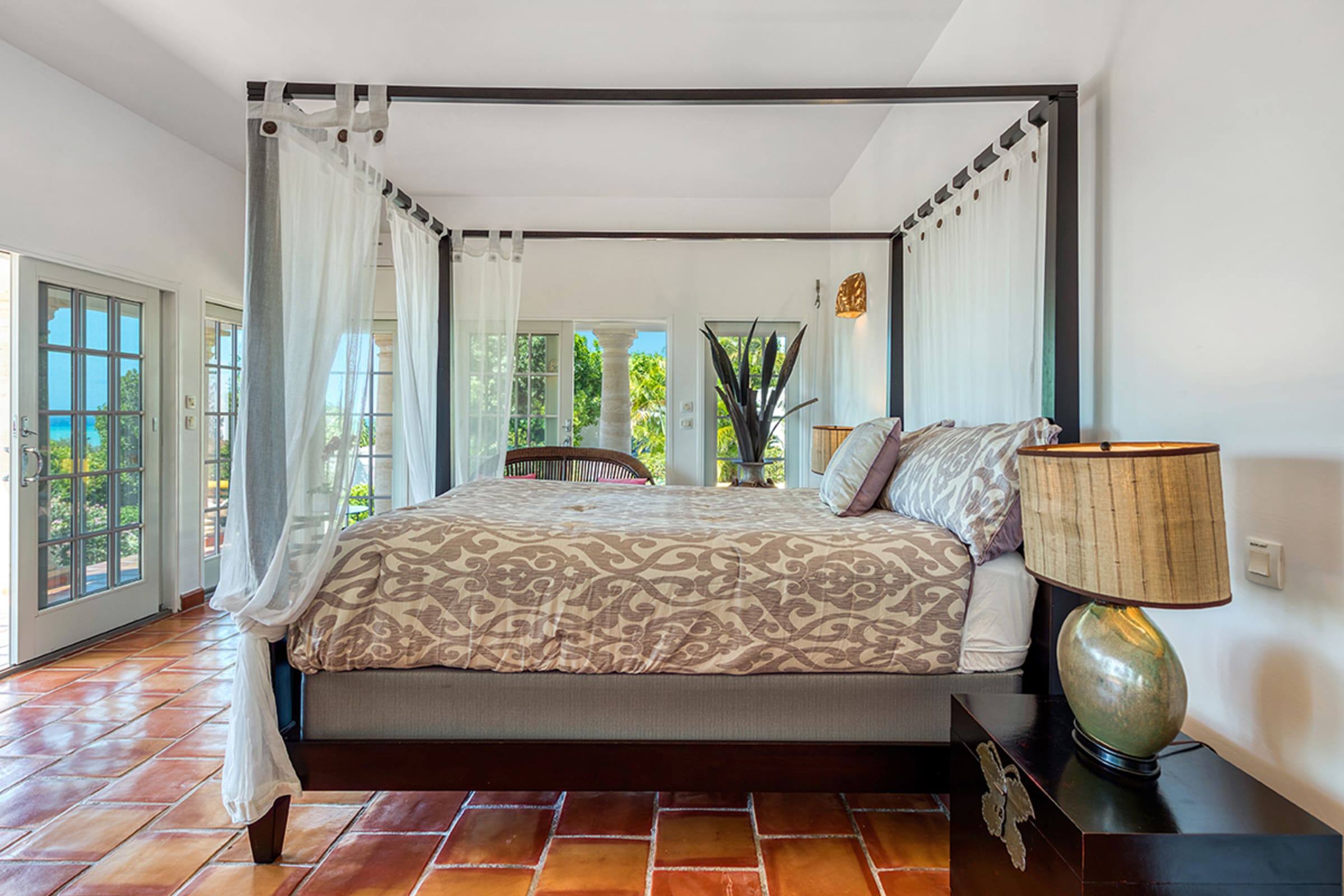 Les quatre chambres d'accès extérieur sont de taille égale et climatisées. Deux sont placés à chaque extrémité de la villa; une à l’étage supérieur et une à l’étage inférieur. Chaque chambre offre une vue sur la mer ou la piscine et a une terrasse privée. Les salles de bains attenantes sont décorées de façon unique dans des couleurs riches. Des douches doubles surdimensionnées, vous voyez l'océan.