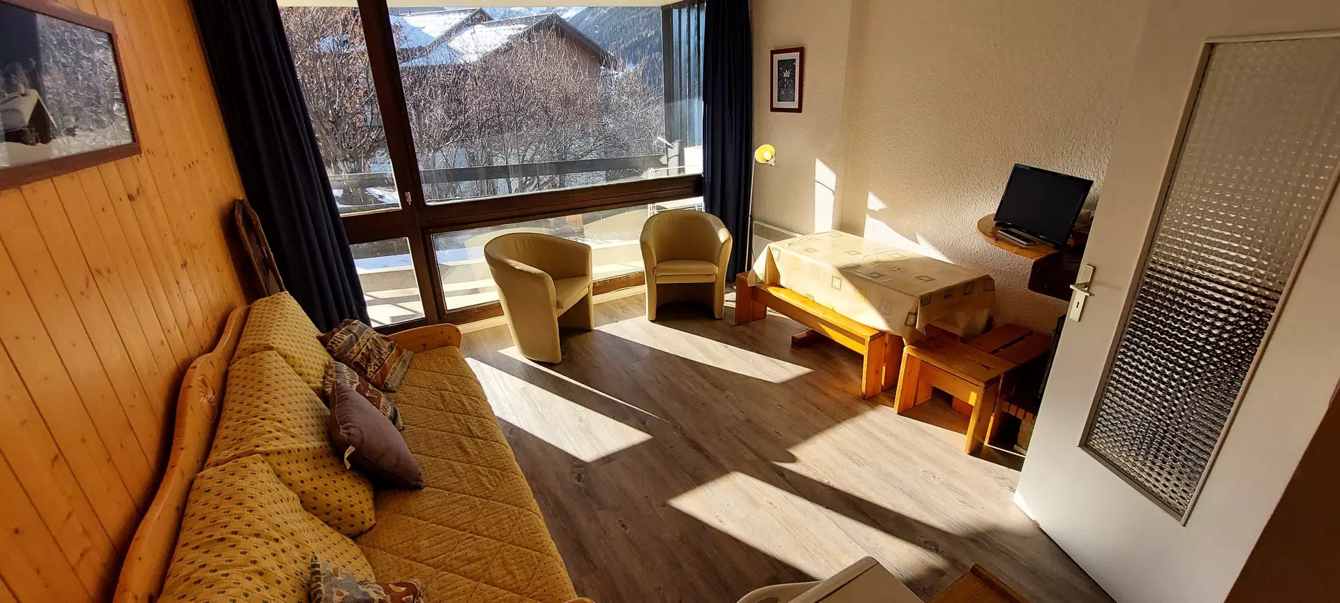 Appartement classé ** de 33m², exposé sud, situé dans un résidence proche de pistes et des commerces ainsi que du Vanoise Express (liaison avec LA PLAGNE). L'appartement est composé d'un coin nuit avec deux lits superposés, d'une chambre avec un lit double, d'une salle de bain avec baignoire et WC séparé, d'un coin cuisine ouvert sur un salon avec une banquette + lit gigogne.