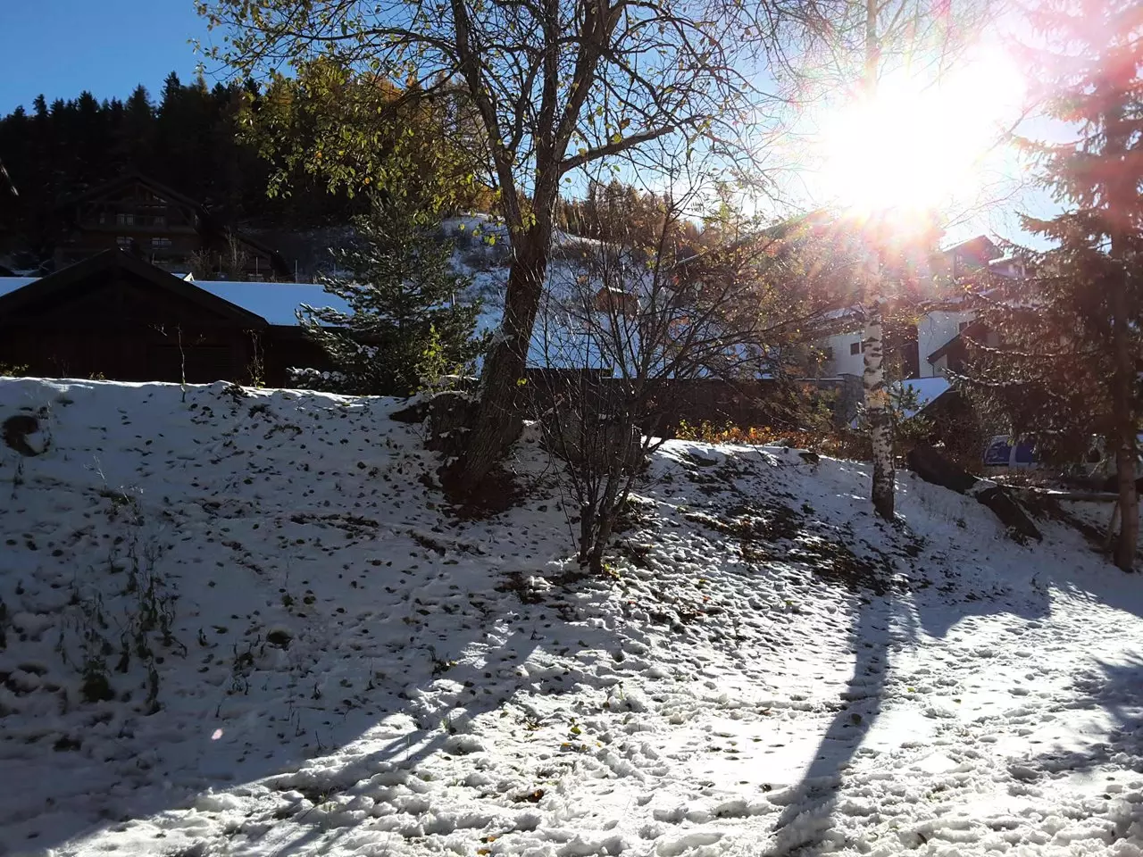 L'appartement est exposé Est et dispose aussi d'une petite terrasse de plein pied ouverte sur un espace commun, idéal pour laisser les enfants jouer dans la neige en toute sécurité.
