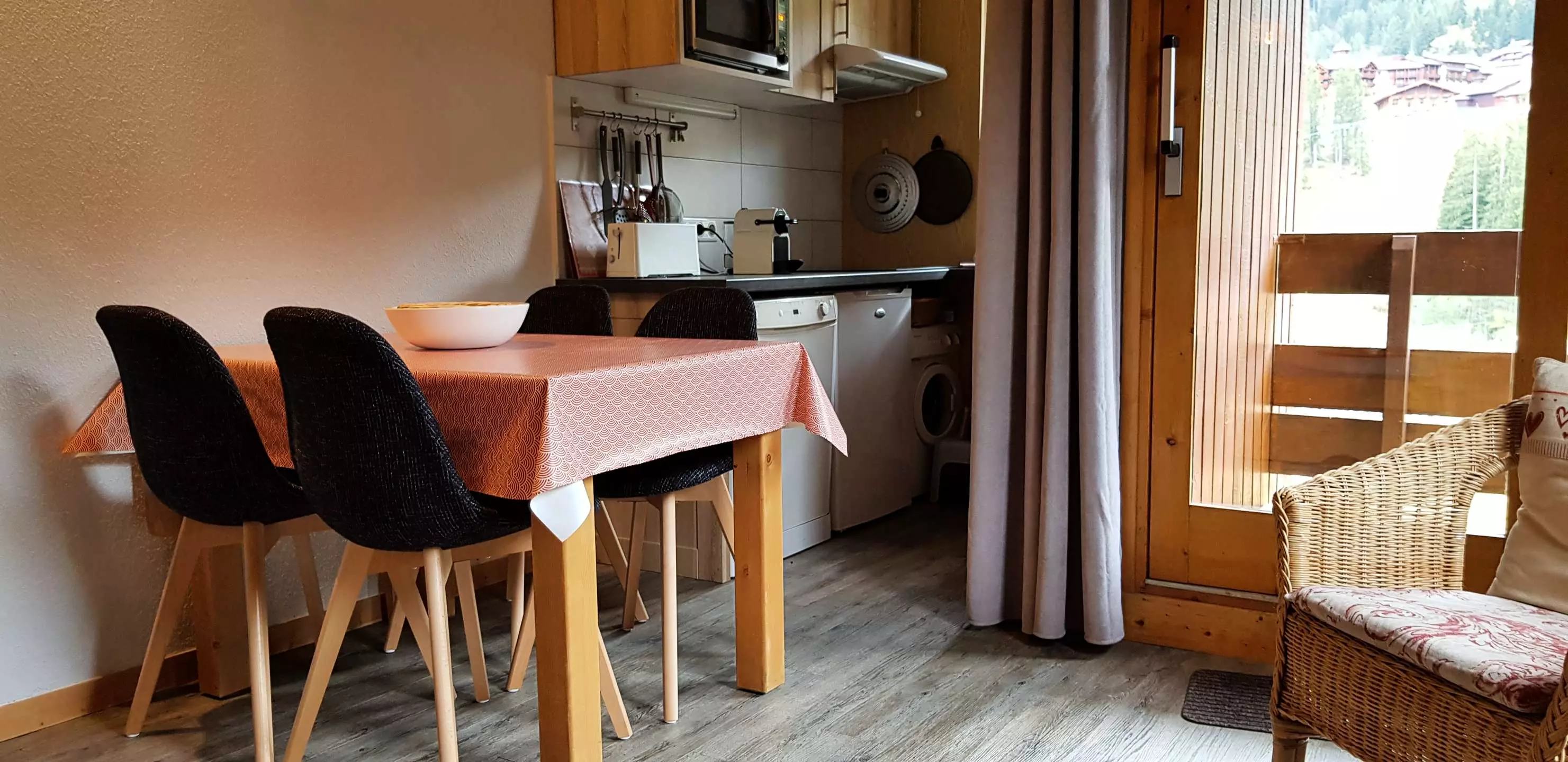 Cet appartement 2 pièces + mezzanine est prévu pour héberger 5 personnes. Il est situé sur le hameau du Mottet, en bordure de piste. Il est classé 3 étoiles en meublé de tourisme.