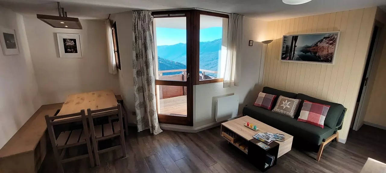 L’appartement est exposé Ouest avec balcon aménagé d'où vous pourrez profiter d'une agréable vue sur la vallée.