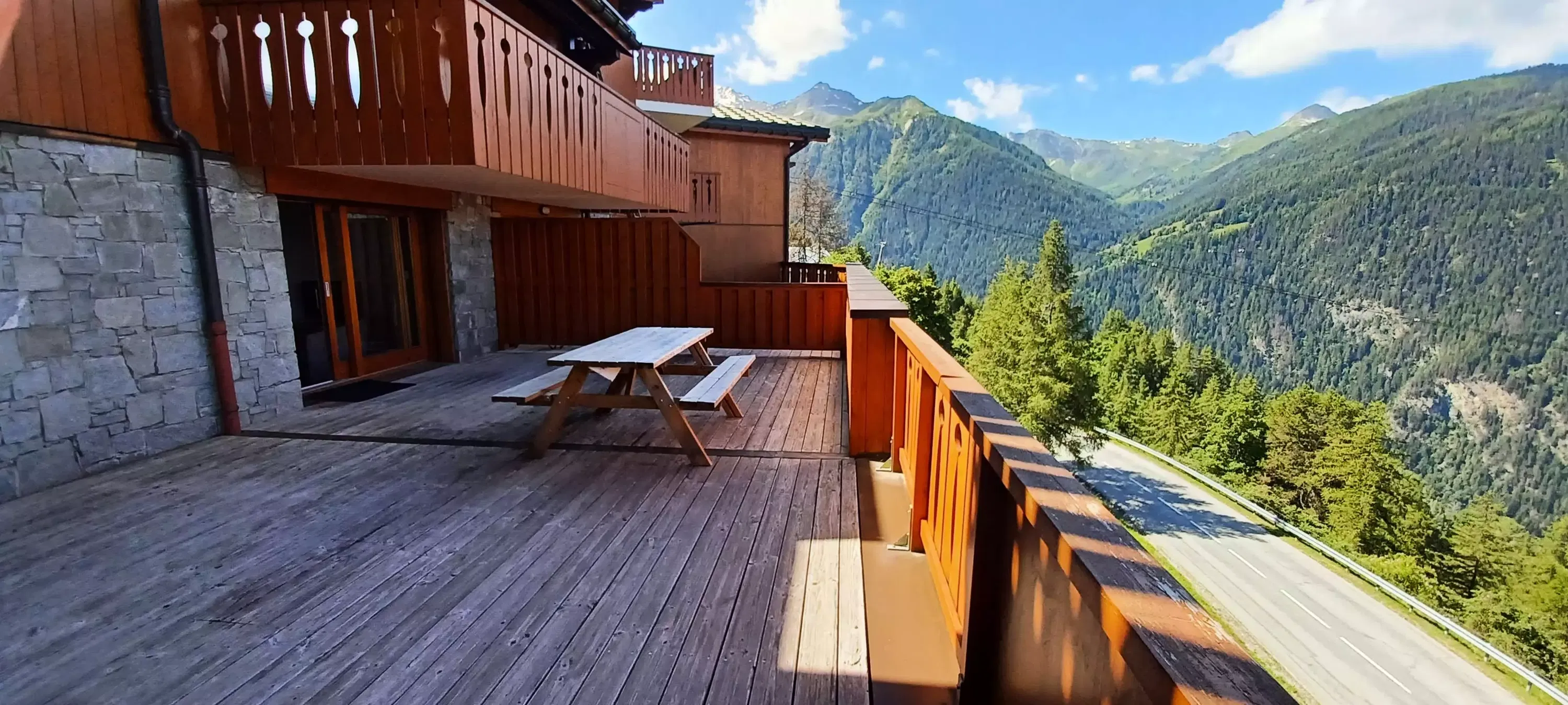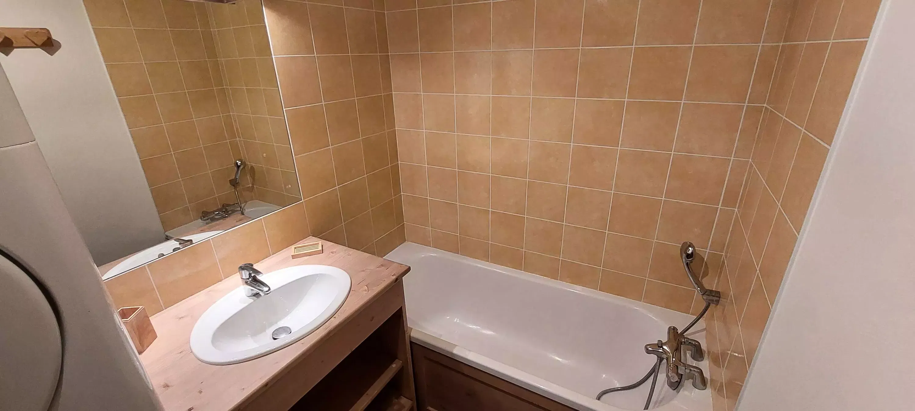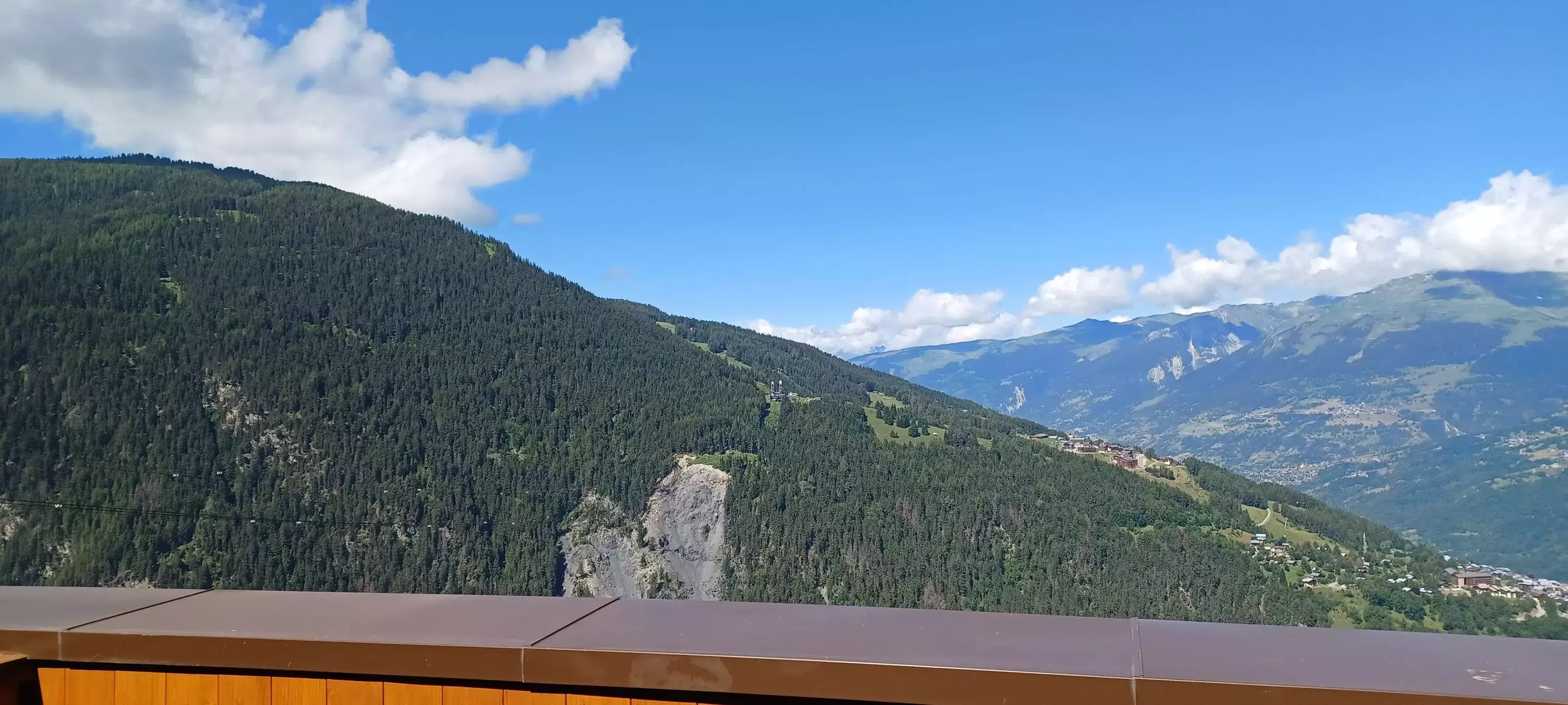 Bel appartement de 70m² composé d'une première chambre avec un ensemble de lits superposés, d'une deuxième avec lit double et d'un coin montagne avec un ensemble de lits superposés, d'une salle de bain avec lave-linge et d'une salle de douche avec WC séparé, d'une cuisine équipée et ouverte sur le séjour disposant d'un canapé convertible pour 2 personnes. Le séjour donne accès à une grande terrasse avec vue sur la vallée