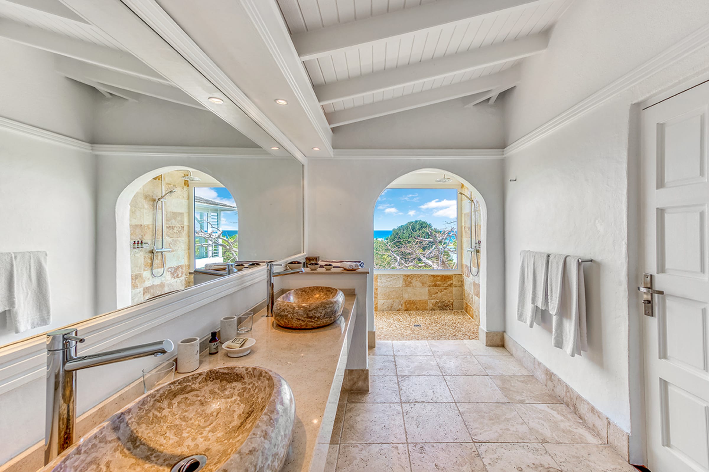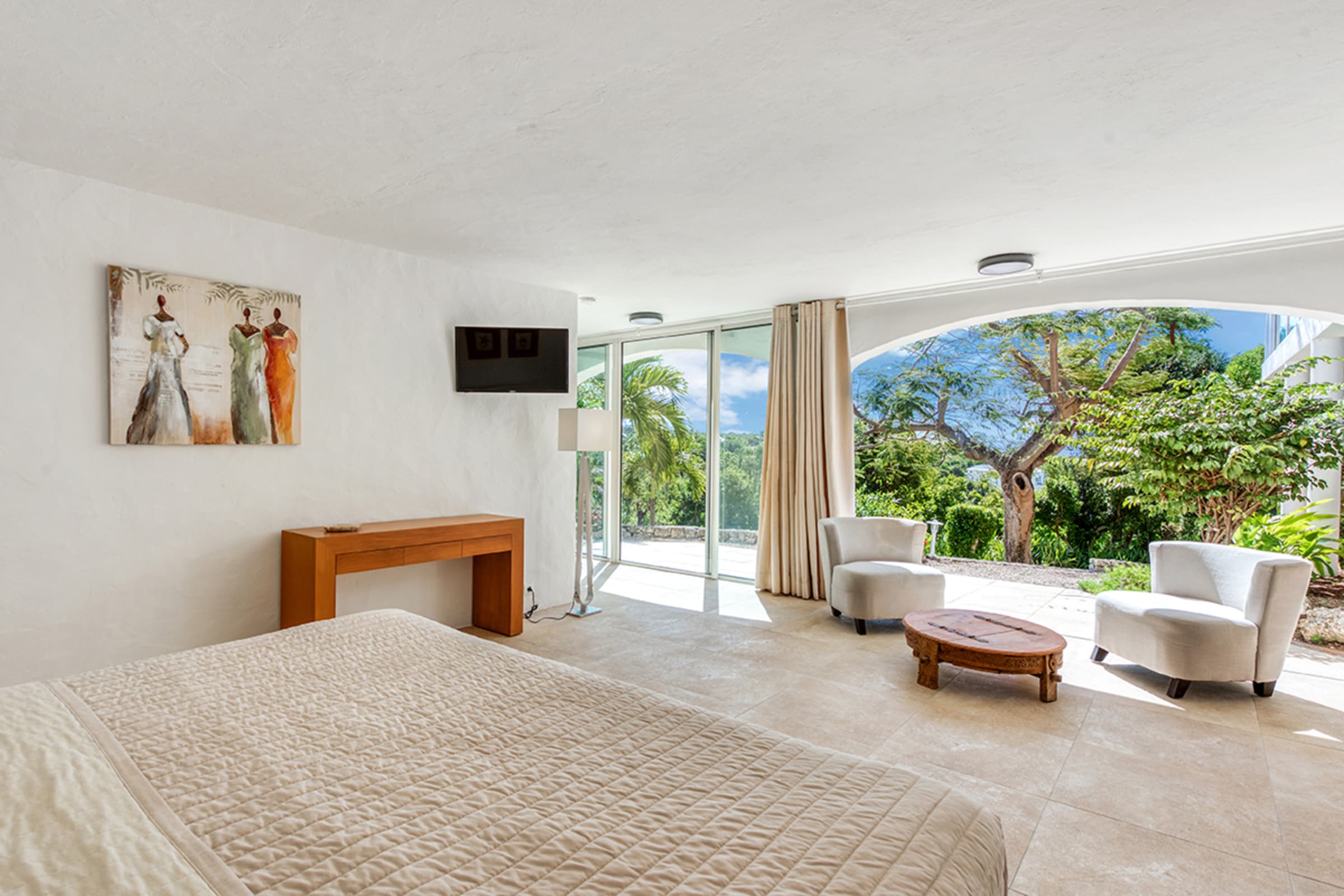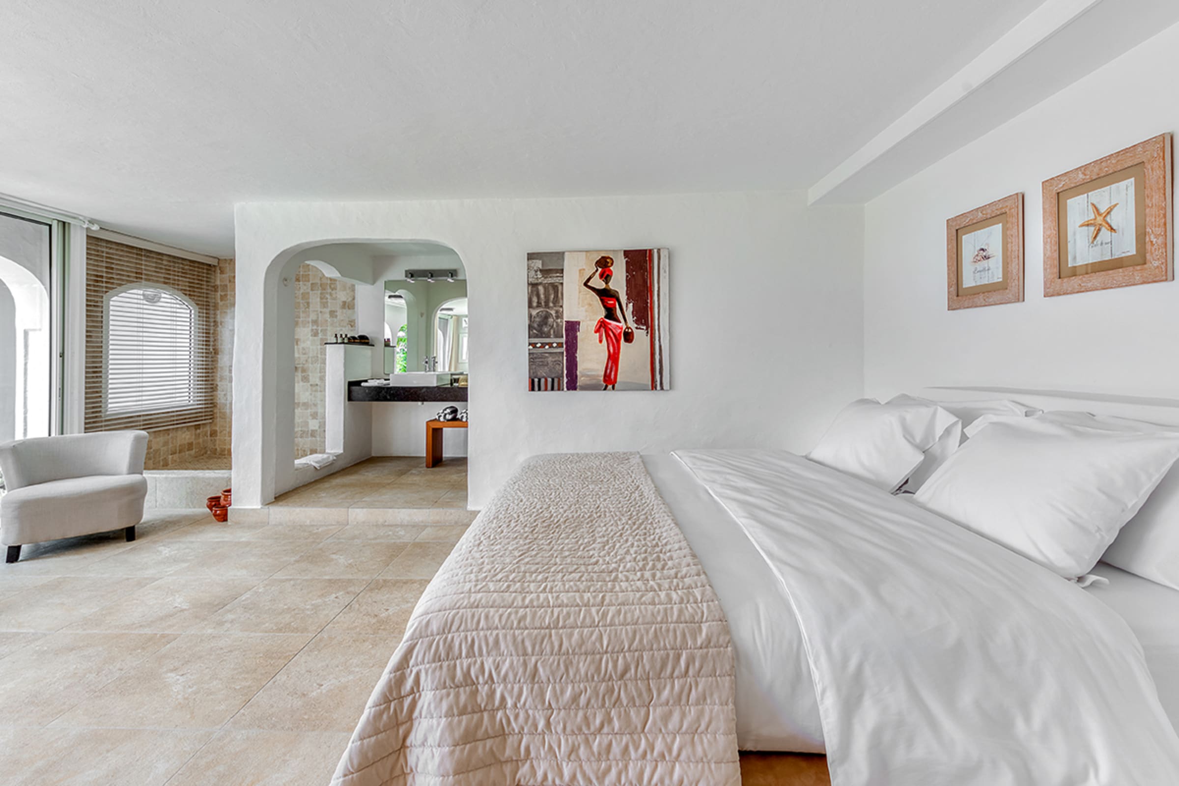 La Villa Belle Fontaine dispose de cinq chambres spacieuses, toutes de taille égale. Trois d'entre elles offrent une vue sur la mer, tandis que les deux autres donnent sur le jardin. Les salles de bains de style spa sont magnifiquement conçues et dotées d'équipements de luxe. Vous y trouverez de grandes douches à l'italienne qui donnent sur la mer ou le jardin, et l'une des salles de bains dispose même d'un patio extérieur privé.