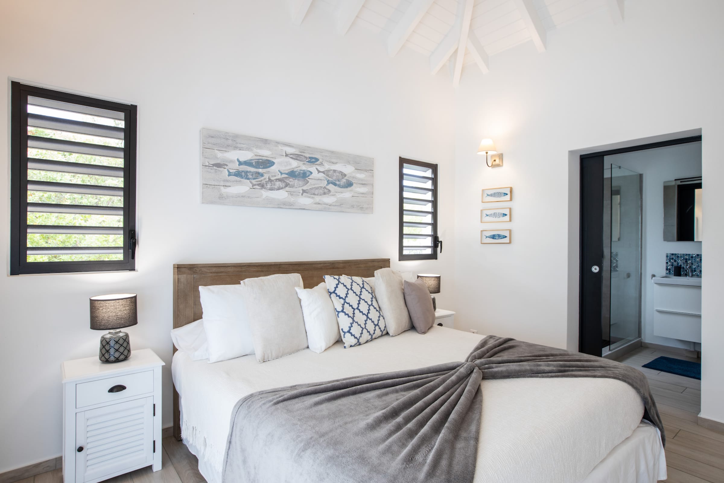 La Villa Arawak est une belle propriété située dans le quartier des Terres Basses, à quelques minutes de marche de la plage de Baie aux Prunes. Avec ses 4 chambres, c'est une option idéale pour les grands groupes ou les familles voyageant ensemble. Il est bon de savoir que la climatisation est disponible dans toutes les chambres, ce qui garantit un séjour confortable même par temps très chaud.