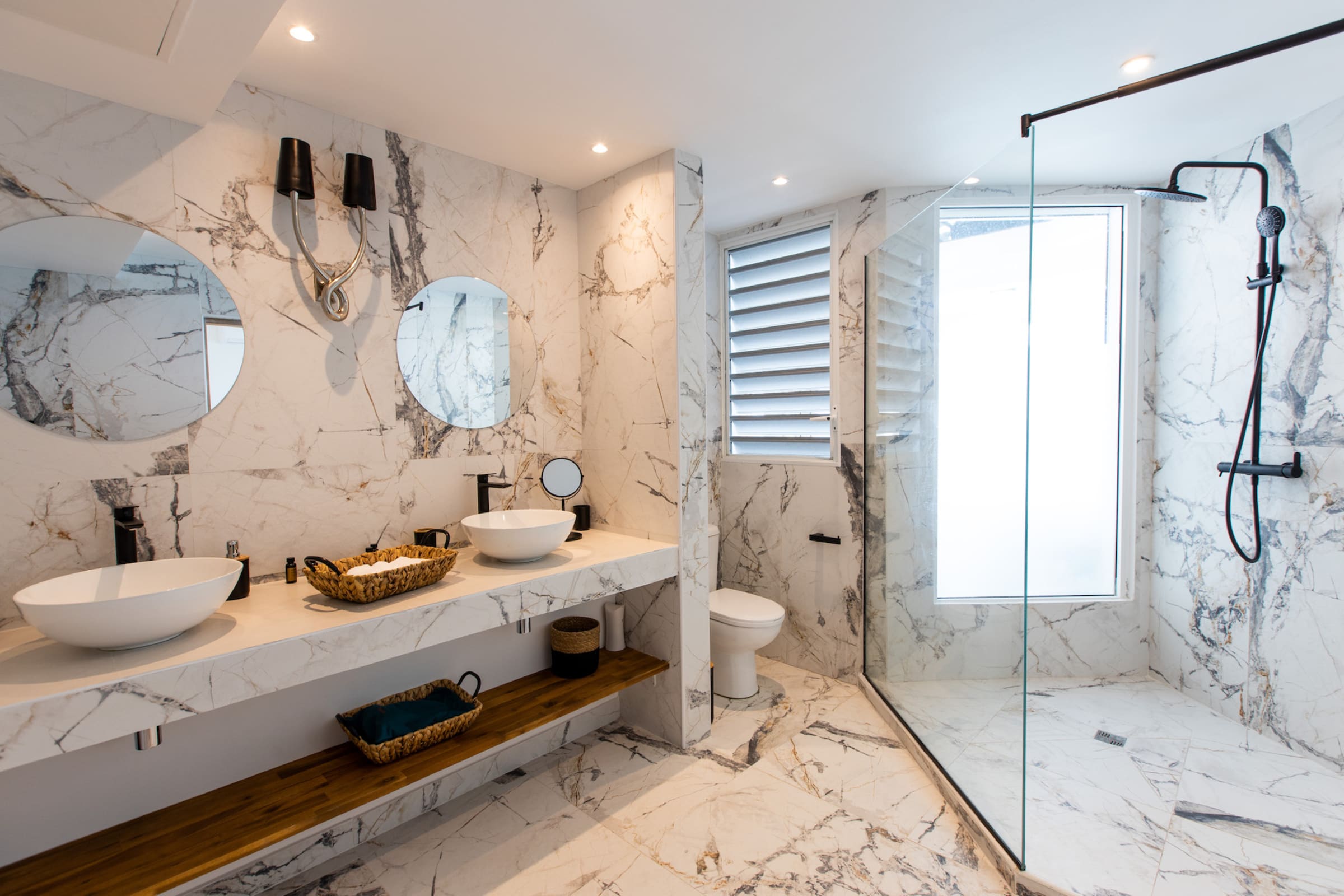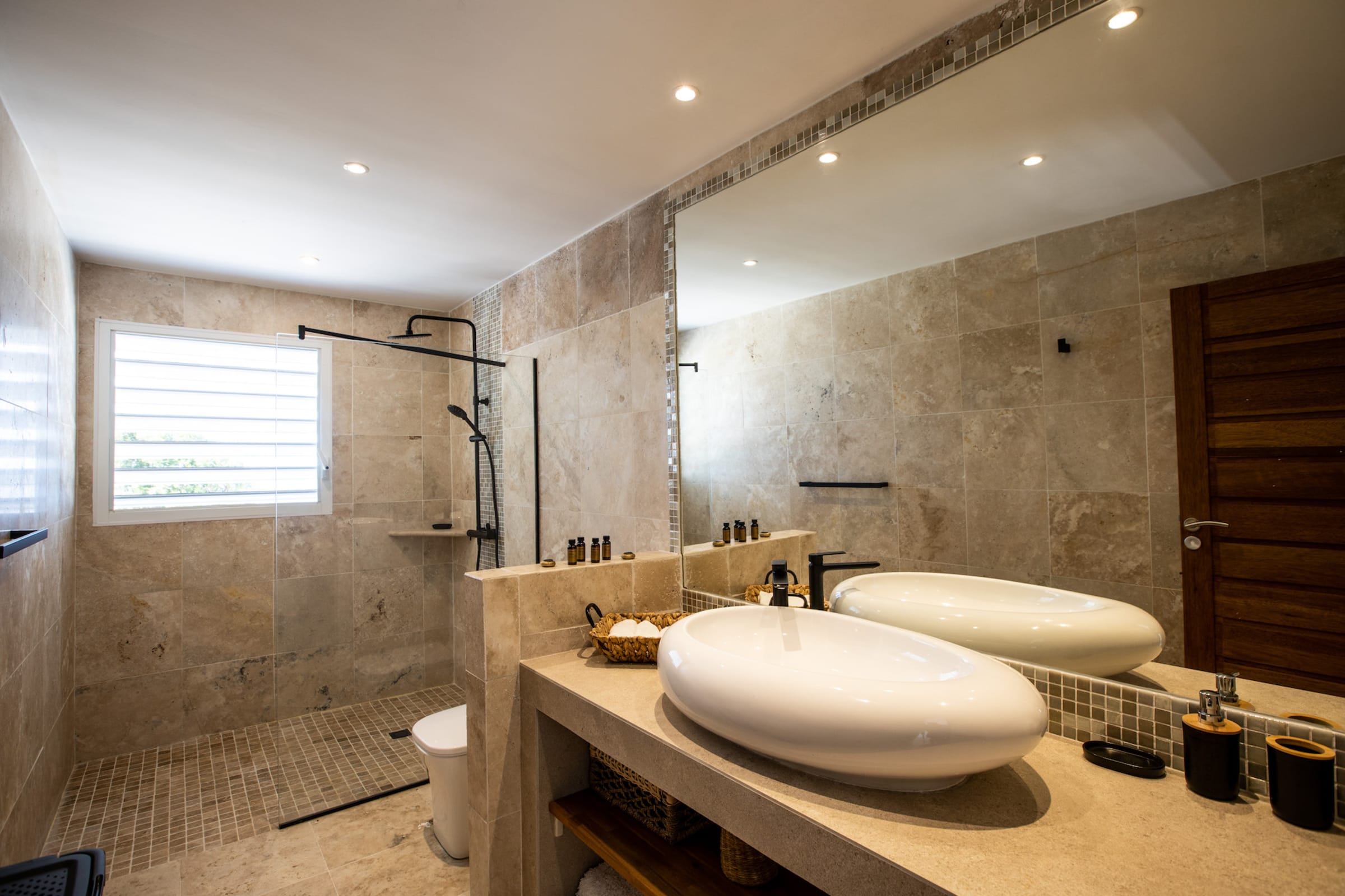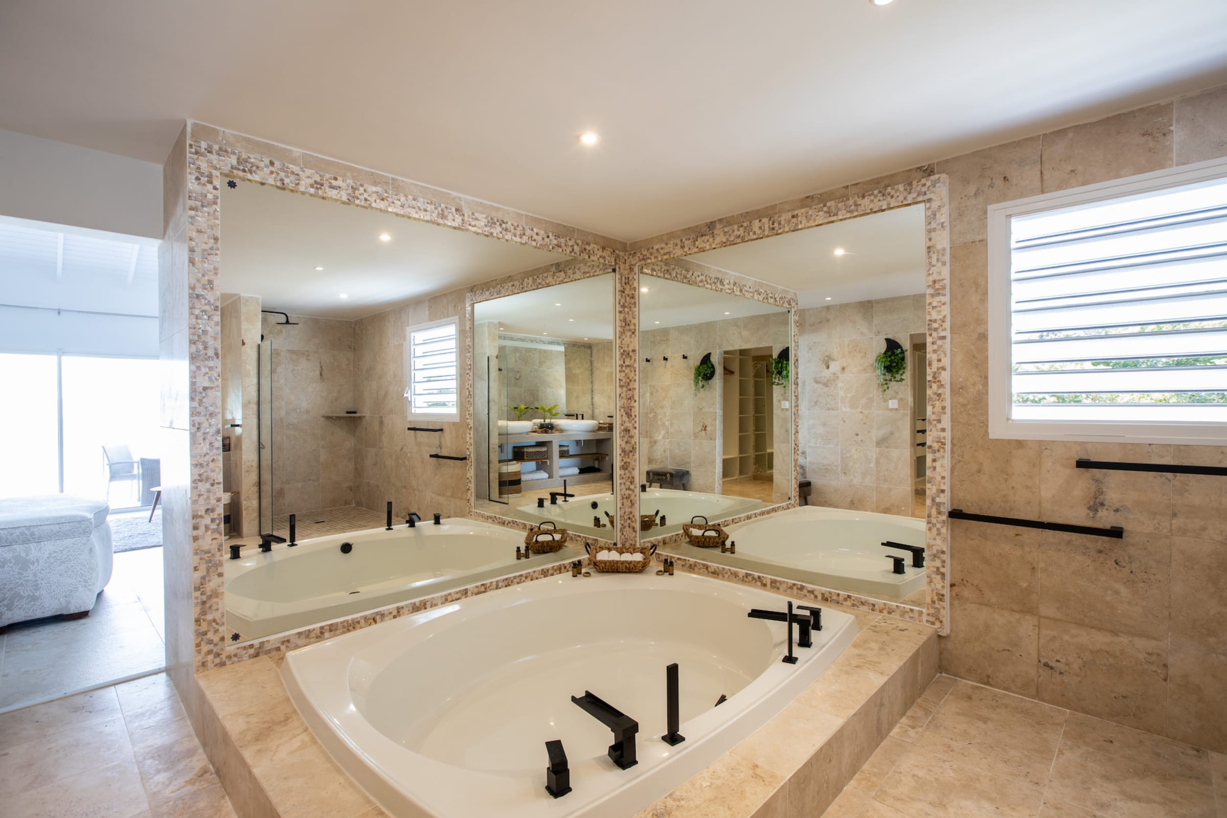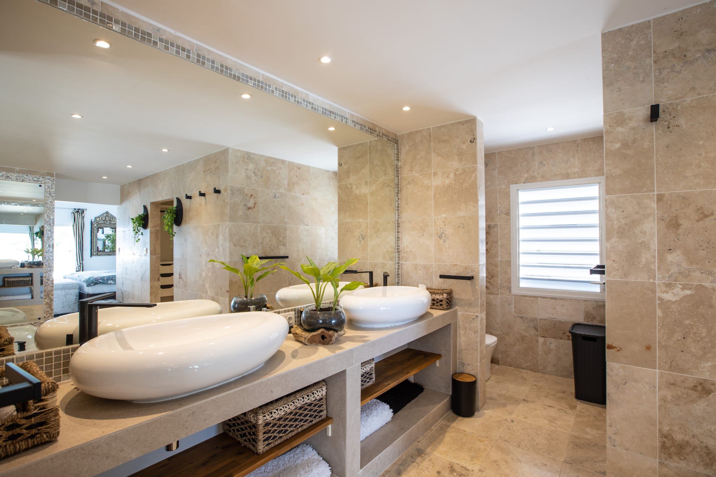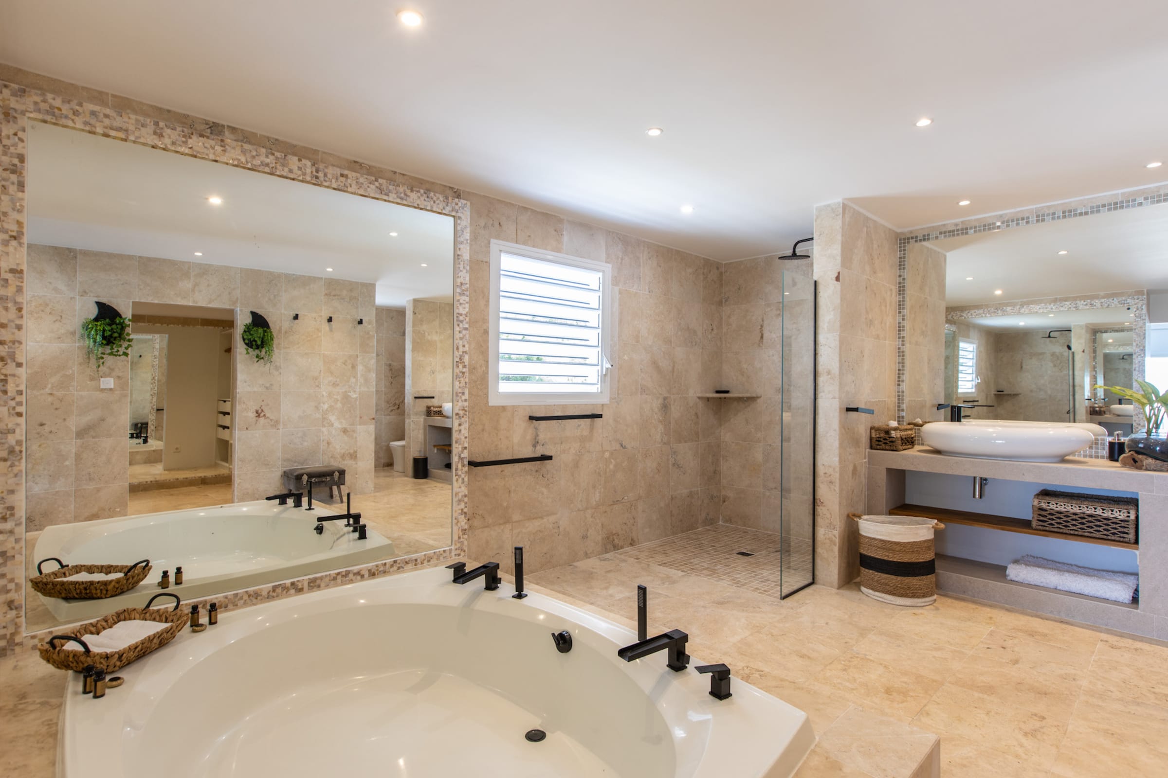 Cette villa dispose de 6 grandes chambres avec 6 salles de bains attenantes. Au niveau principal, 3 chambres ont accès à la piscine principale et à la terrasse principale.