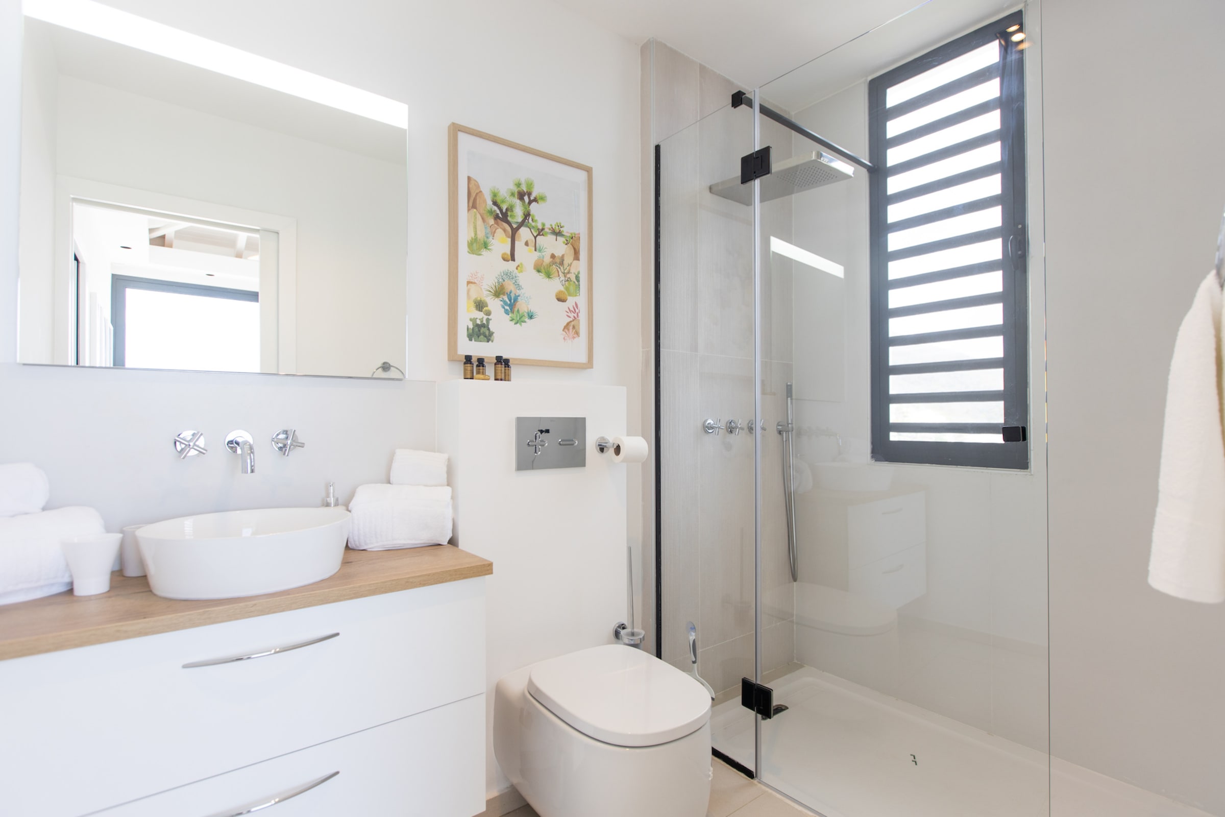 À l'intérieur de la villa, vous découvrirez 4 chambres joliment décorées, accessibles depuis l'espace intérieur. Chacune des chambres est entièrement climatisée et dispose d'une salle de bains attenante, garantissant ainsi intimité et confort. Trois d'entre elles offrent une vue panoramique sur la piscine et l'océan. Tandis que la quatrième chambre donne une vue sur le jardin et dispose de sa propre terrasse privée où vous pourrez vous retirer pour profiter d'un moment de quiétude.