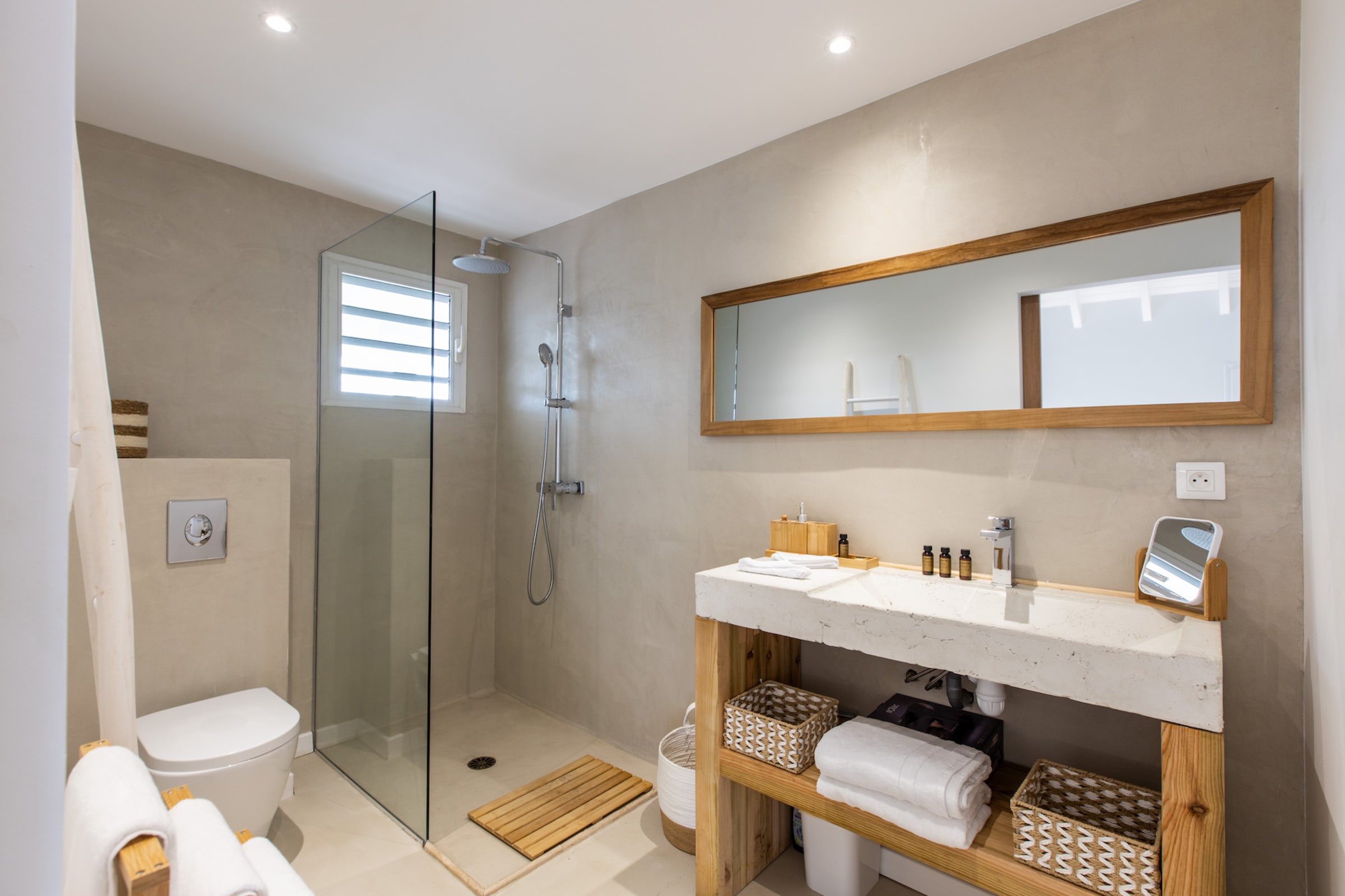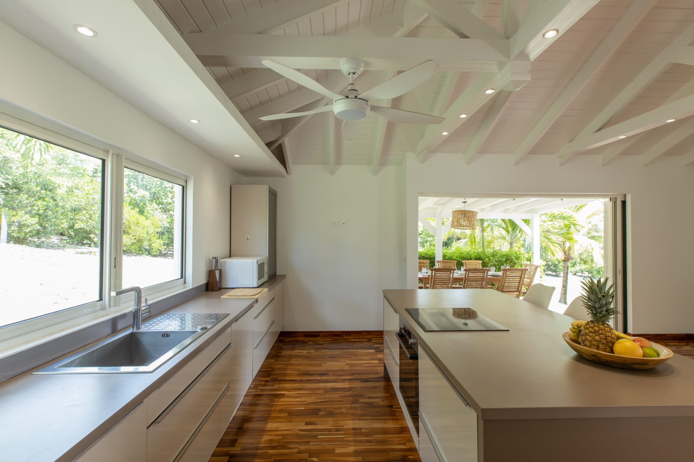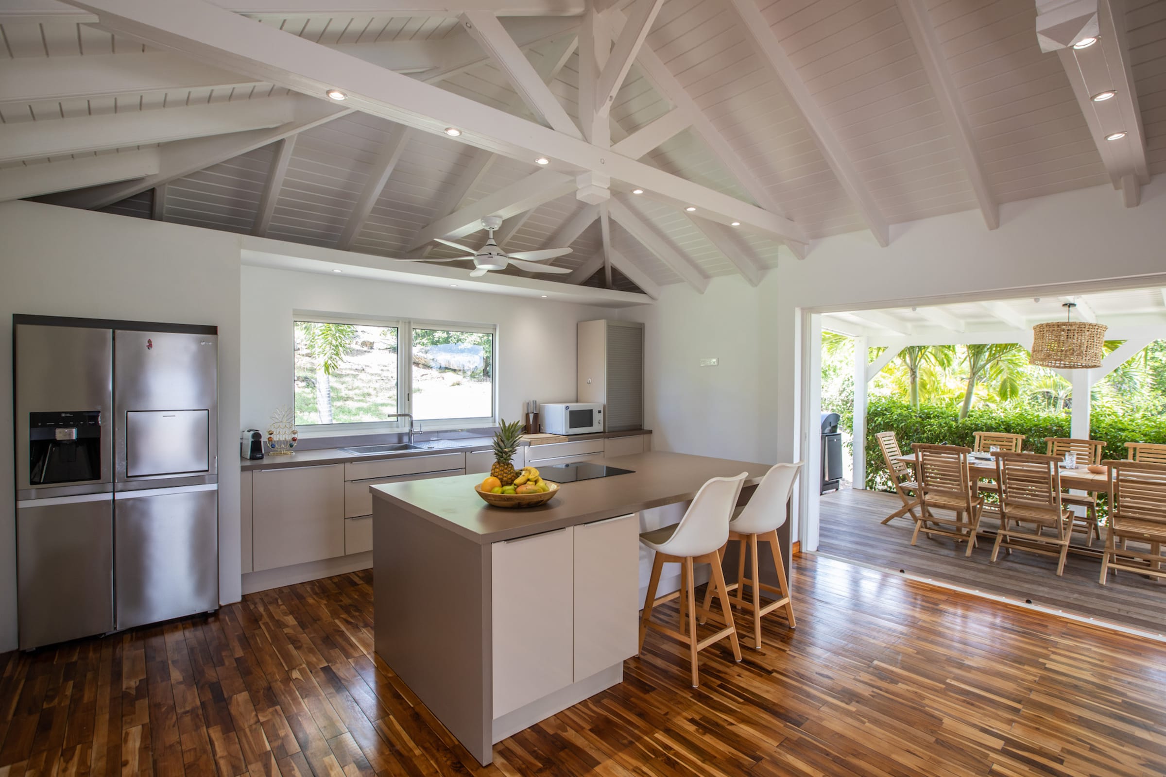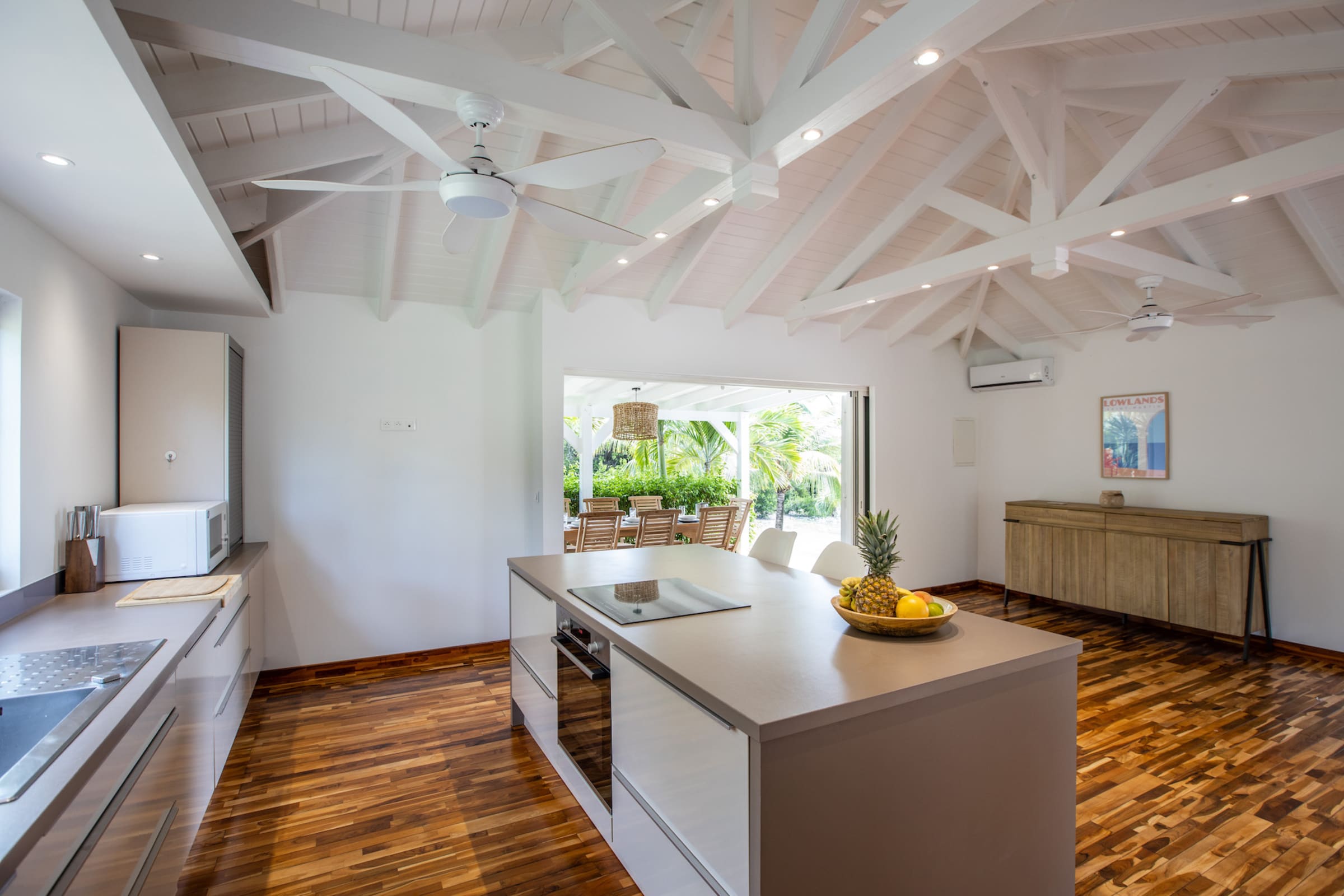 En entrant dans la Villa Coco Paillette, les clients sont immédiatement frappés par le design contemporain chic caribéen de la villa. Les intérieurs ont été méticuleusement conçus pour s'harmoniser avec la beauté naturelle des environs. Des plafonds voûtés, un aménagement ouvert et de grandes portes vitrées mélangent harmonieusement l'intérieur et l'extérieur, invitant les douces brises de l'île et la lumière du soleil à pénétrer dans chaque recoin.
