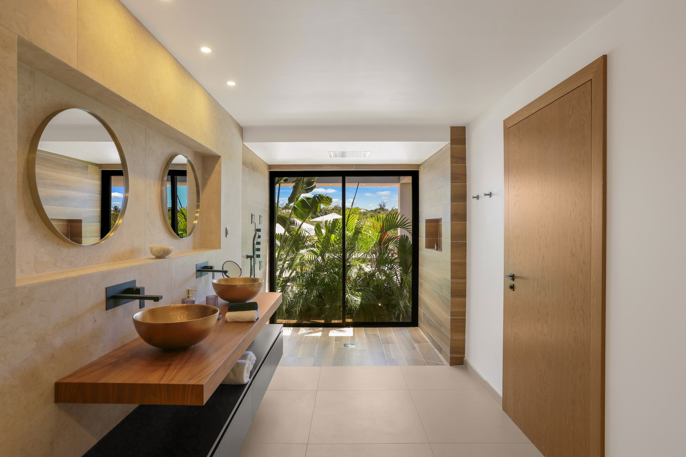 Dès votre arrivée, vous serez charmé par les volumes généreux et les équipements haut de gamme pensés pour votre bien-être. Entièrement climatisée, la villa dispose d’un vaste salon baigné de lumière, d’une cuisine équipée de toutes les commodités modernes, et d’une terrasse spacieuse avec un bar extérieur—idéal pour des apéritifs au coucher du soleil. La piscine chauffée, entourée de tables et de parasols, est une véritable invitation à la détente face à l’horizon. Veuillez noter, qu'elle est chauffée du 15 octobre au 15 avril, en dehors de cette période le chauffage de la piscine est en option, moyennant un supplément de $350 par semaine.