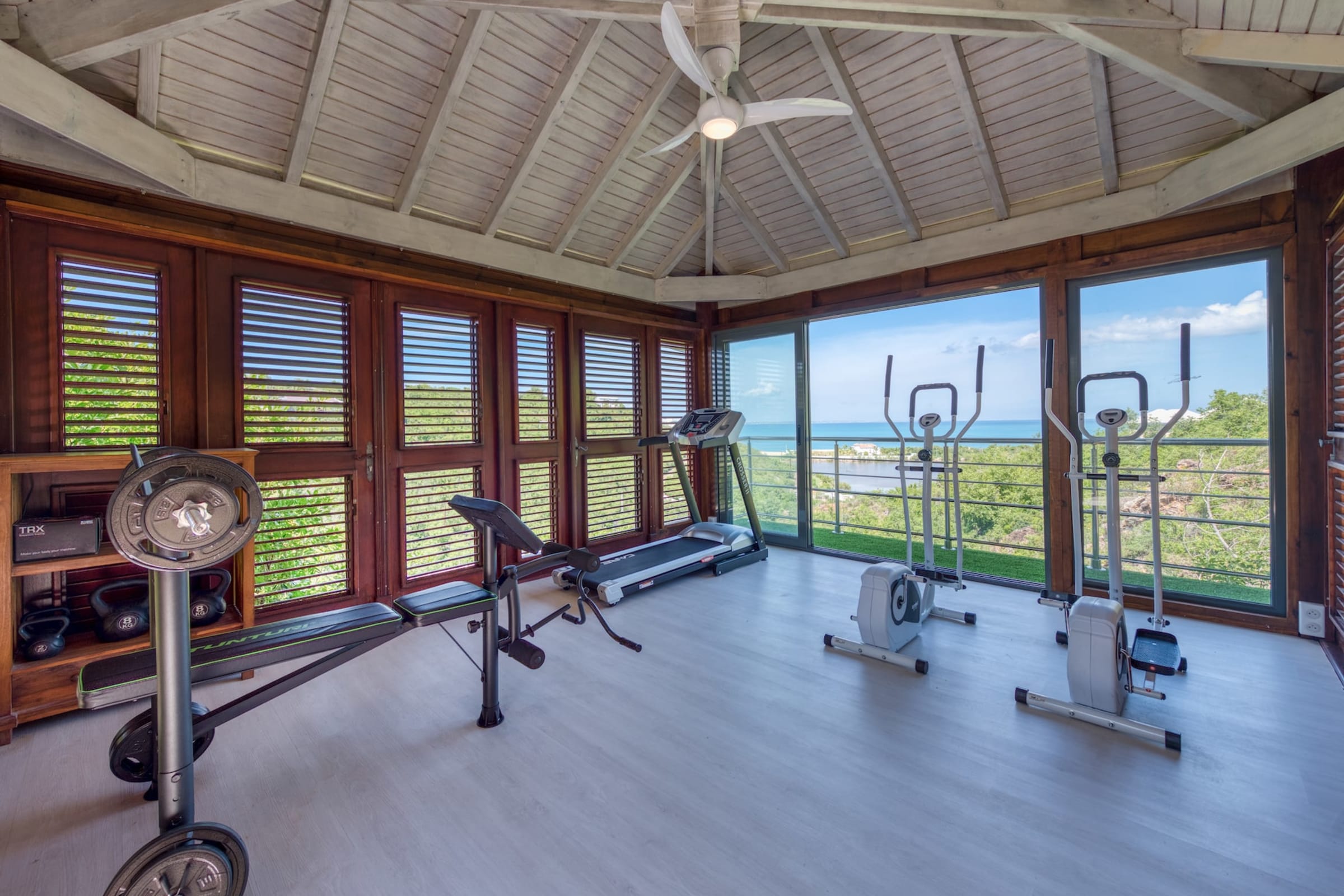 La disposition des chambres, 5 au niveau supérieur et 2 au niveau inférieur, offre une certaine flexibilité pour les groupes voyageant ensemble. La salle de sport, qui offre une vue imprenable, est un atout pour les personnes qui souhaitent rester actives pendant leurs vacances.
