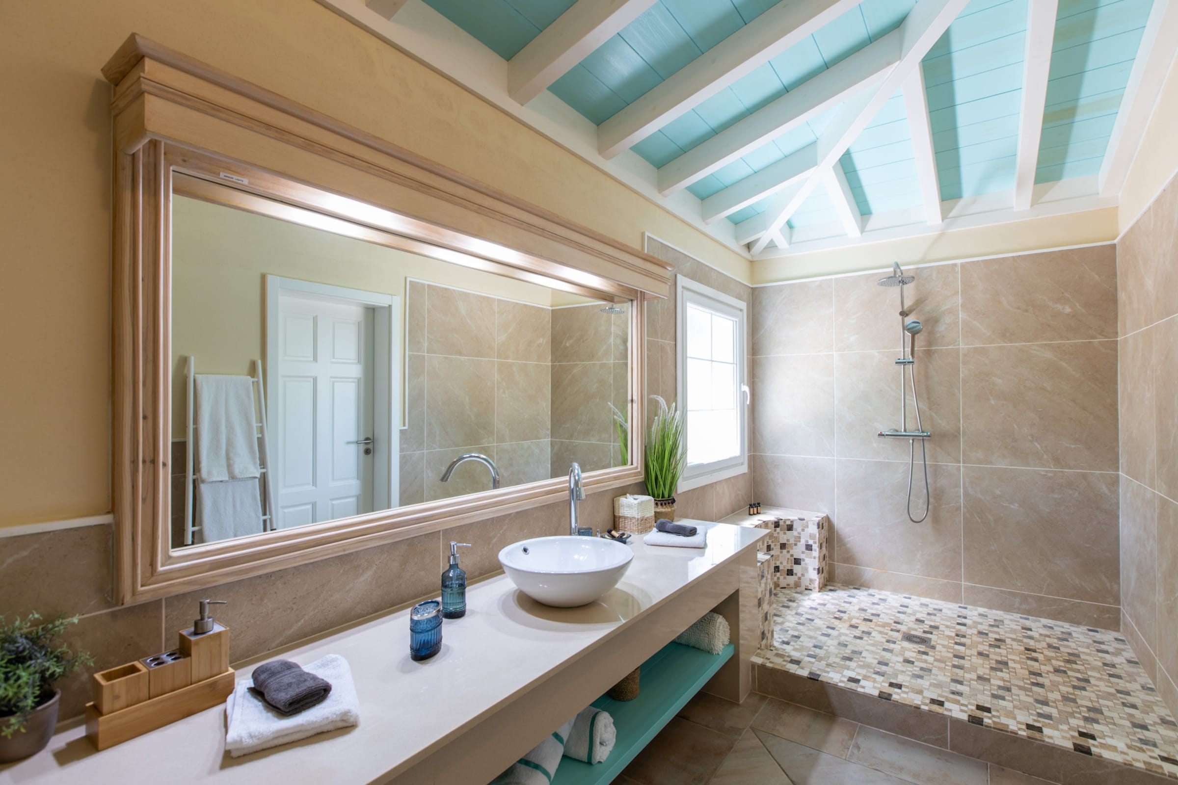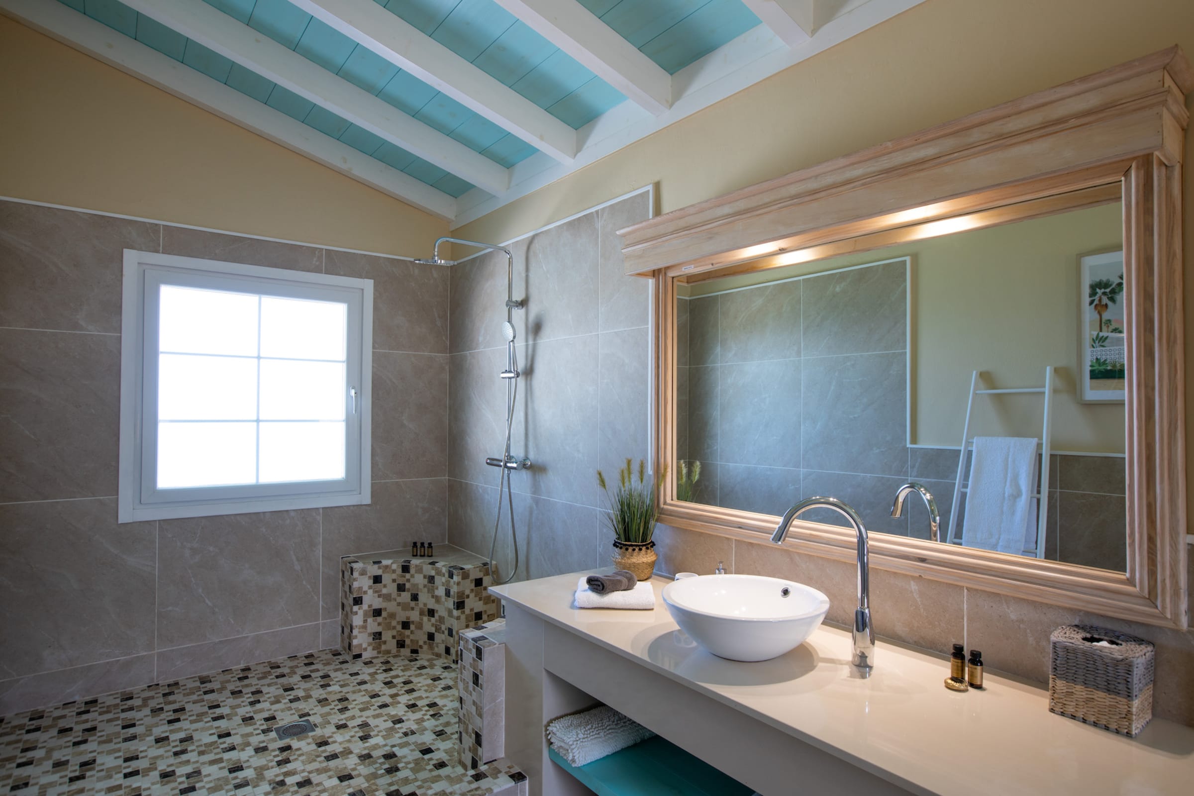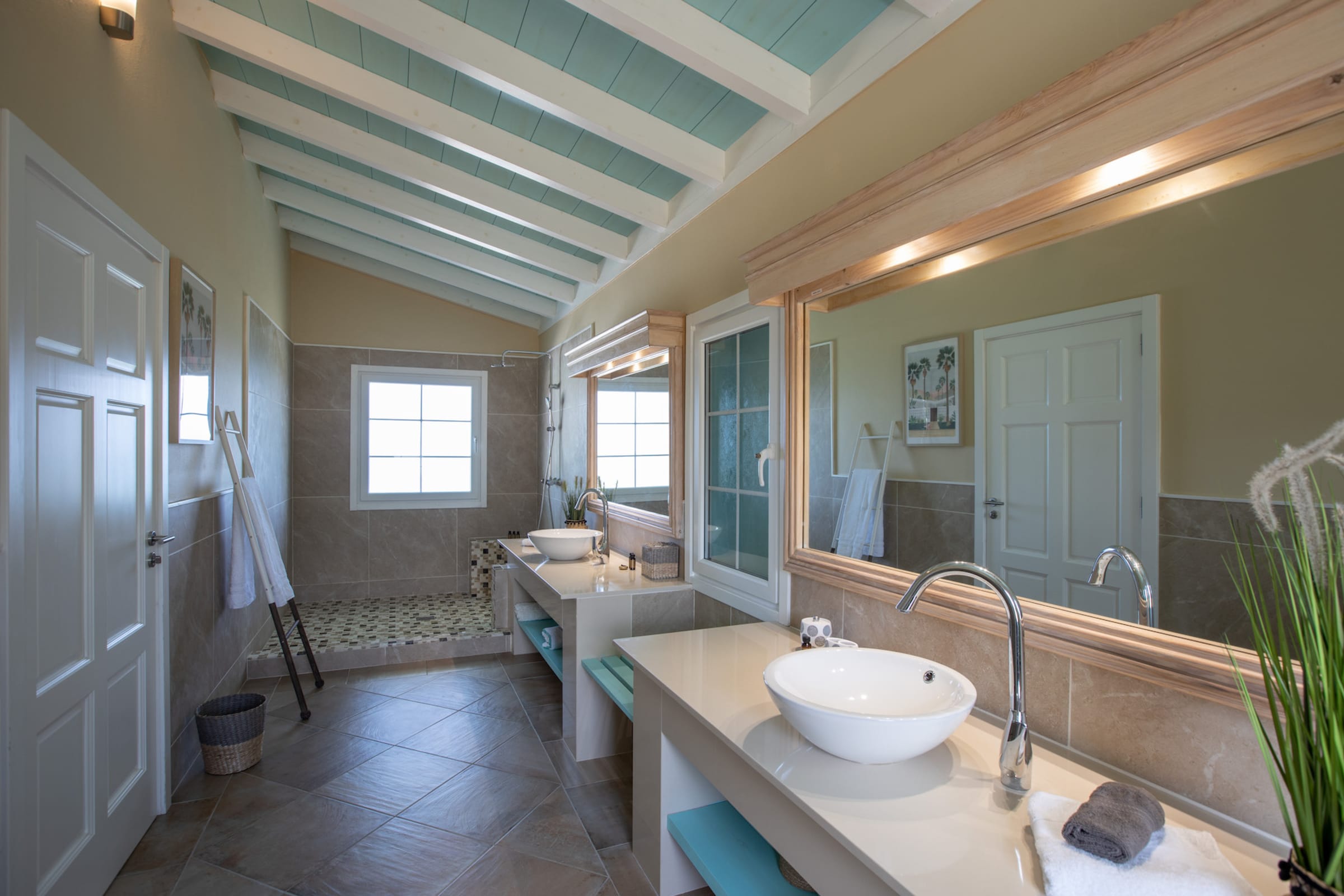 À l'intérieur de la villa, les clients trouveront un espace de vie spacieux et élégamment décoré, avec une atmosphère accueillante grâce à un décor et un mobilier aux couleurs chaudes, et des équipements modernes. La villa comprend quatre chambres, chacune avec sa propre salle de bains, ce qui offre beaucoup d'intimité et de confort aux clients. Les chambres sont climatisées et disposent d'une literie et de draps de qualité, garantissant un sommeil réparateur. Trois des chambres, dont la principale, sont situées au niveau principal et donnent accès à la piscine et à la terrasse. La quatrième chambre se trouve au niveau inférieur, accessible depuis l'extérieur, et offre un peu plus d'intimité. C'est l'option idéale pour ceux qui préfèrent être un peu plus à l'écart des espaces de vie principaux de la villa.