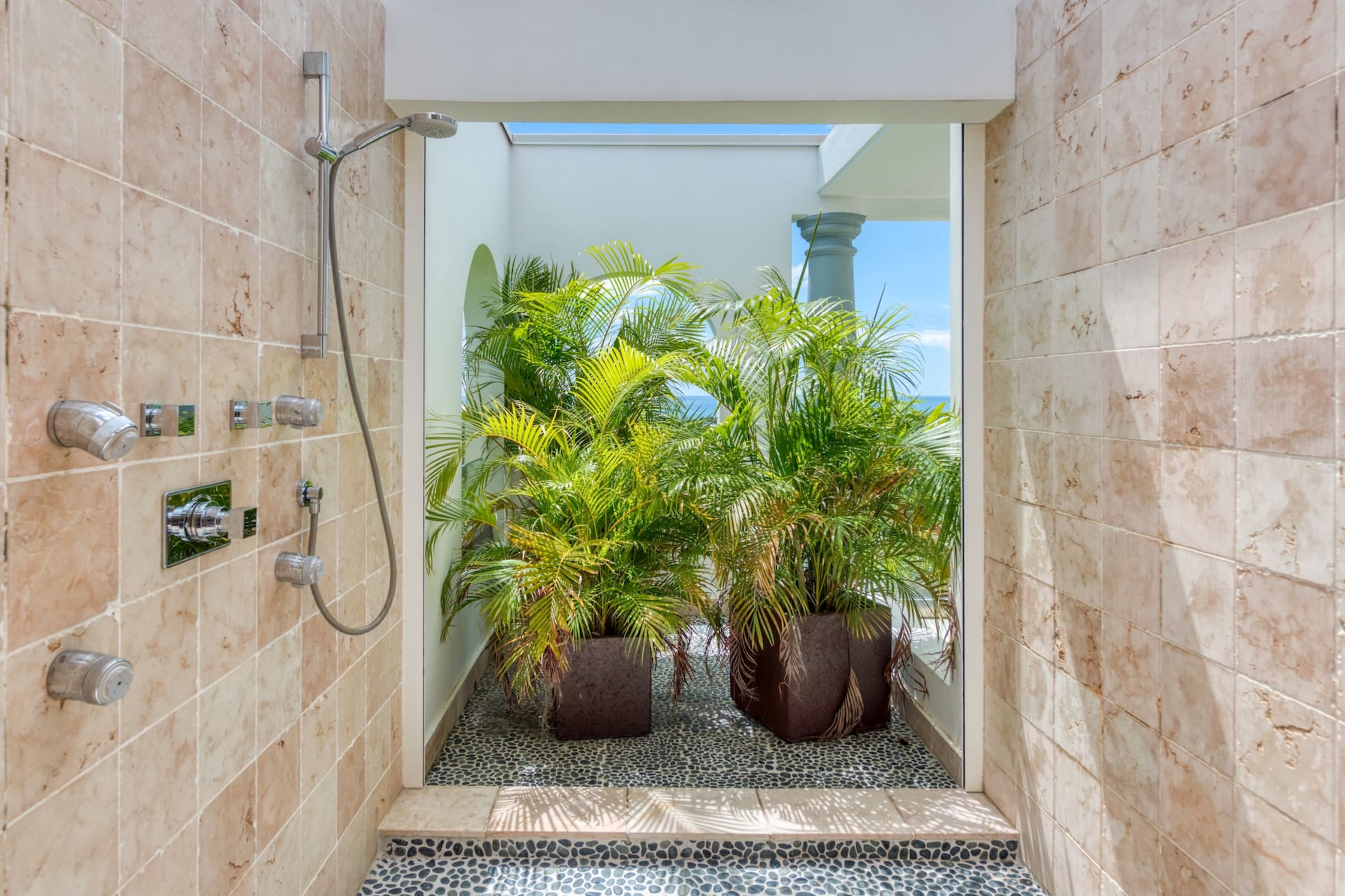 Les trois chambres sont de taille égale, spacieuses et confortables. Chaque chambre dispose de salons privés à l'intérieur et à l'extérieur. Les salles de bains sont superbes en travertin, en pierres de rivière indonésiennes avec des prestations de qualité. Les douches à l'italienne se prolongent dans les douches extérieures avec vue sur la mer.