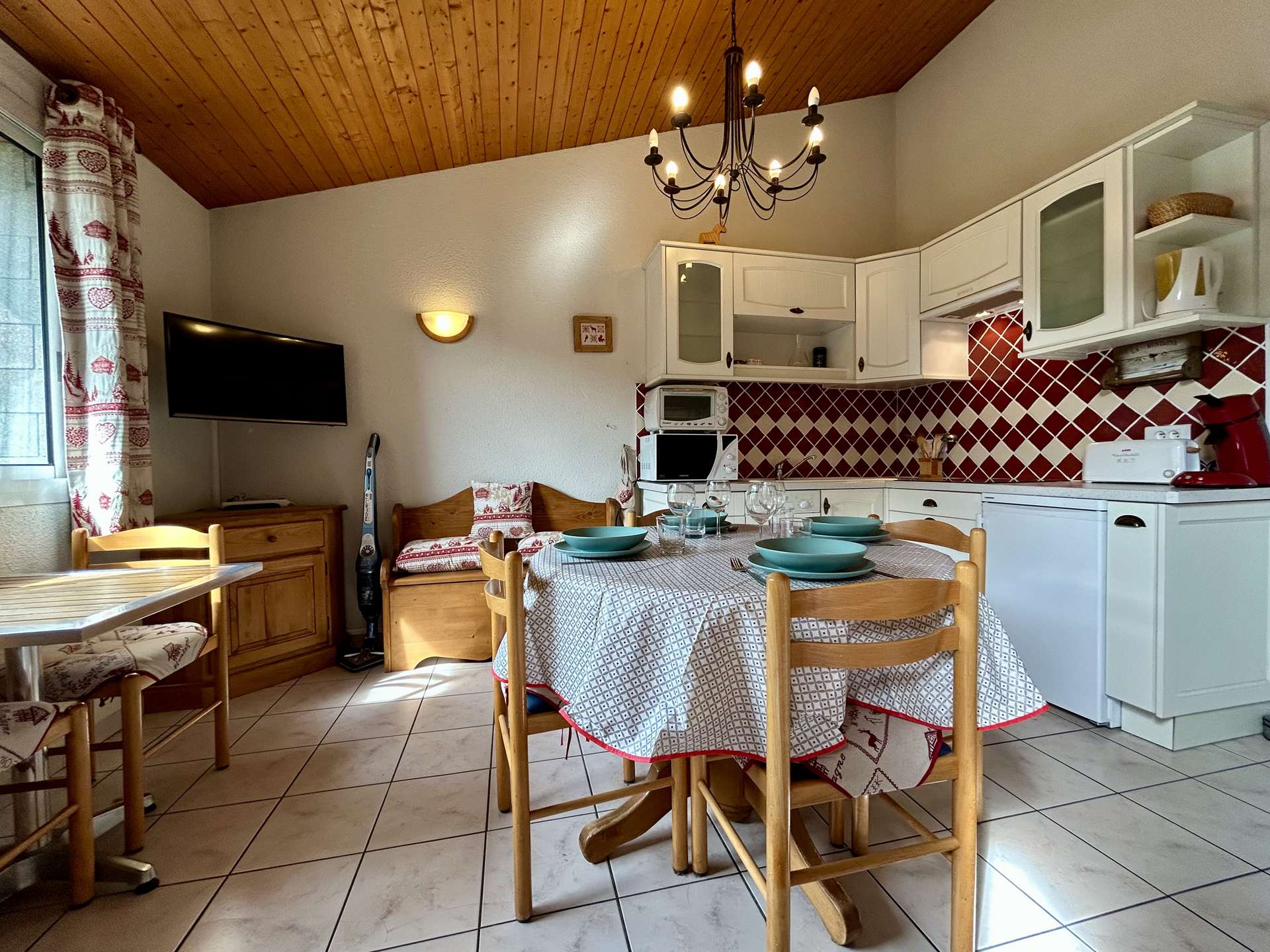 - une pièce principale avec coin cuisine équipé d'un lave-vaisselle, four et micro-ondes, cafetière...,