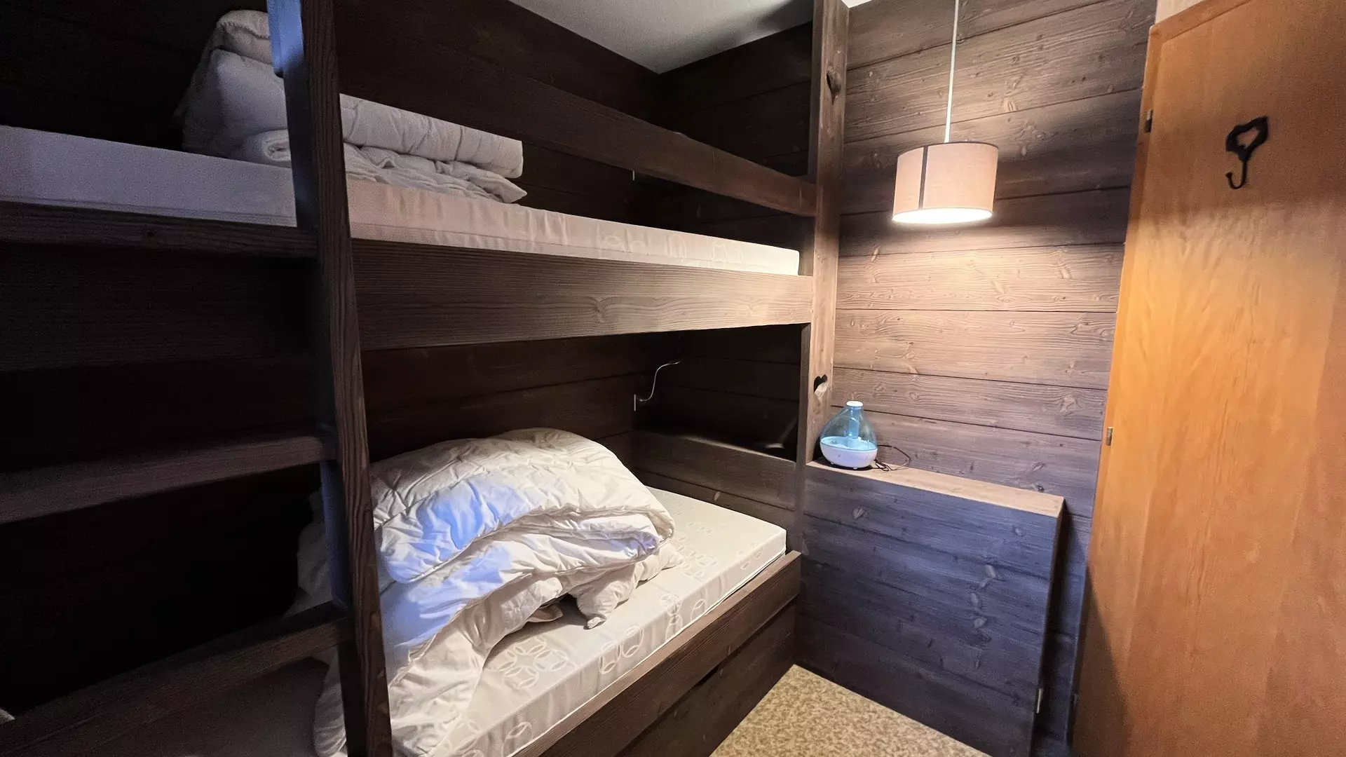 L’appartement est composé de 2 chambres, dont 2 lits jumeaux , et une avec 2 lits superposés, un séjour avec 2 canapé dont 1 convertible, une salle de bains, un WC séparé, une cuisine, et un balcon exposé sud/est de 17m² offrant une vue sur un magnifique paysage.