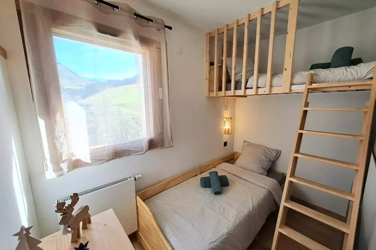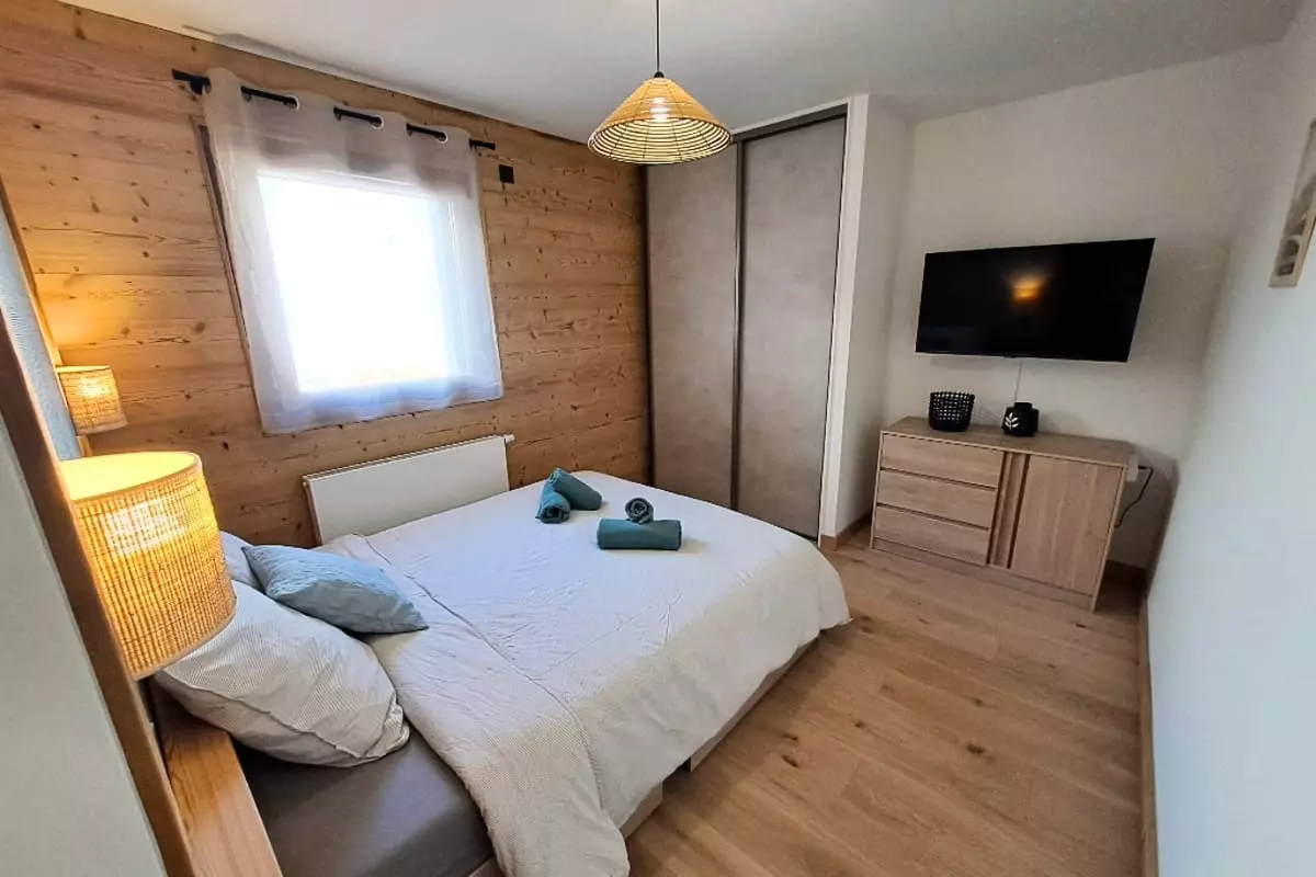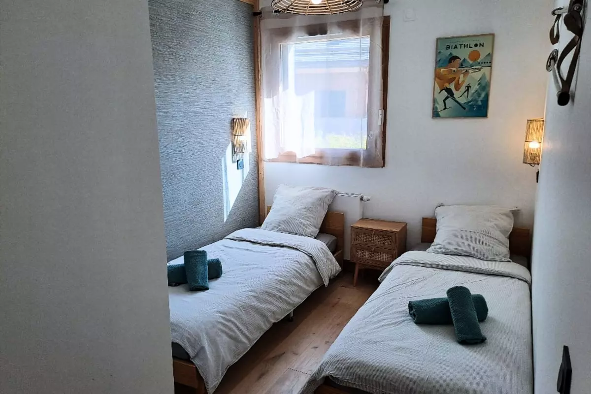 L’appartement peut accueillir jusqu’à huit personnes et dispose de trois chambres : une chambre avec un lit double 160x200, une autre avec deux lits 80x200 pouvant être réunis en un lit double, et une troisième équipée d’un lit 80x200 et d’un lit en hauteur 90x200. Dans le séjour, un canapé convertible propose un couchage 160 x 200. Vous bénéficierez également de deux salles de bain fonctionnelles, d’une buanderie avec WC séparé, et d’une cuisine entièrement équipée ouverte sur un salon lumineux avec espace repas. Tout a été pensé pour votre confort, avec Wifi, télévision, lave-linge, sèche-linge, fer et planche à repasser, sèche-cheveux, lave-vaisselle, four, micro-ondes, cafetière, bouilloire, grille-pain et même un appareil à raclette. Le linge de maison, y compris les draps et les serviettes, est fourni. Nous faisons appel à une conciergerie locale Cam'Alice conciergerie qui vous propose des services complémentaires: ménage en cours de séjour, livraison de courses pour votre arrivée, location de ski, etc...
