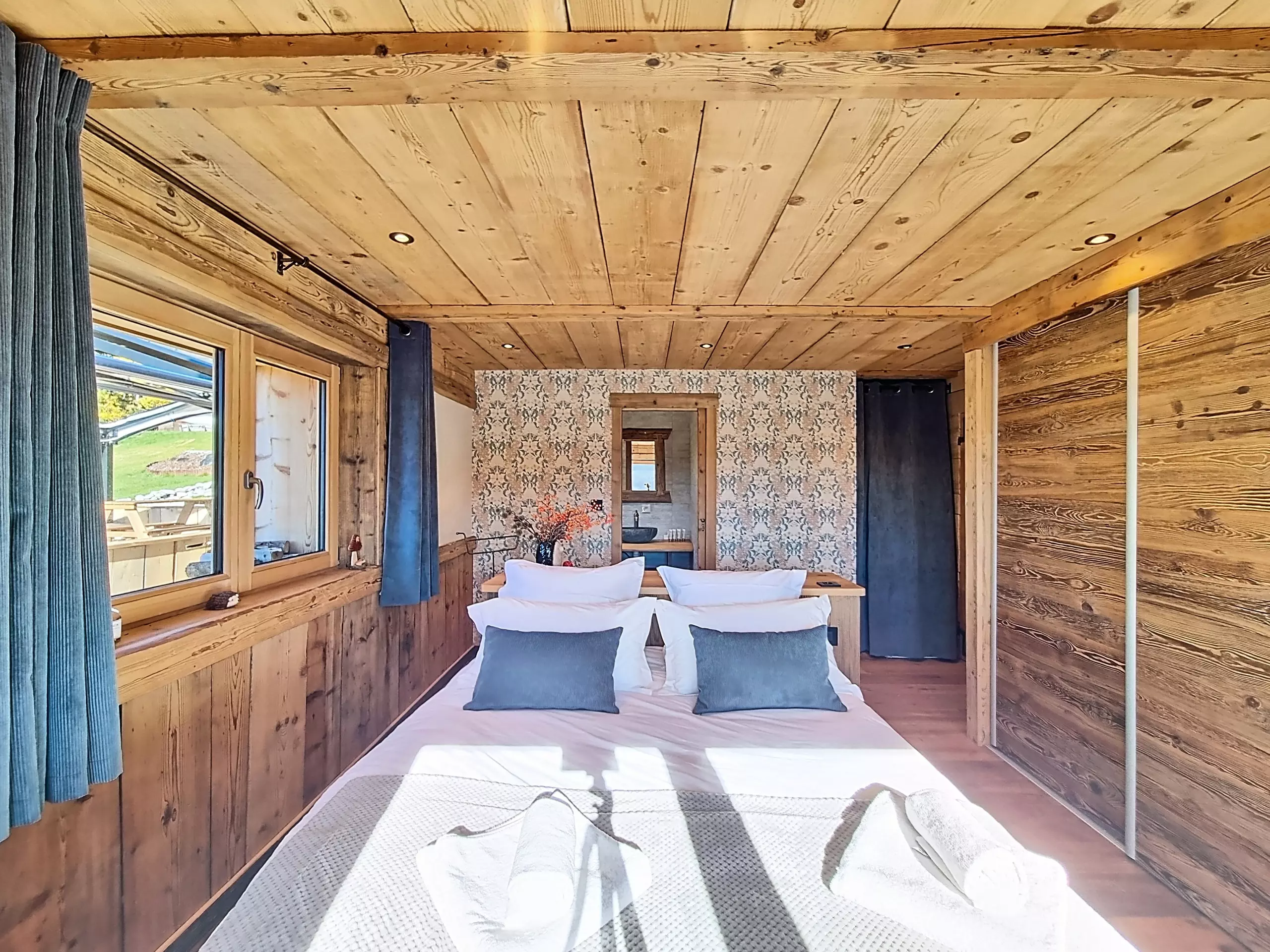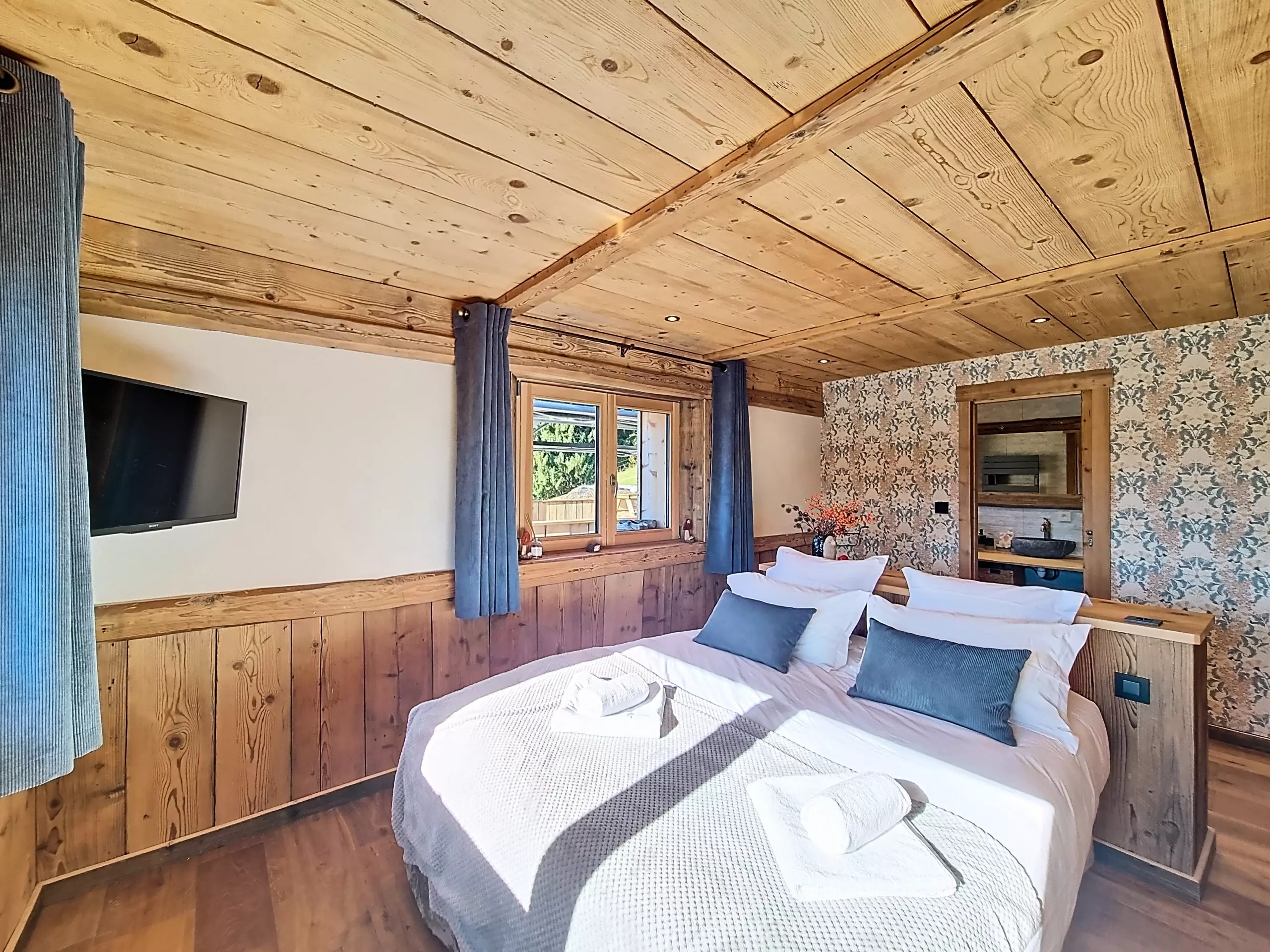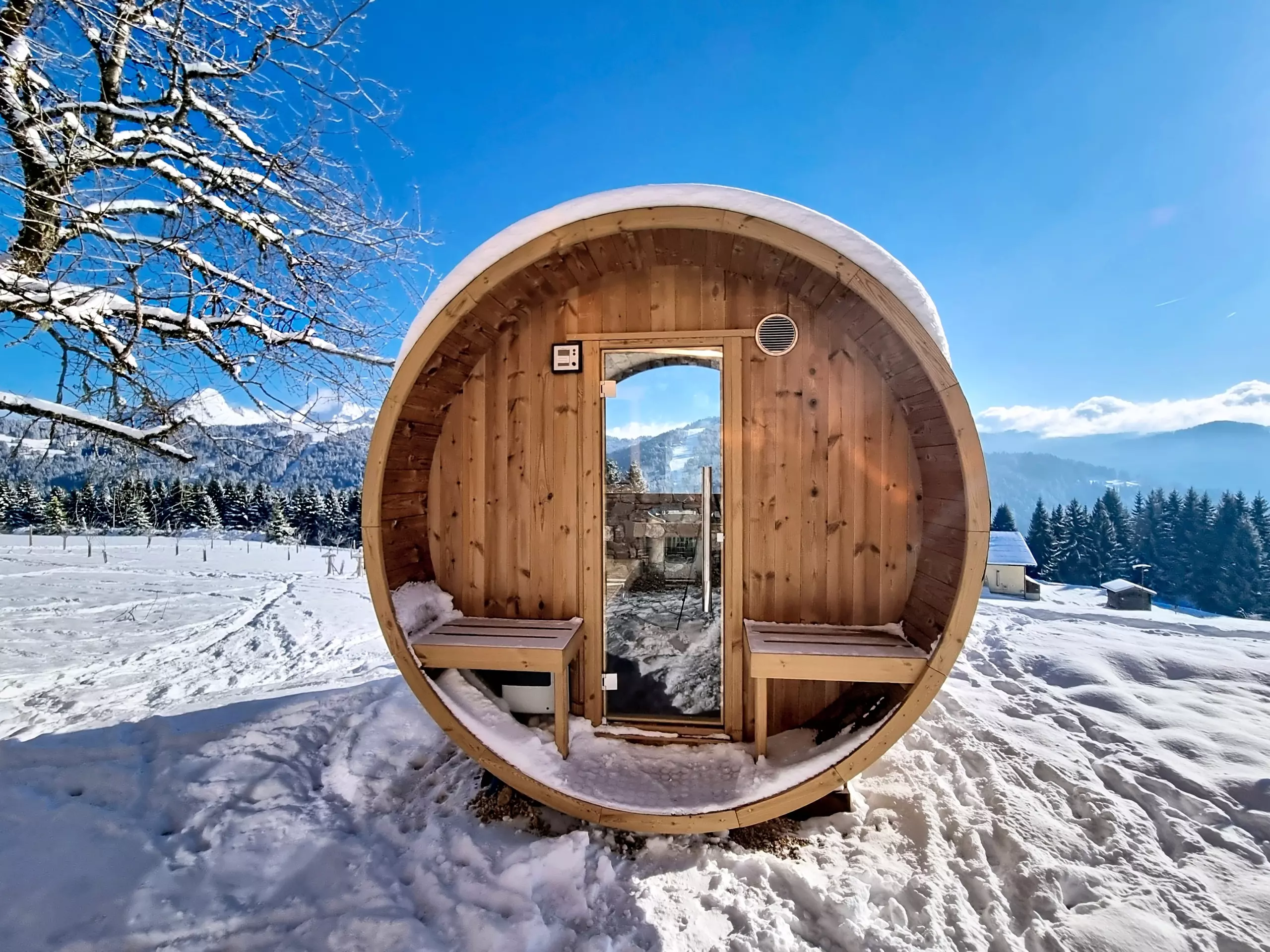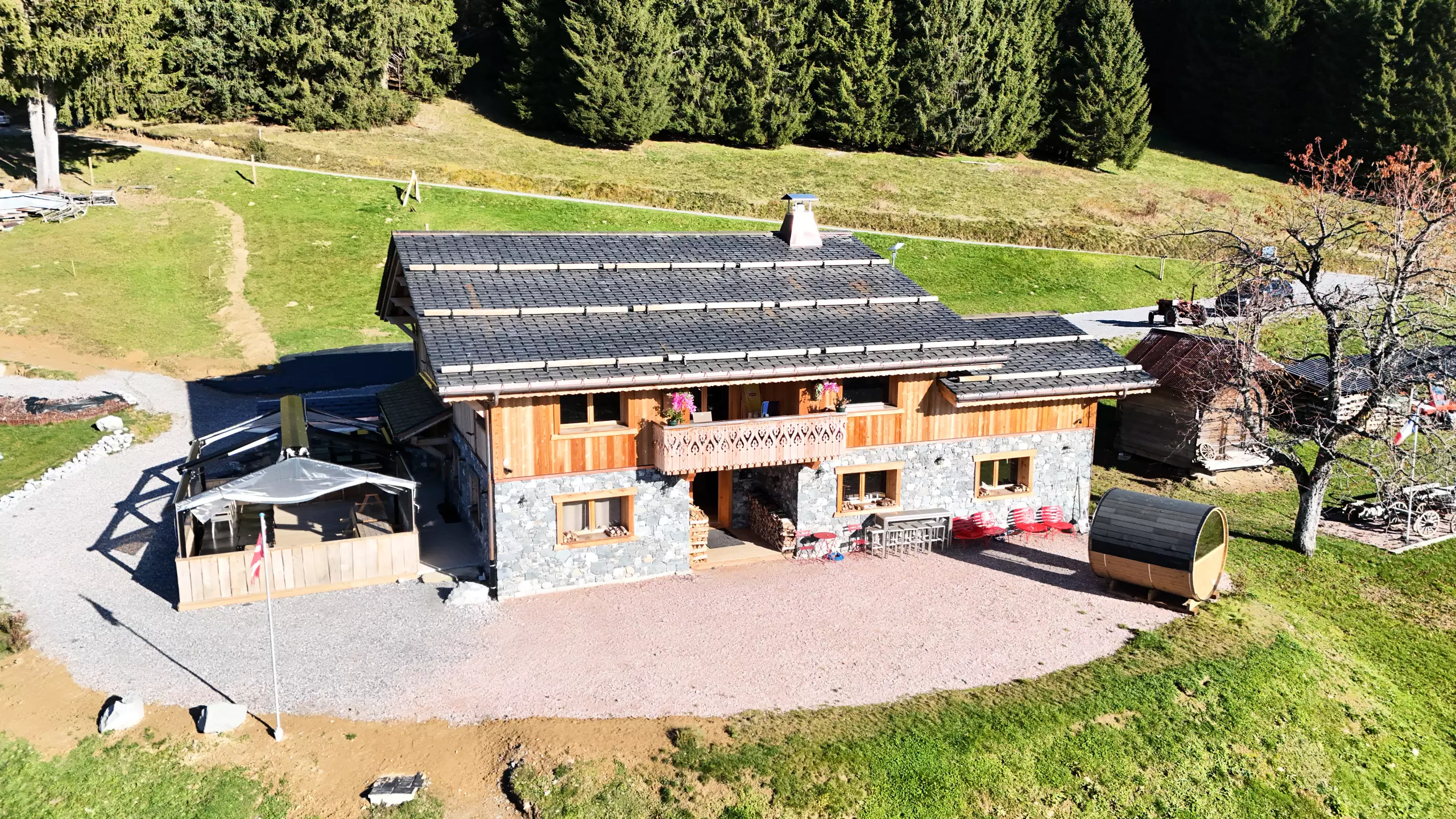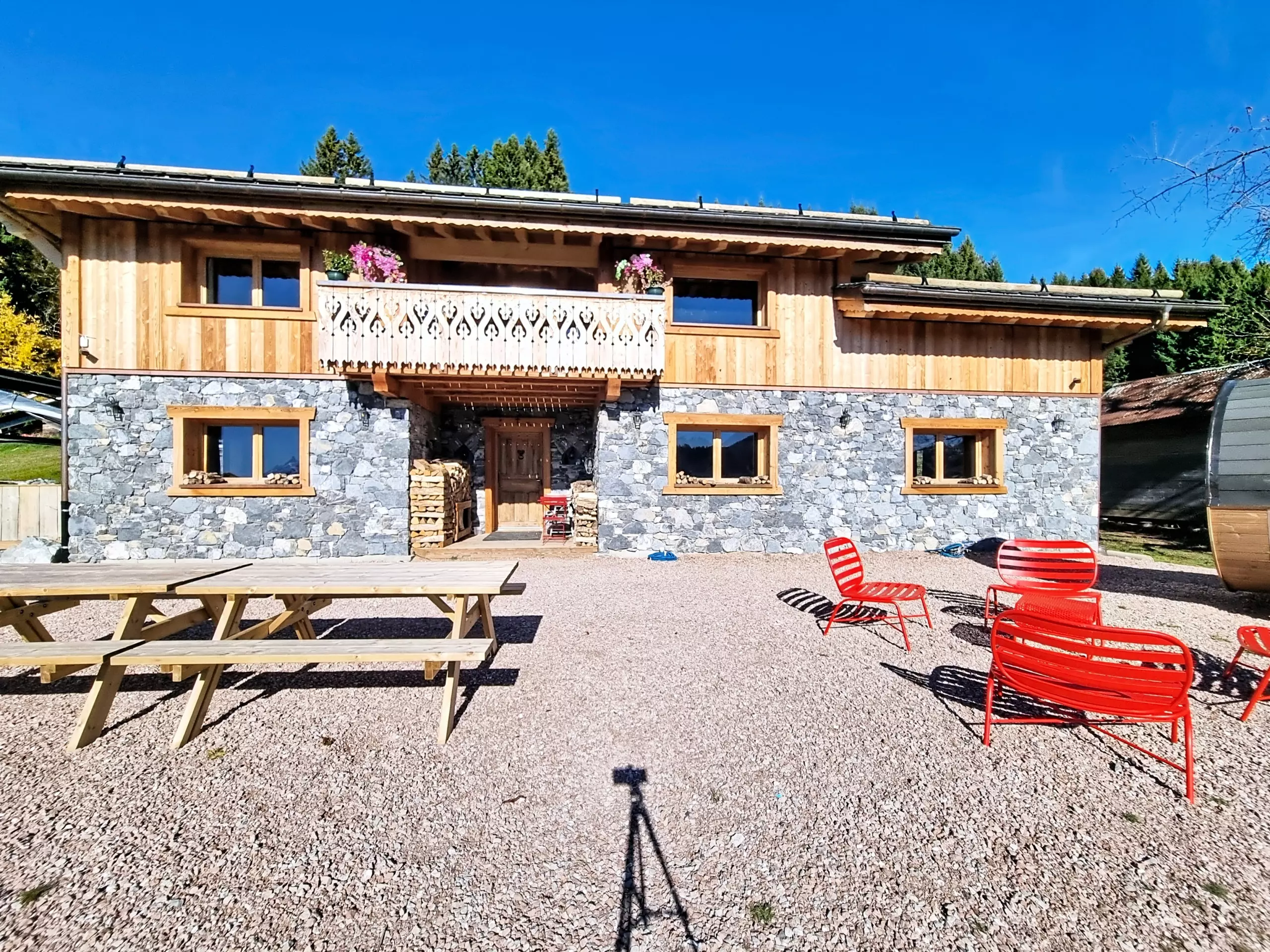 Construit en bois et en pierre, le chalet offre une ambiance cosy et typiquement alpine, parfaite pour se retrouver en famille ou entre amis après une journée sur les pistes. Pour prolonger ces moments de détente, vous pourrez également profiter d’un sauna tonneau extérieur, pouvant accueillir jusqu’à 6 personnes, installé au cœur du jardin pour une expérience bien-être unique face aux montagnes.