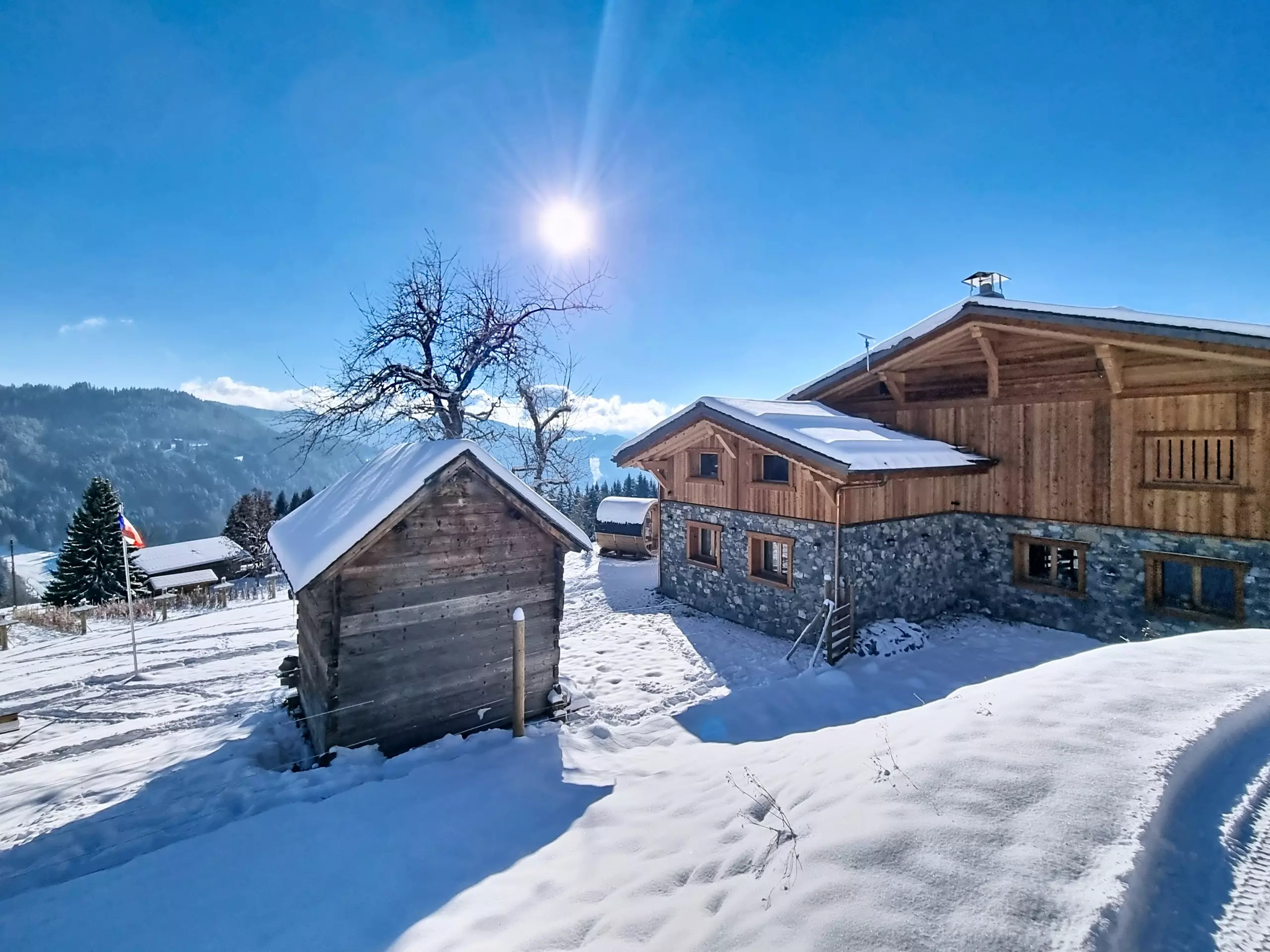 Le chalet est installé sur un vaste terrain privé, offrant un espace rare et paisible pour jouer dans la neige ou simplement admirer le paysage en toute tranquillité. À seulement quelques minutes en voiture du domaine skiable des Gets, il constitue un pied-à-terre idéal pour les amateurs de ski, de raquettes ou de balades hivernales.