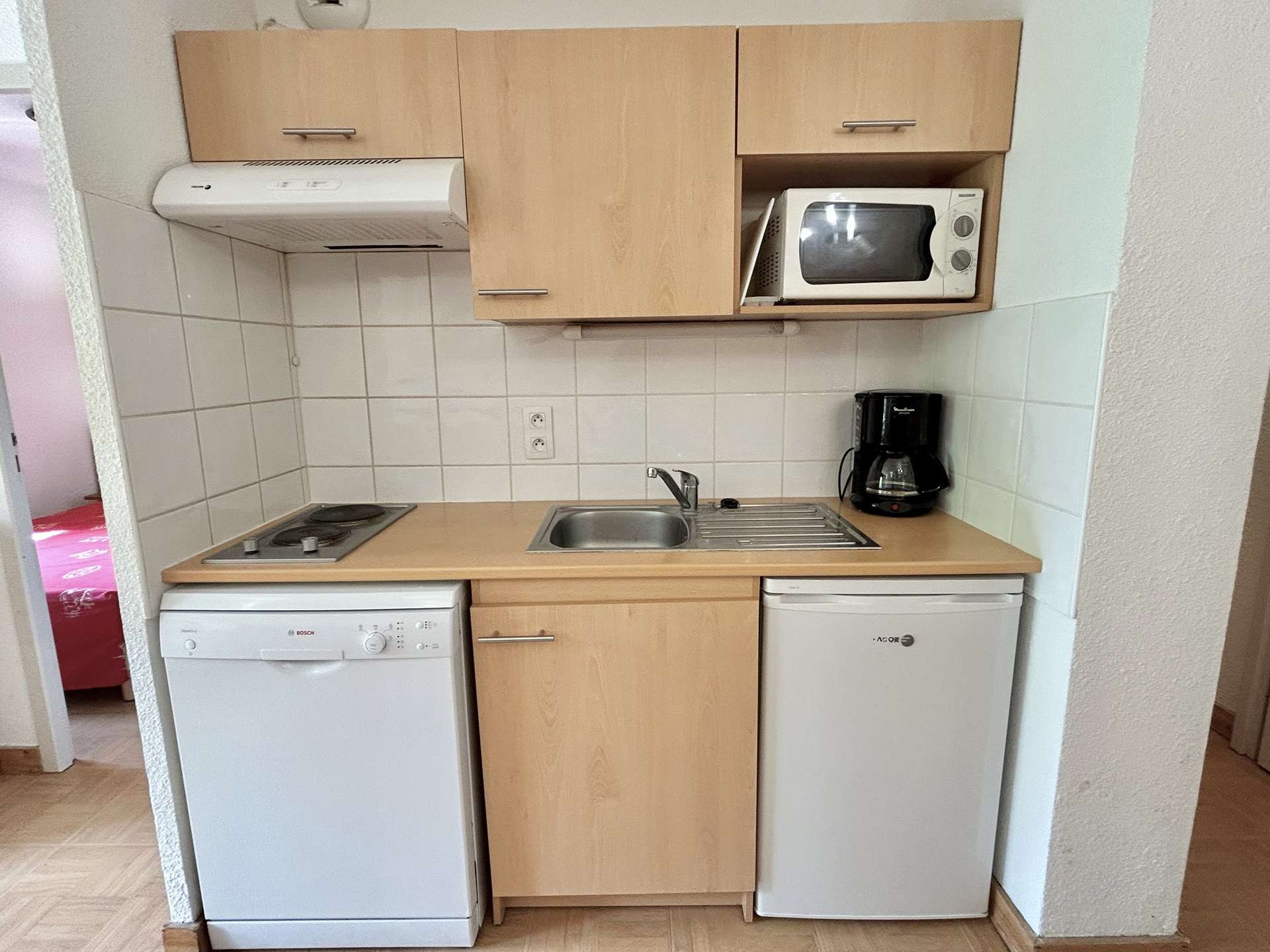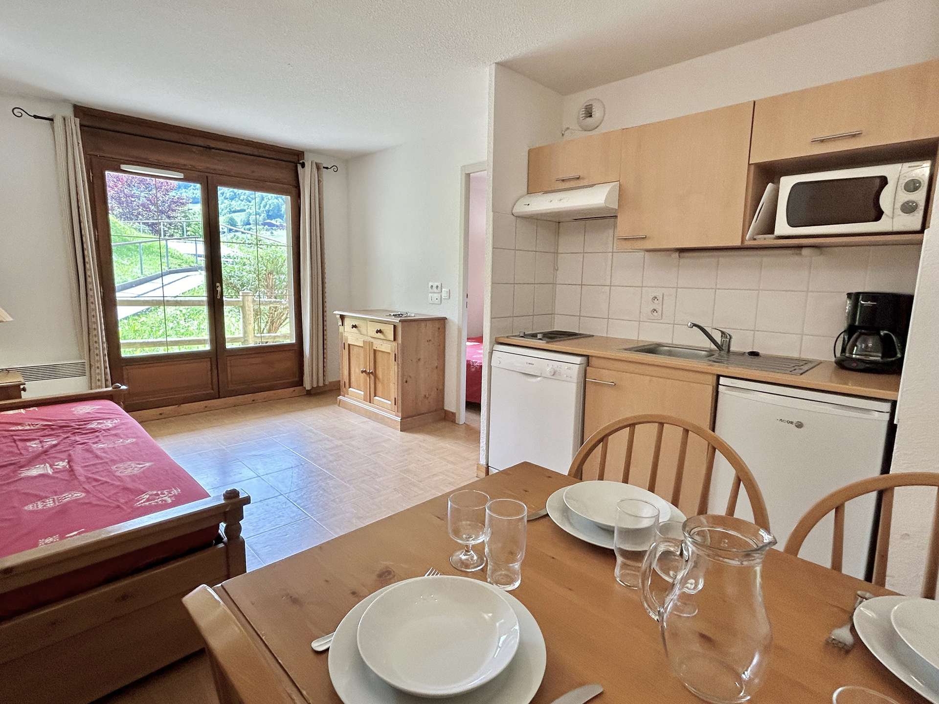 Situé au rez-de-jardin (étage -1) de la résidence, cet appartement à la montagne d’une superficie d’environ 29m² comprend un séjour avec un canapé lits gigognes une place pour 2 personnes, une cuisine équipée ouverte sur la salle à manger et le séjour, une chambre avec lit double (inférieur à 9m²), une salle de bains avec baignoire et un WC indépendant.