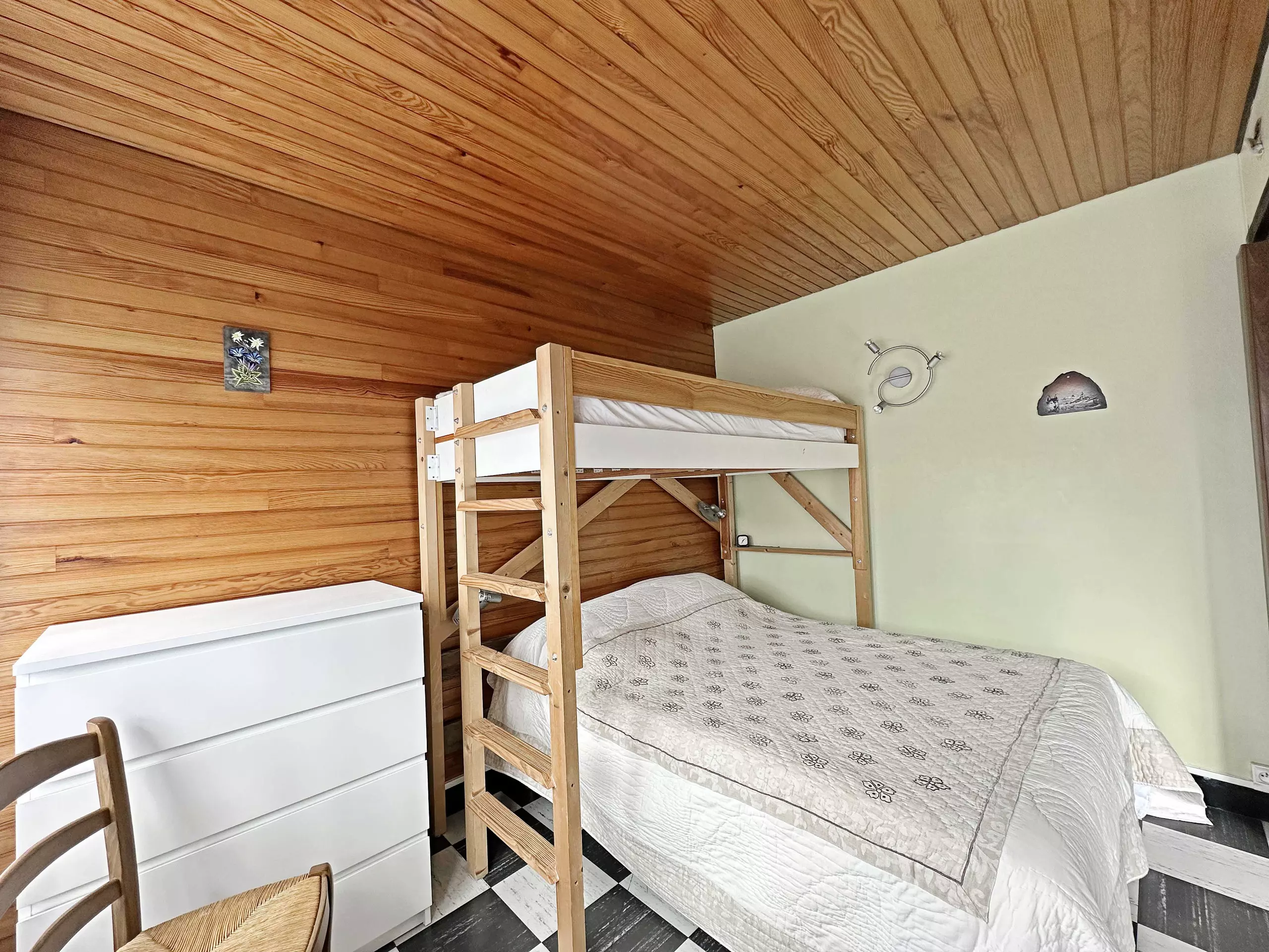 Chambre : Lit double de 140x190 et lit simple en hauteur.