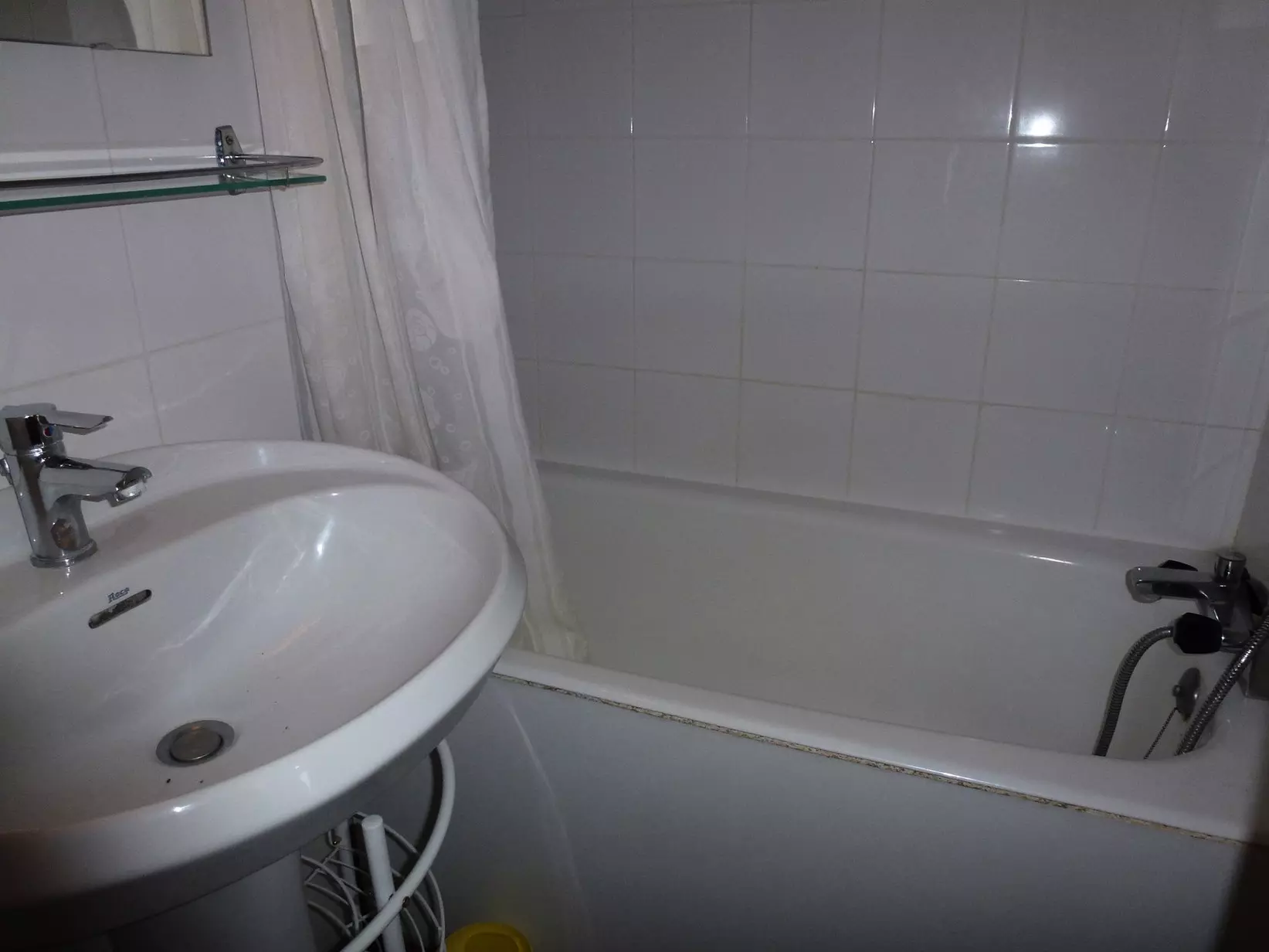 Salle de bains avec baignoire et lavabo. WC séparés.
