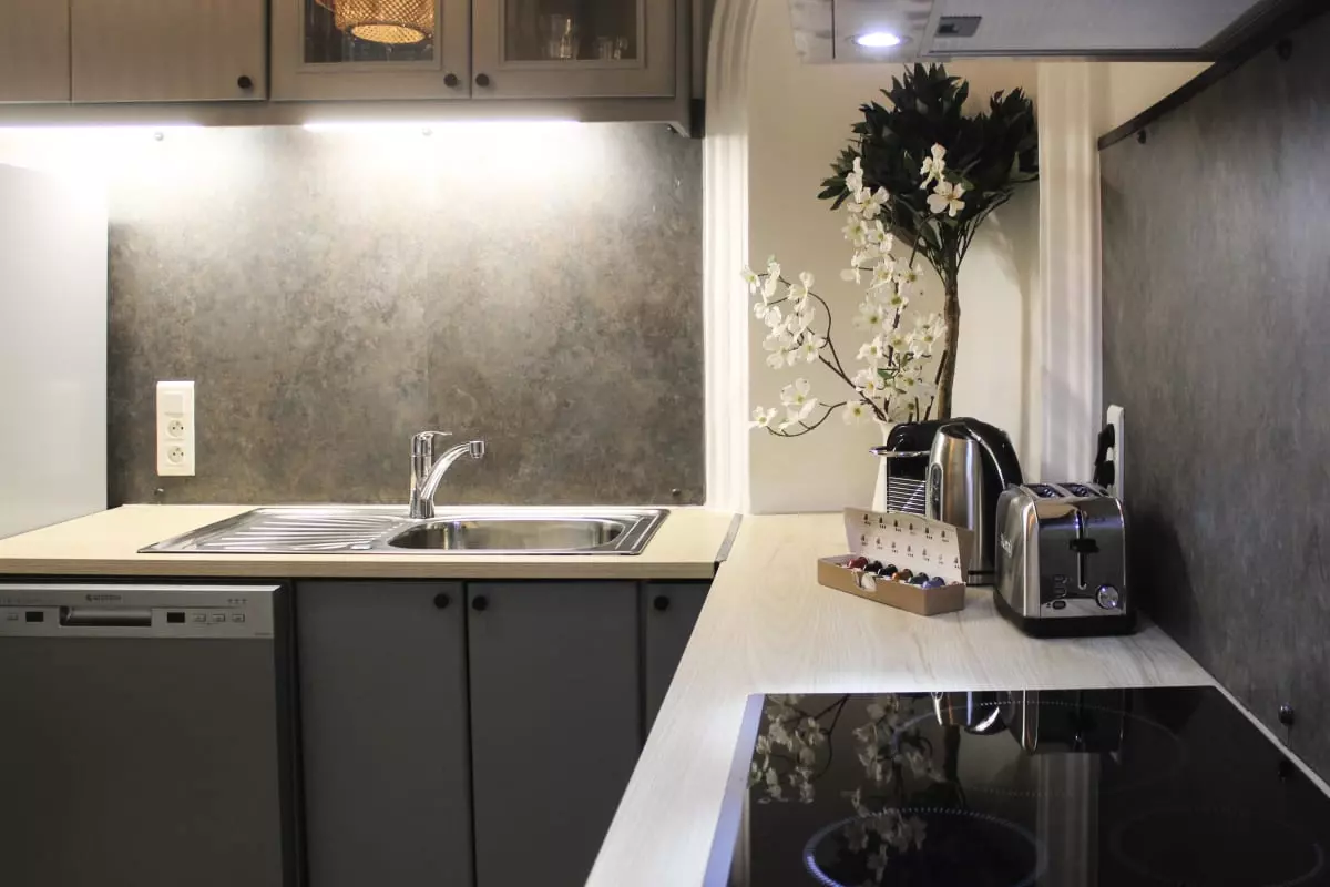 Une cuisine moderne et entièrement équipée (machine Nespresso, four, micro-ondes, réfrigérateur, etc.) pour préparer vos repas en toute simplicité.